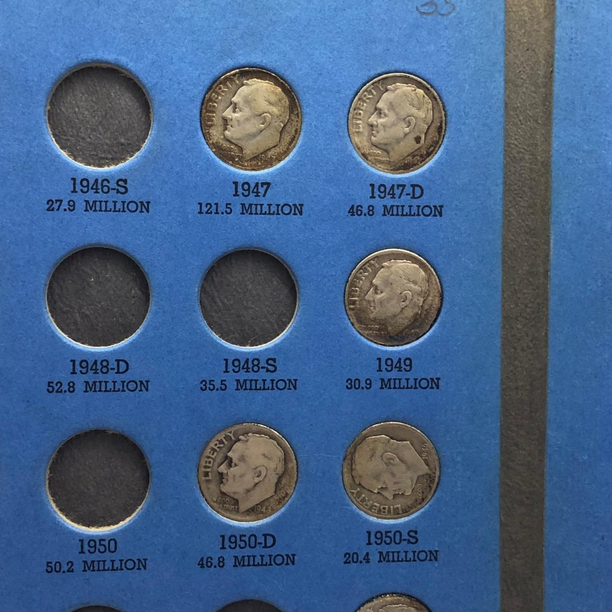 LOT 130: Silver Roosevelt Dimes w/ Whitman Collectors book (1946- )