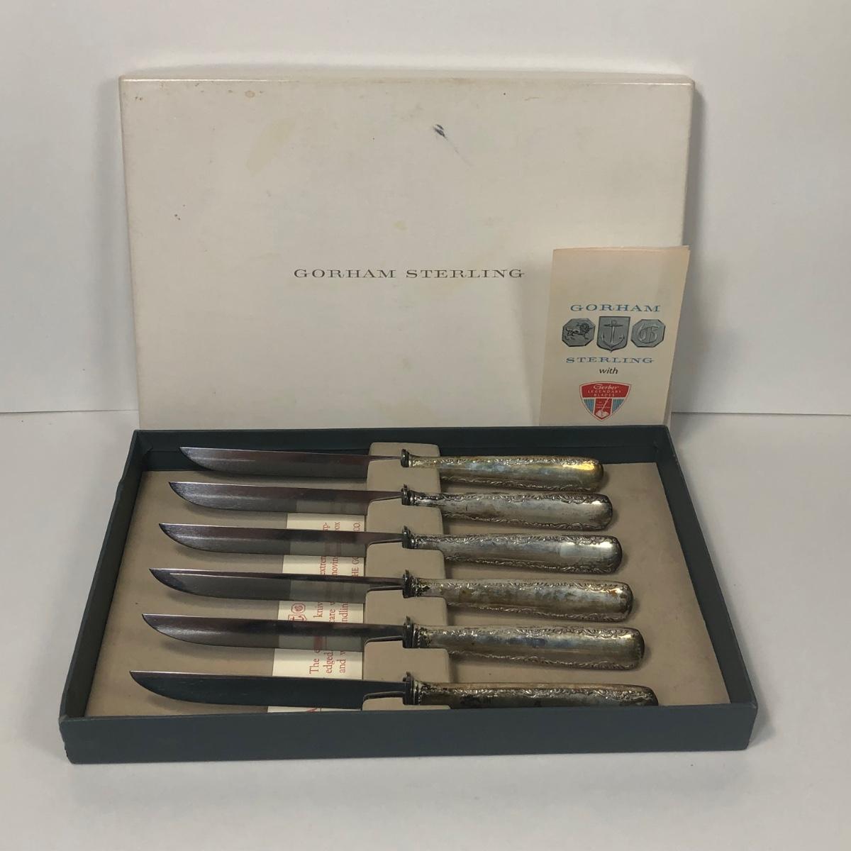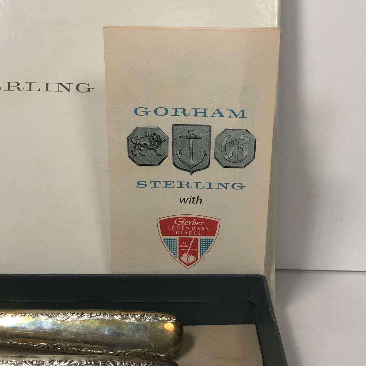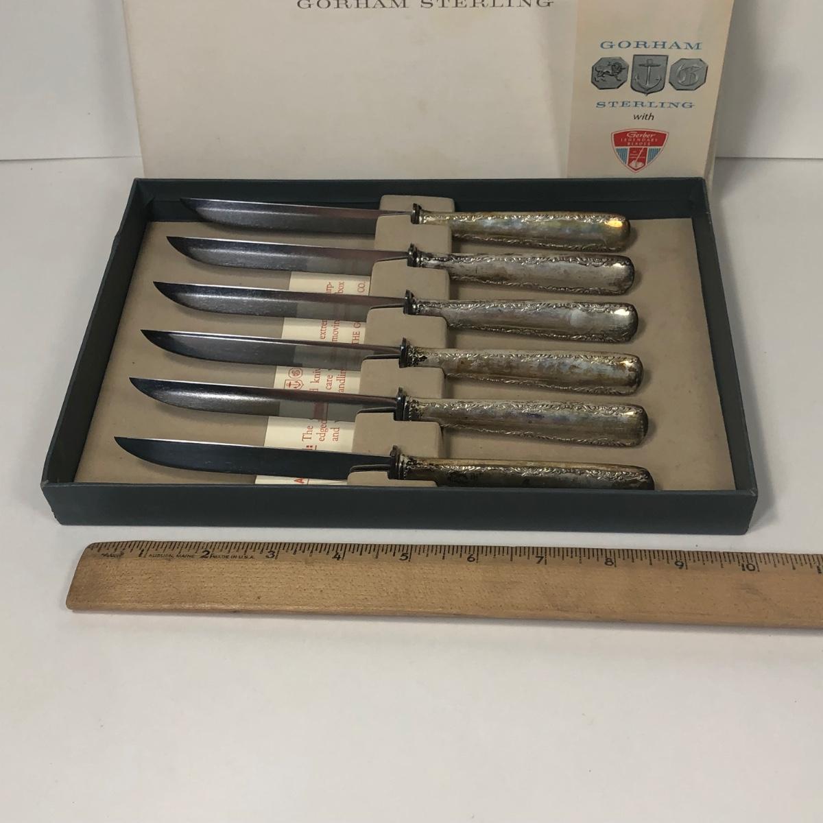 LOT 135: Gorham Sterling Silver Knife Set w/ Gerber Blades in Original Box (6 Knives)