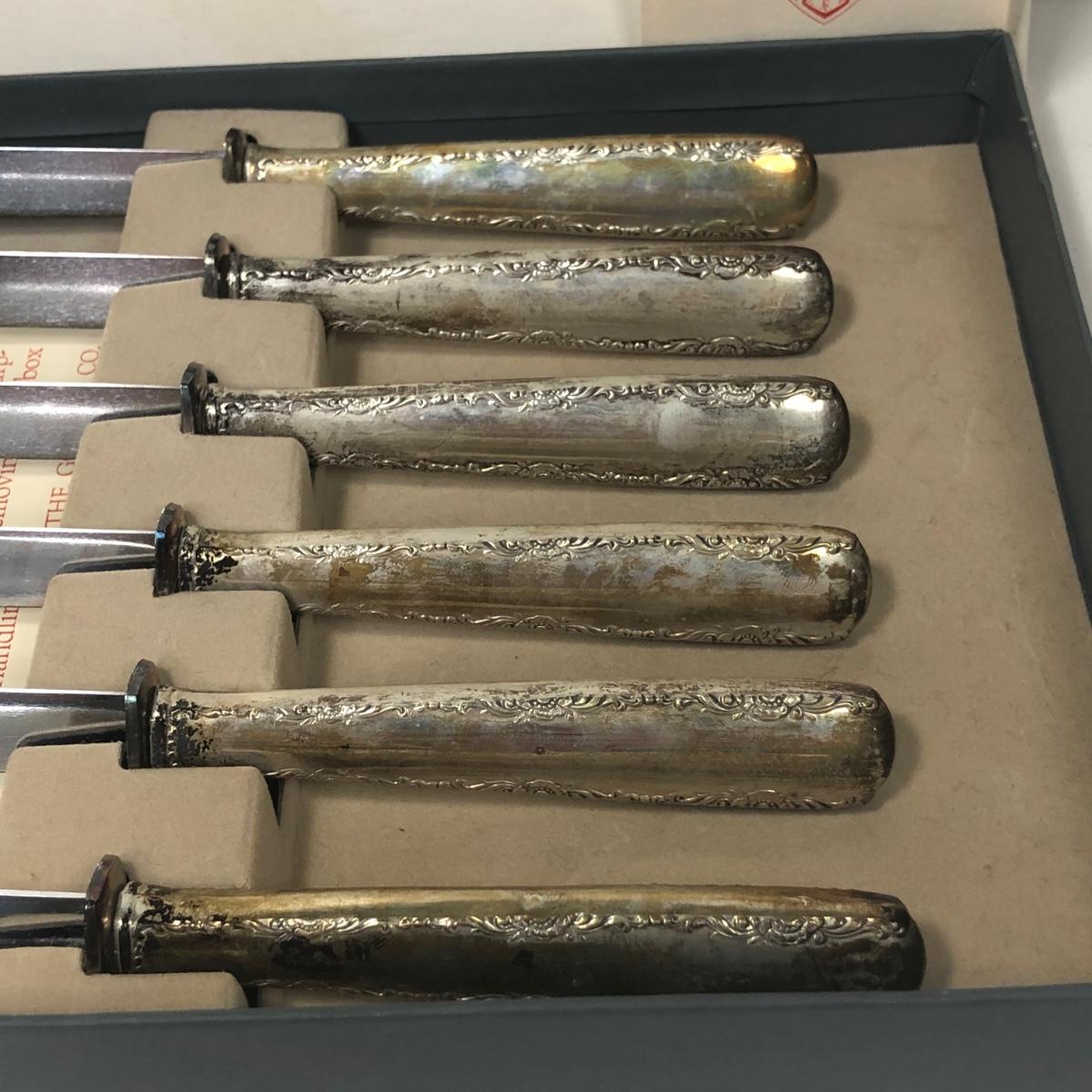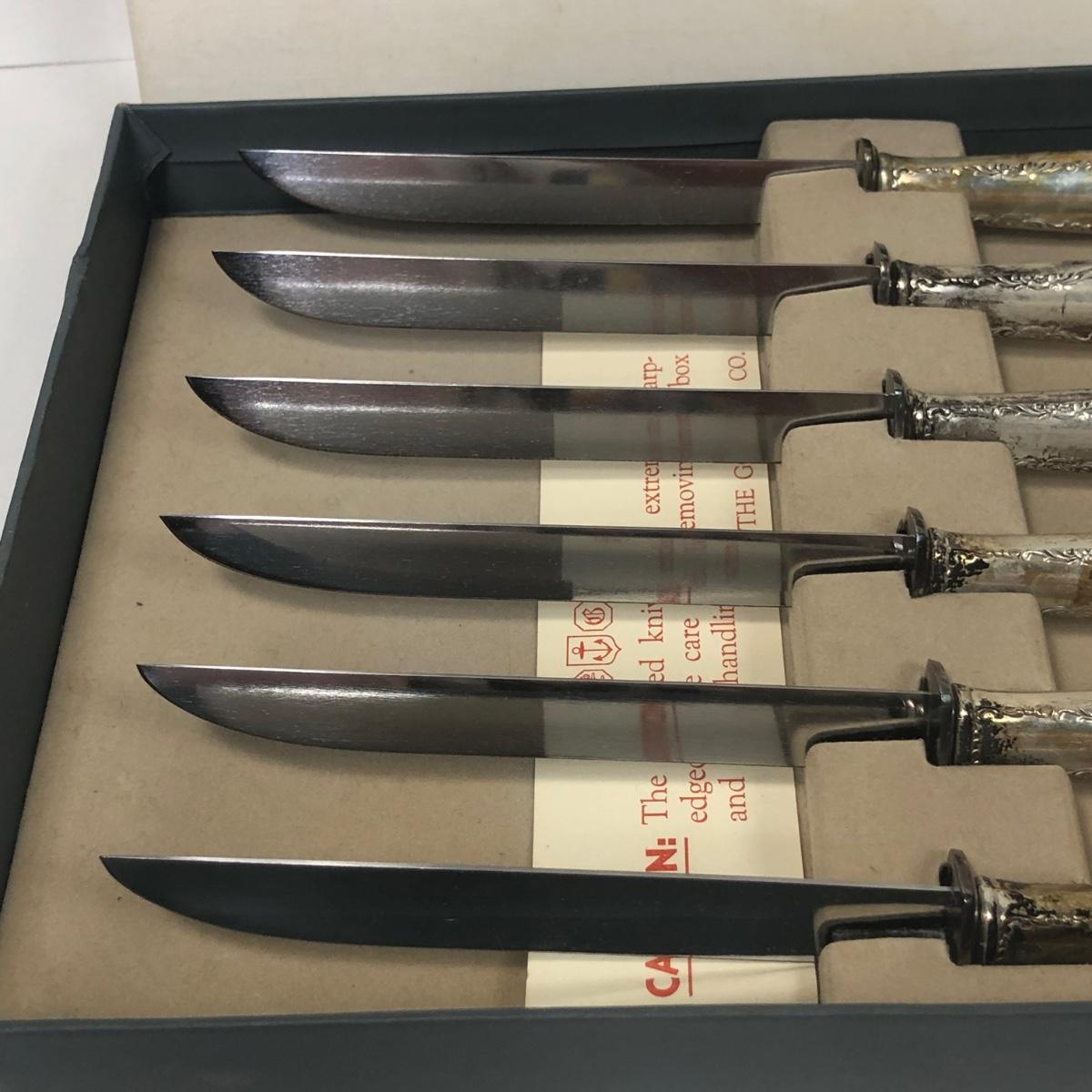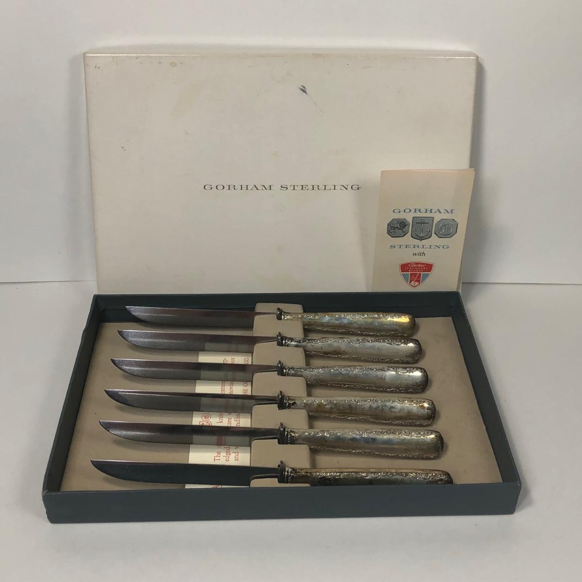 LOT 135: Gorham Sterling Silver Knife Set w/ Gerber Blades in Original Box (6 Knives)