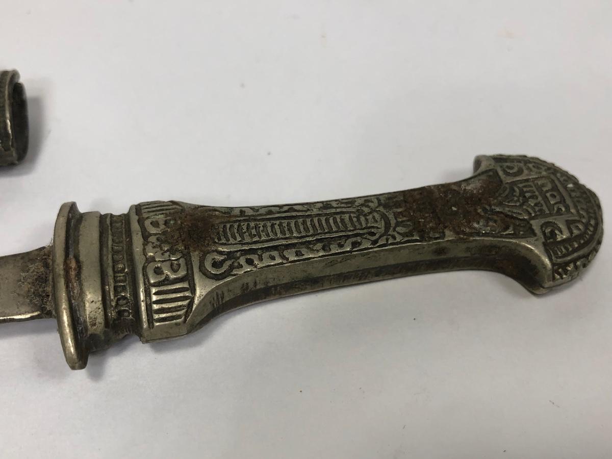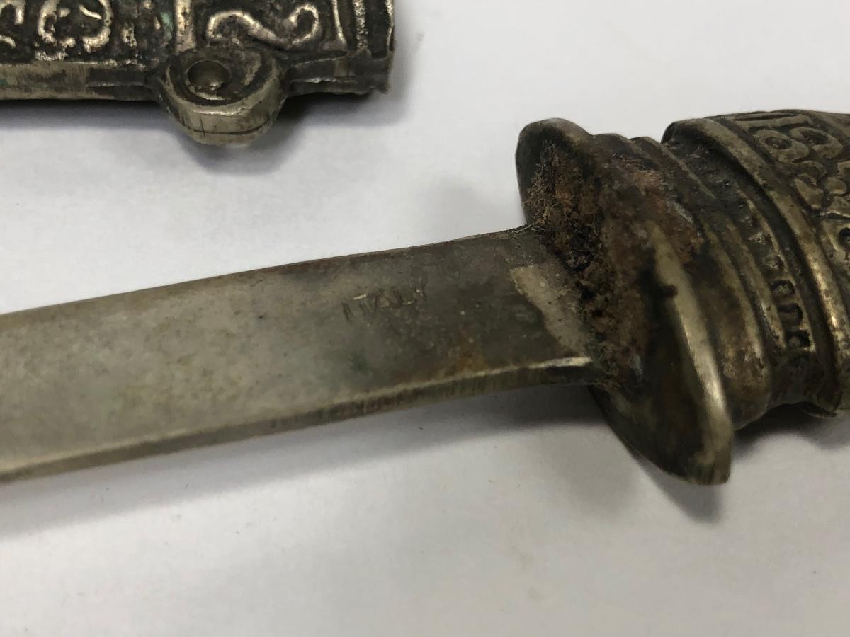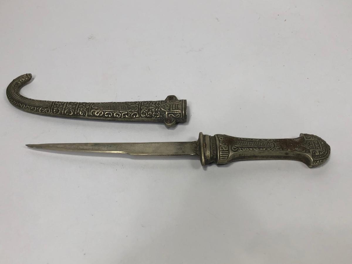 LOT 137: Korium Japan Curved Dagger, Knife w/ Curved Sheath marked ITALY, Knife w/ Wooden Handle/Sheath, Faux Knife marked Remis 45 & More