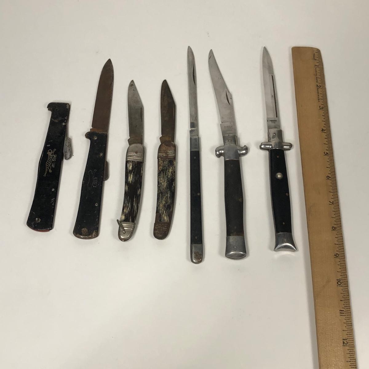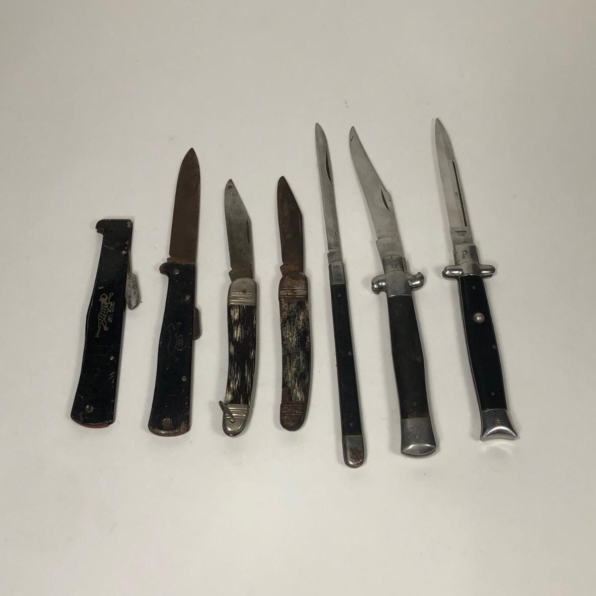 LOT 138: Vintage Mercator K55K Black Cat Lockback Knife, Valor 515-M Japan Stilleto Style Knife & More