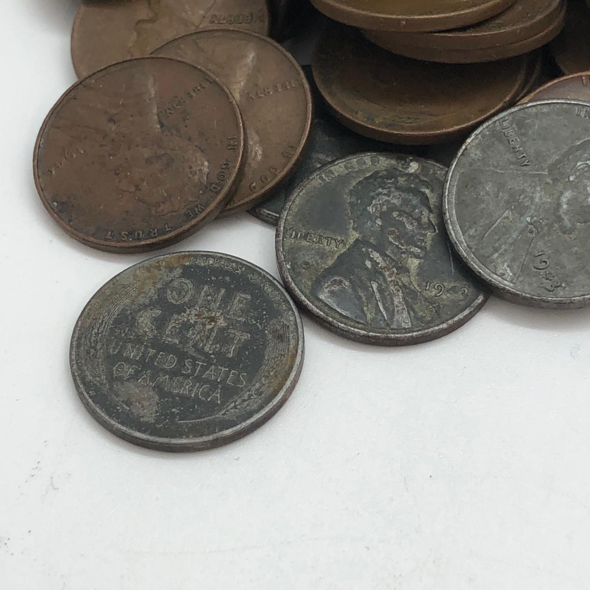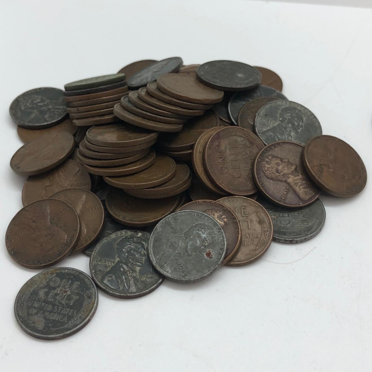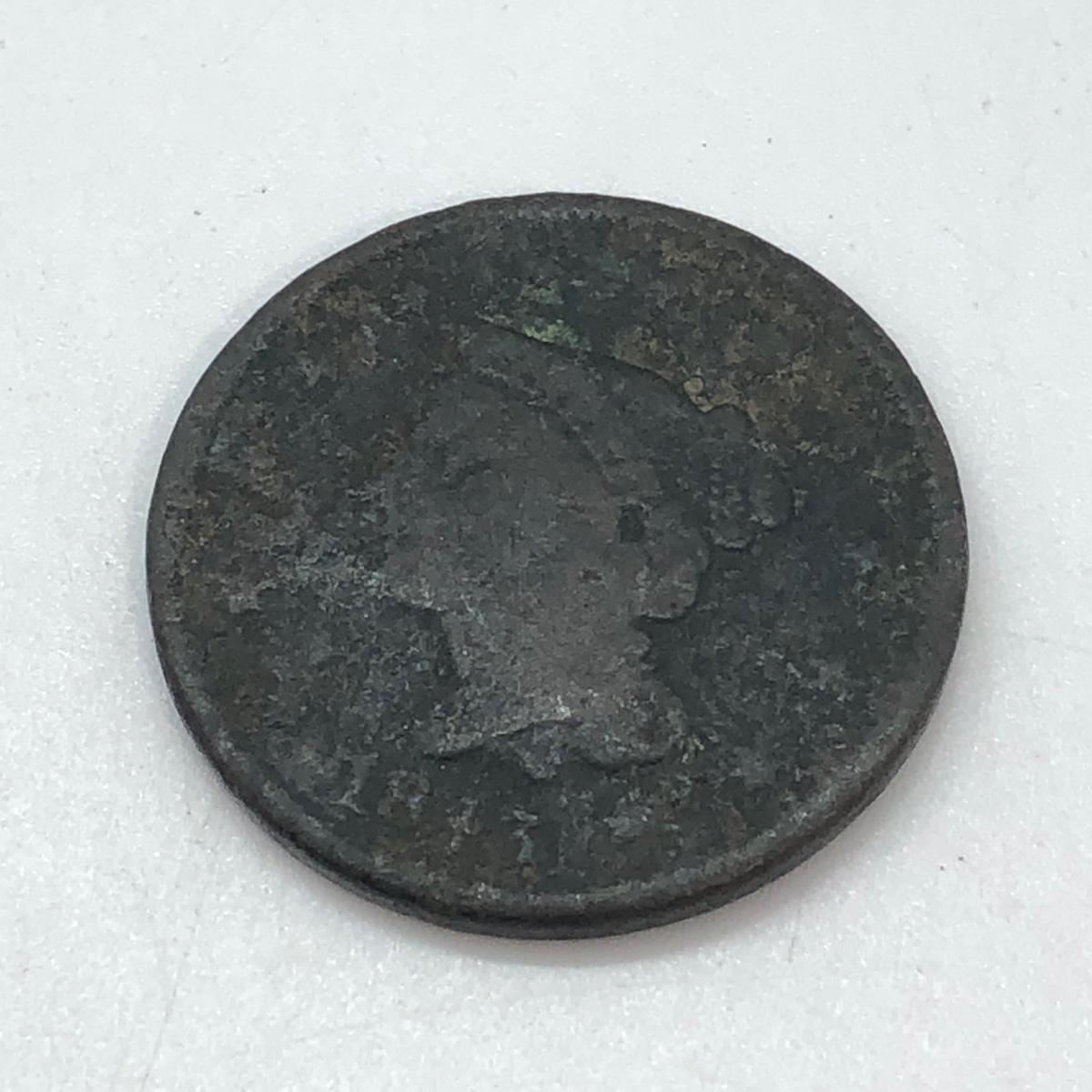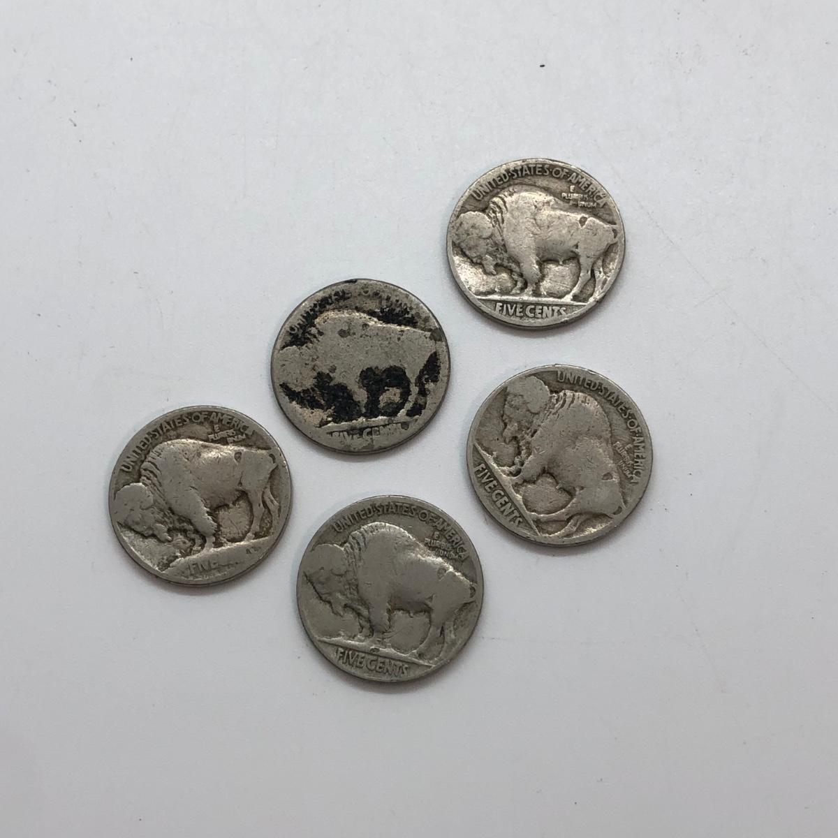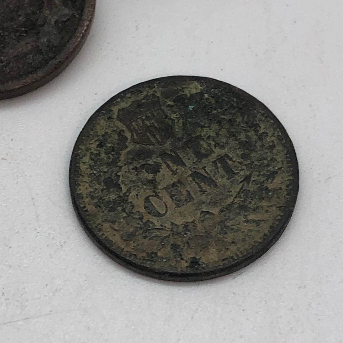 LOT 142: Antique/Vintage US Coins - 1843 Larger Cent Coins (2), 1899 Barber Dime, 3-Cent Nickel (unreadable), 1902 Liberty, Indian Head Wheat  Pennies, Buffalo Nickels