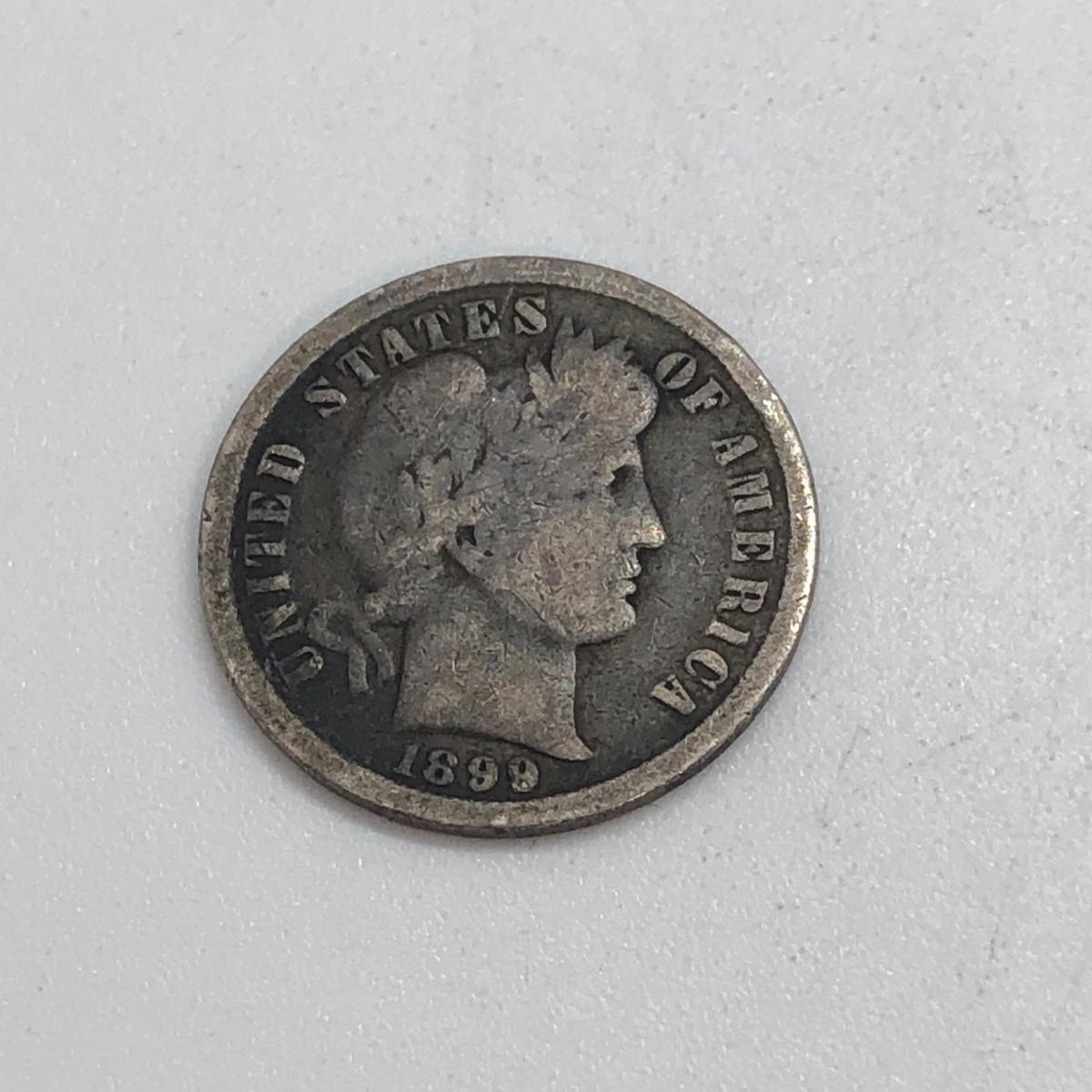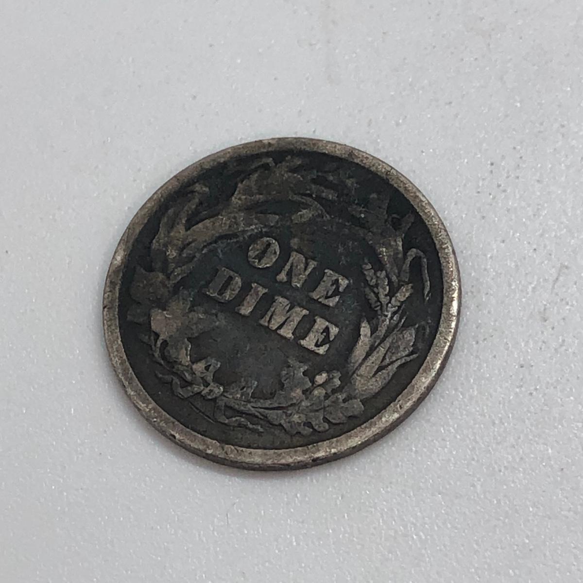 LOT 142: Antique/Vintage US Coins - 1843 Larger Cent Coins (2), 1899 Barber Dime, 3-Cent Nickel (unreadable), 1902 Liberty, Indian Head Wheat Pennies, Buffalo Nickels