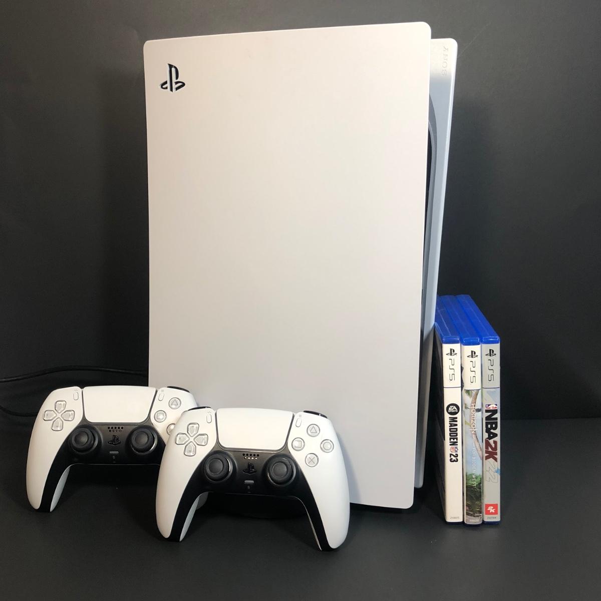 LOT 1: PlayStation 5 w/ 2 Controllers & 3 Games