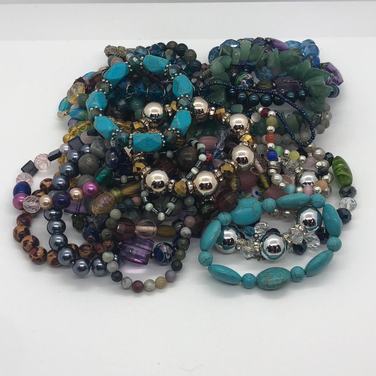 LOT 18: Huge Stretch Bracelet Collection - Rose Quartz, Jade, Pearl & Much More