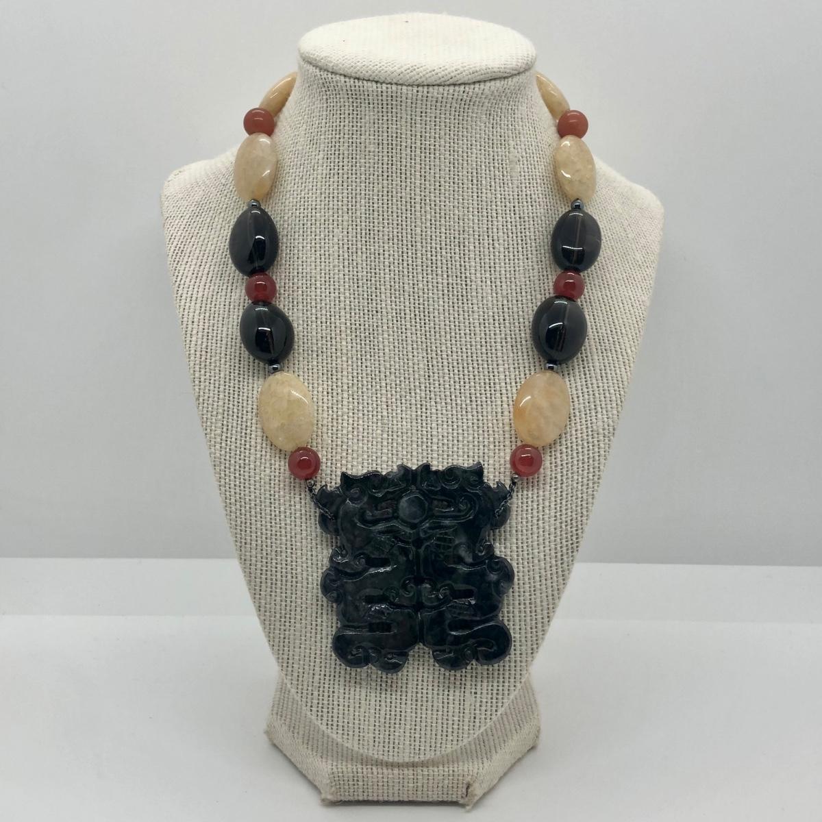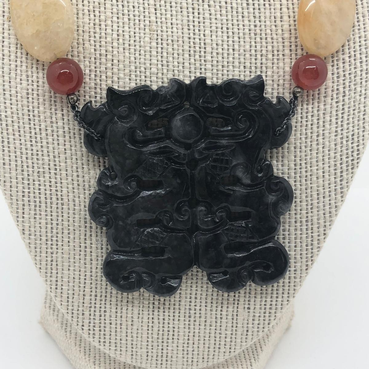 LOT 21: Black Jade Necklace w/ 925 Clasp
