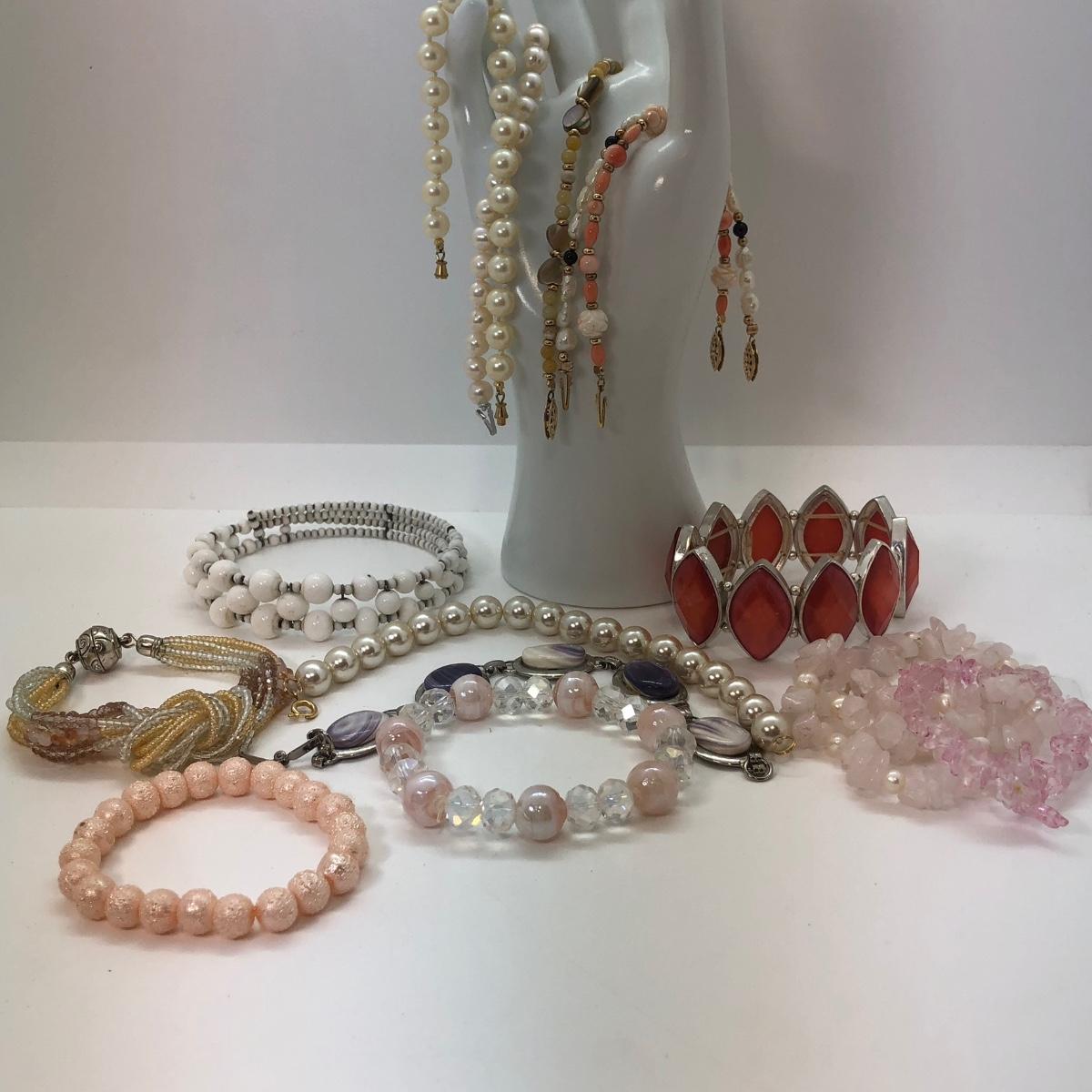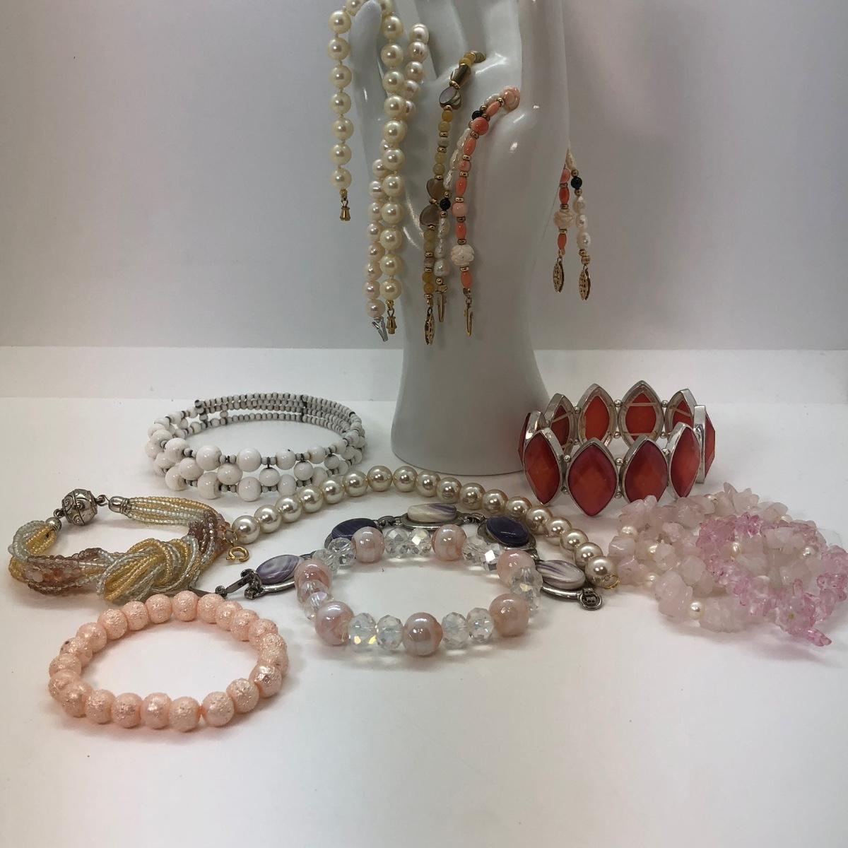 LOT 24: Beaded Bracelet Collection - Coral, Quartz, Pearl & More