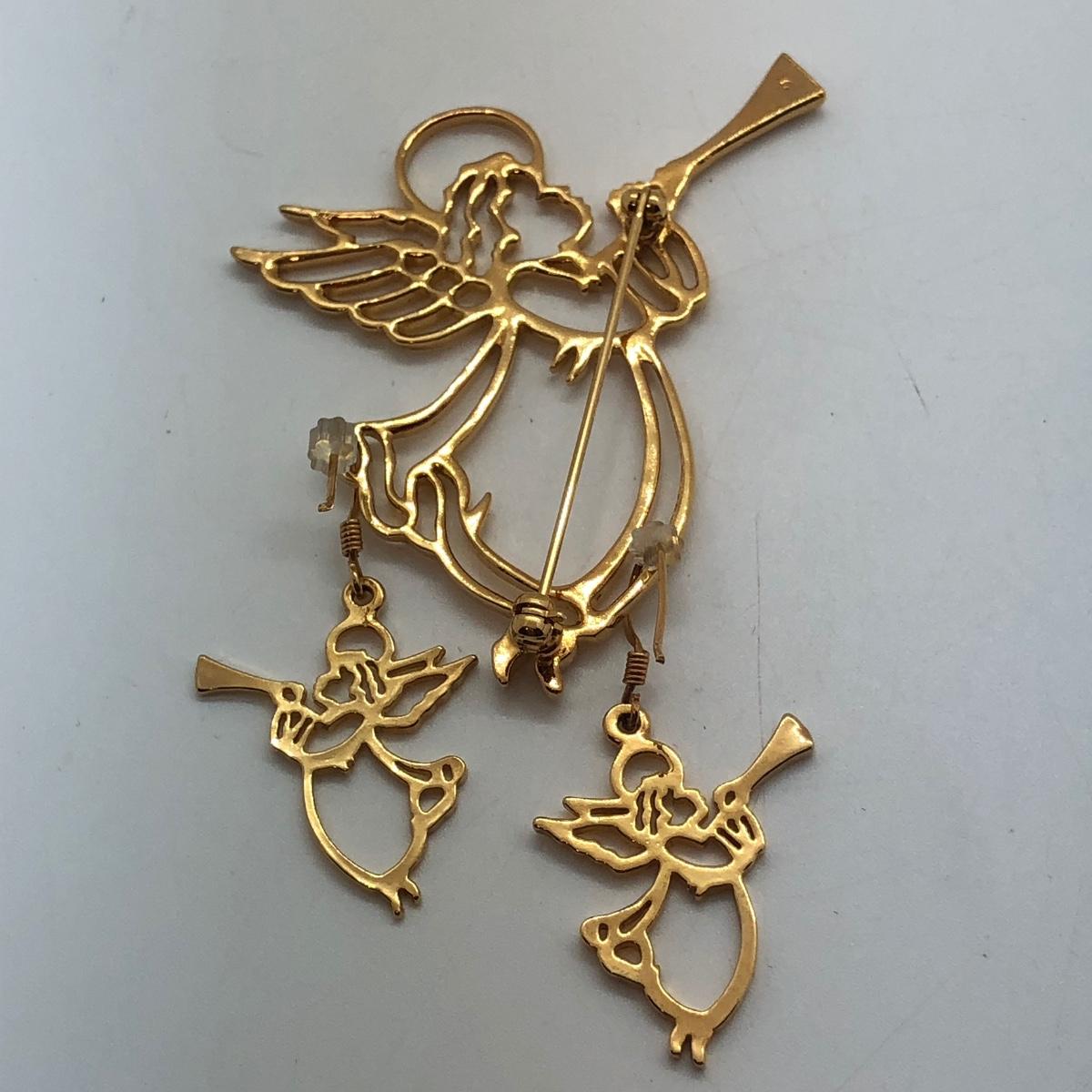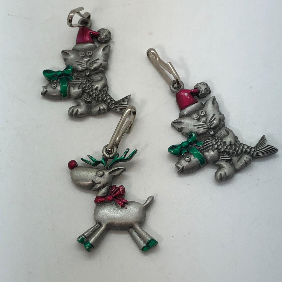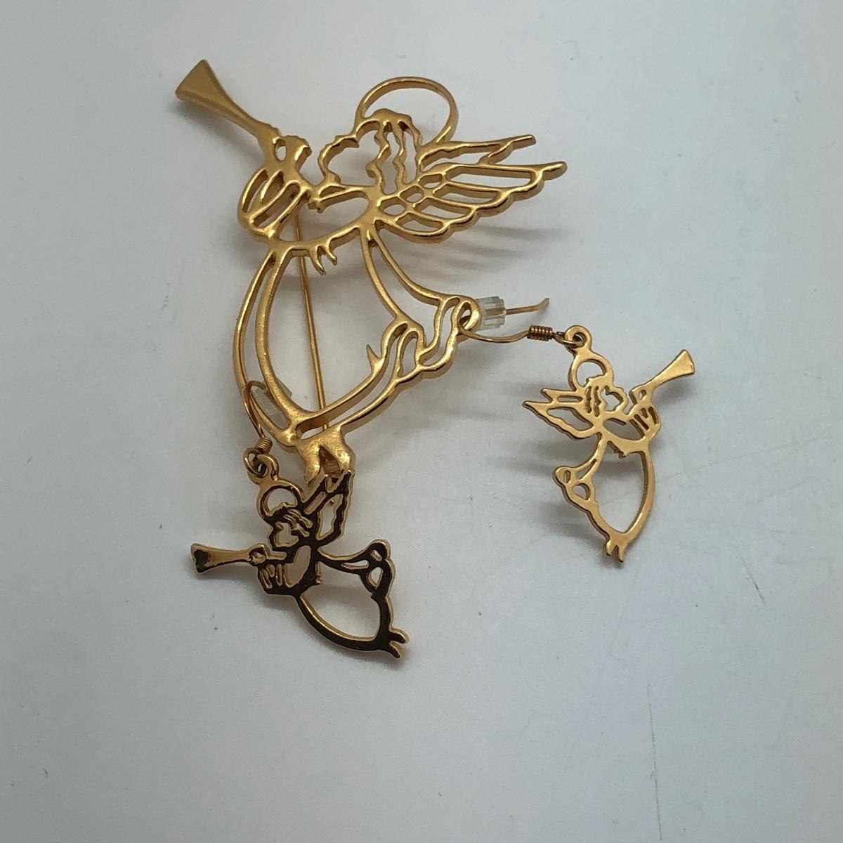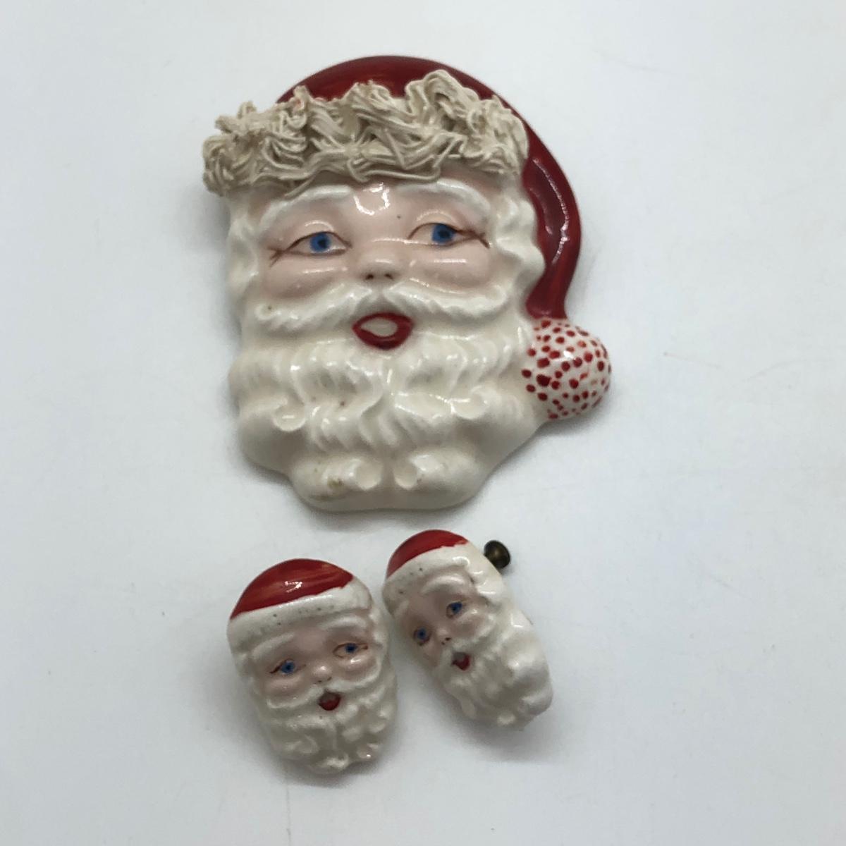 LOT 27: Vintage Handmade "Holland Mold" Santa Claus Brooch & Screwback Earrings, JJ Pewter Charms, & Goldtone Angel Brooch w/ Matching Pierced Earrings