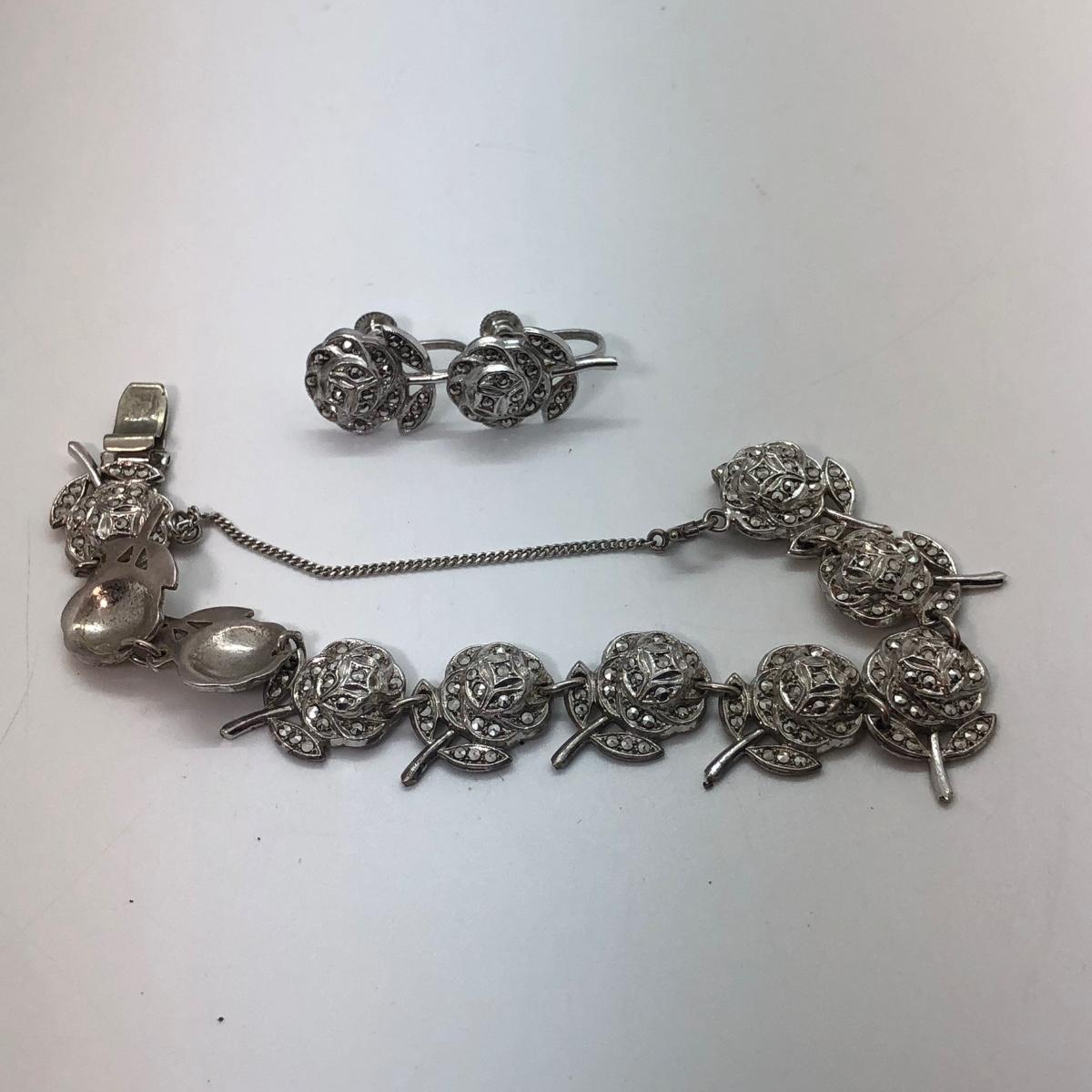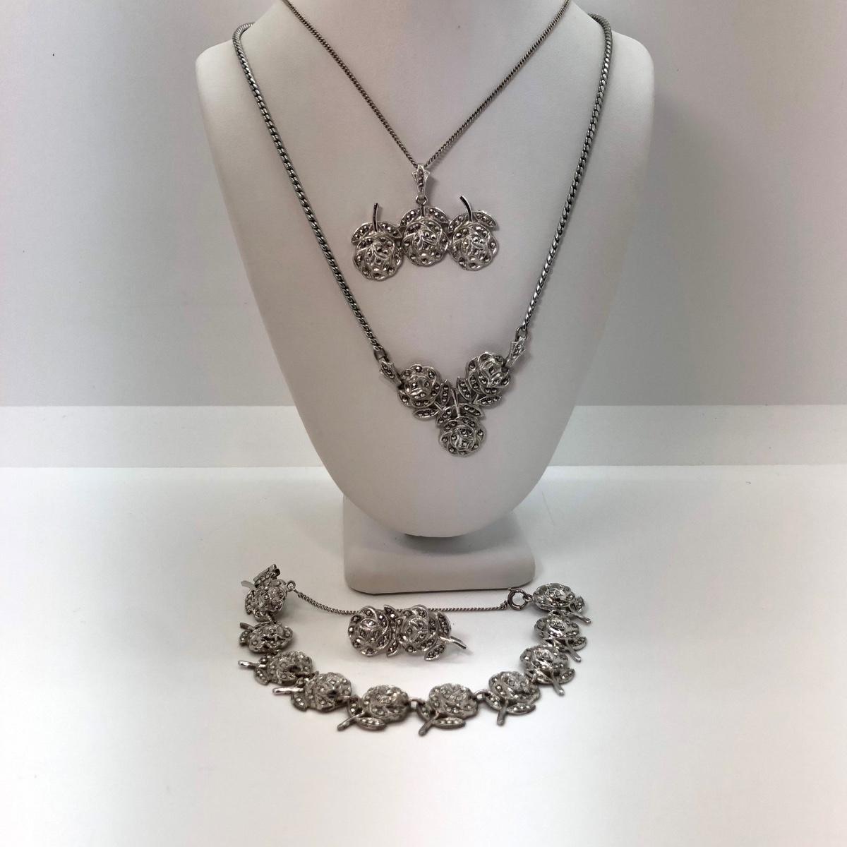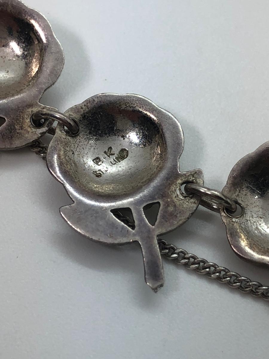 LOT 30: Sterling Silver Rose Jewelry - 14" Necklace, 16" Necklace, Bracelet w/ Safety Chain & Screwback Earrings