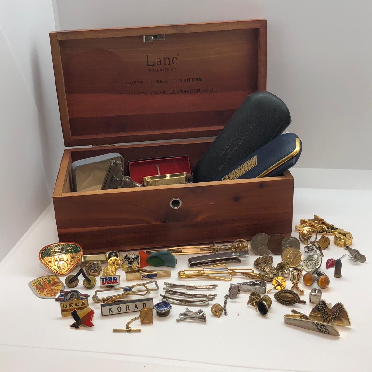 LOT 38: Lane Miniature Chest, Tie Clips, Cufflinks & More