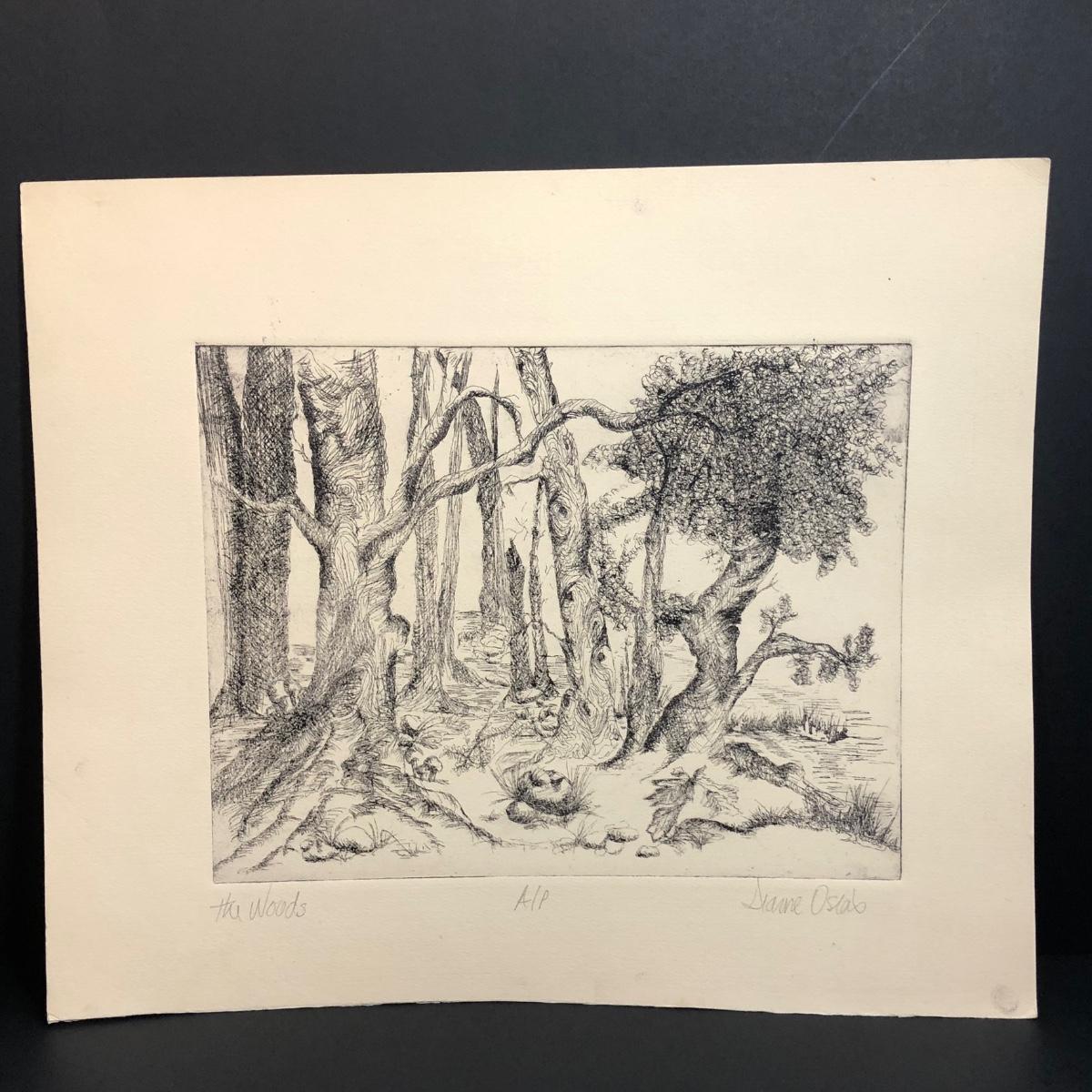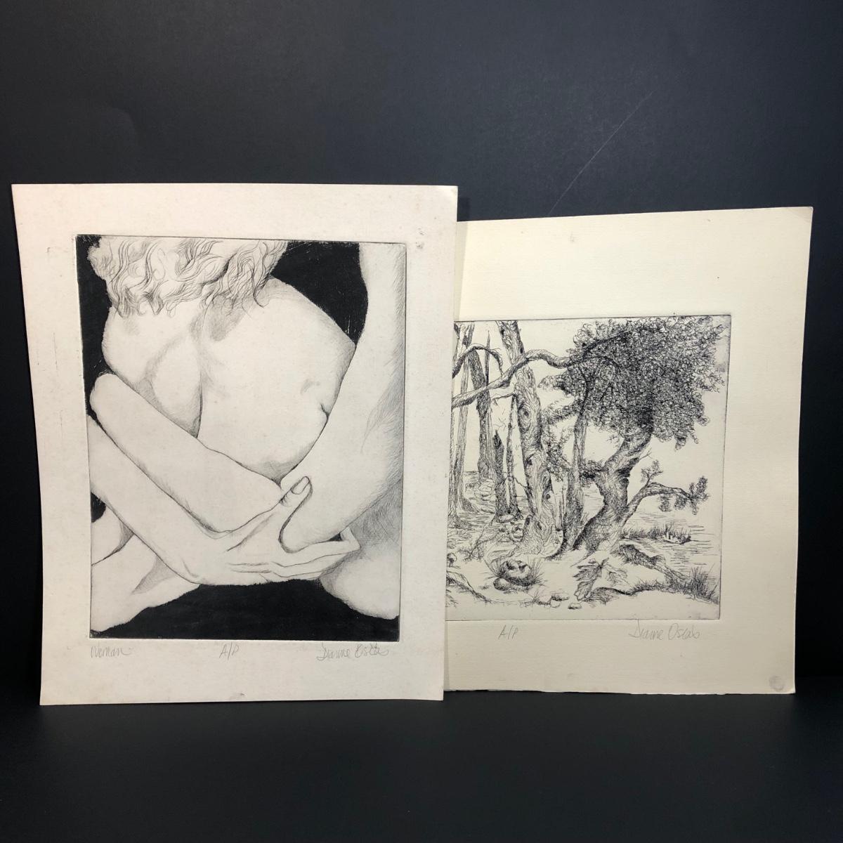 LOT 43: Drawings Signed by Artist Diane Osta - "Woman" & "The Woods"
