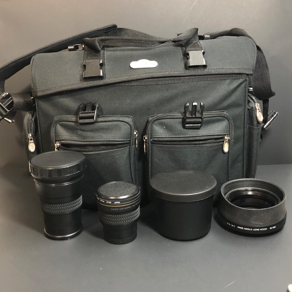LOT 49: Rainbow Camera Bag w/ Raynox Telephoto Conversion Lenses & Lens Hoods