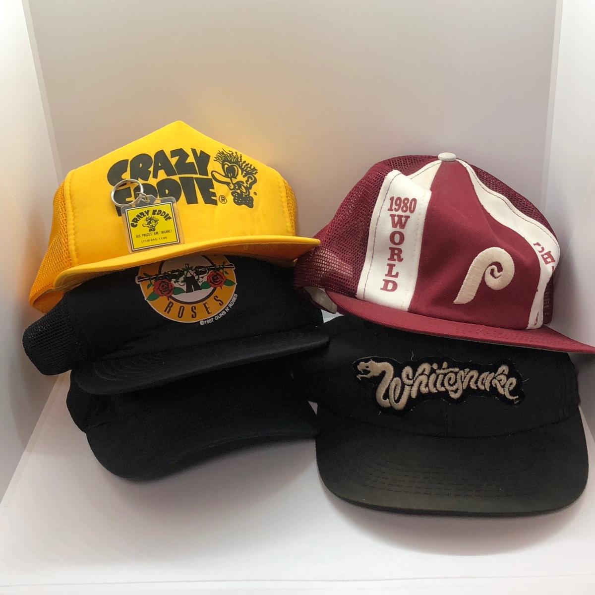 LOT 53: Hat Collection - 1980 Phillies World Champs, Crazy Eddie, Whitesnake, Guns N Roses, US Navy