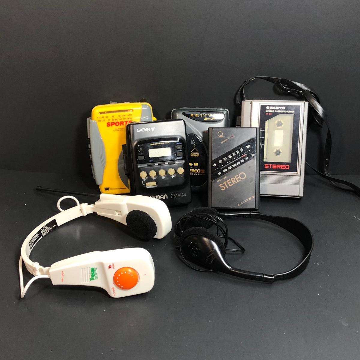 LOT 54: Portable Players - Sony Walkman w/ Headphones, Tropicana LifeLong Radio Headset Model 222, Lloyds AM/FM Stereo Model N739, Sanyo Stereo Cassette Player Model M69 & More