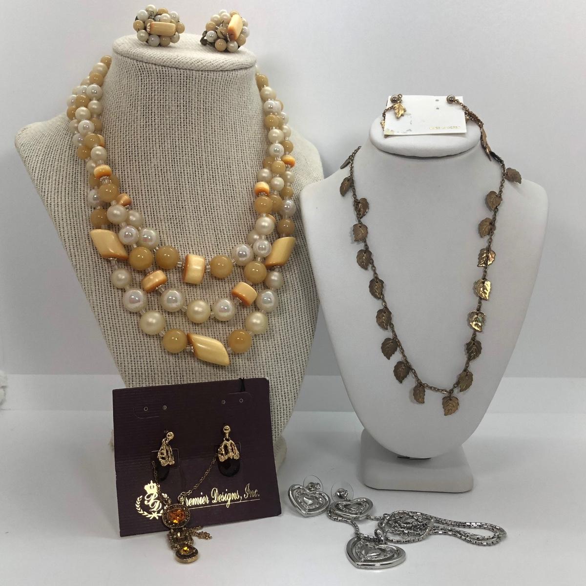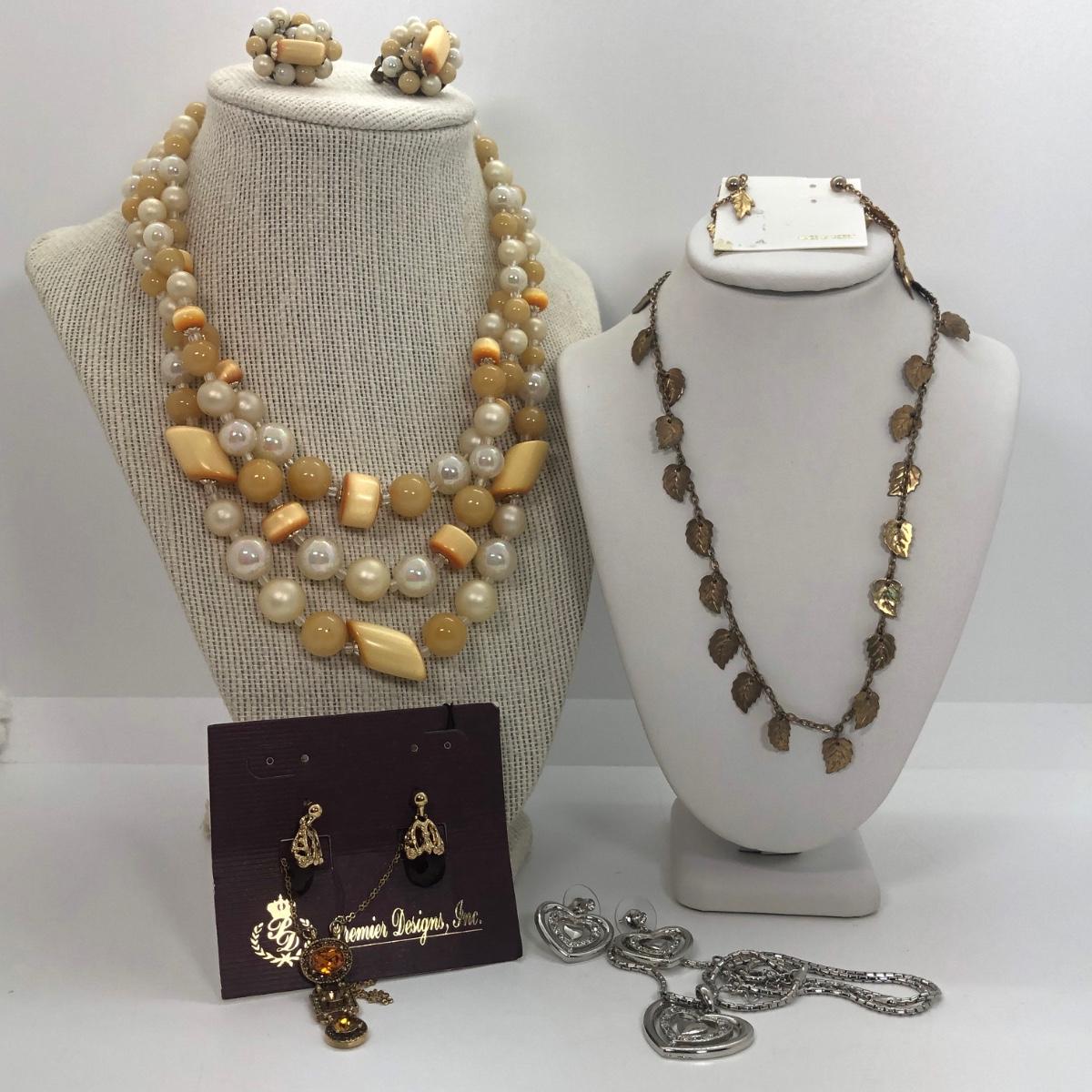 LOT 71: Necklace & Earring Sets - Premier Designs Inc, Leaf Set, Heart Set & Orange Set