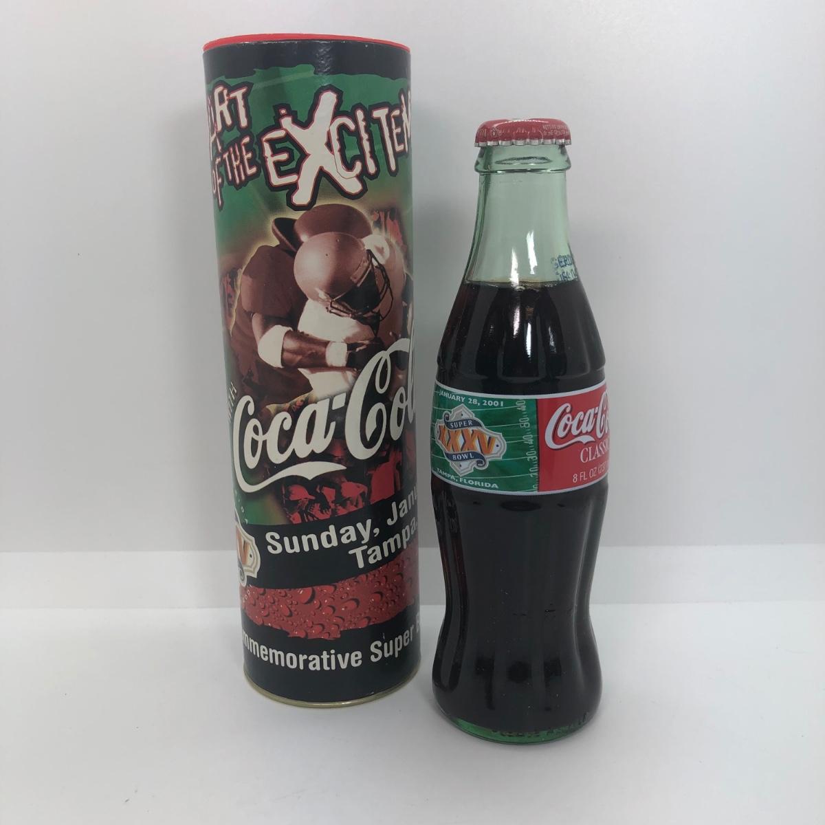 LOT 86: Commemorative Super Bowl XXXV 8oz Coca-Cola Bottle (Never Opened)