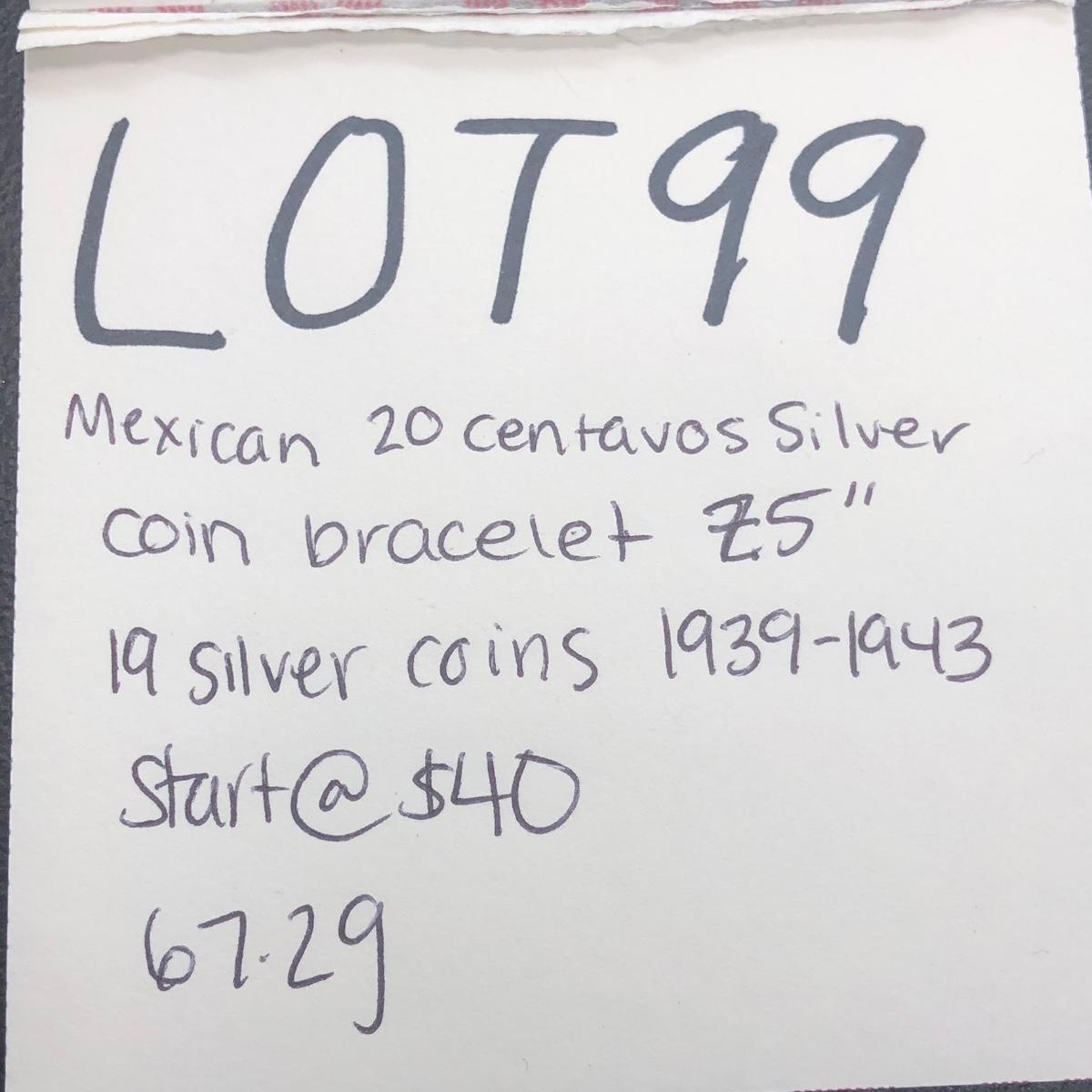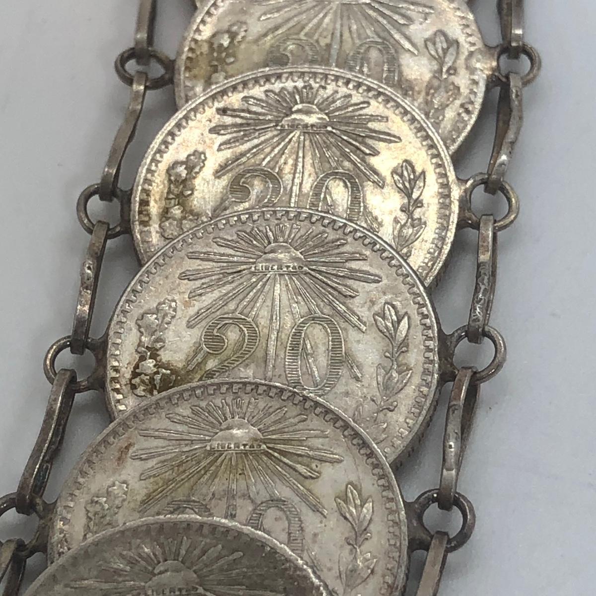 LOT 99: Mexican 20 Centavos Silver Coin Bracelet (67.2gtw)