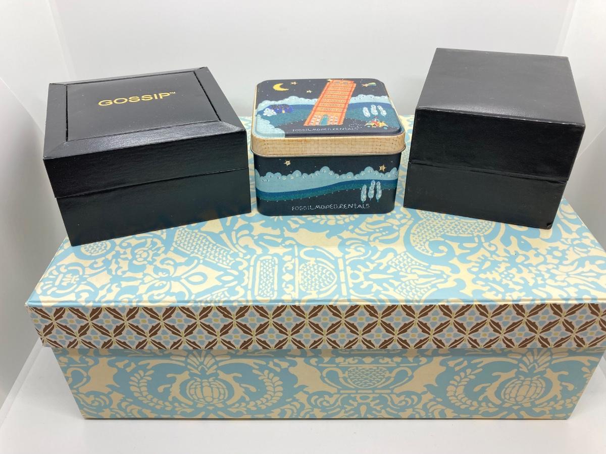 LOT 108: Fossil, Studio and Gossip Watches with Storage Box