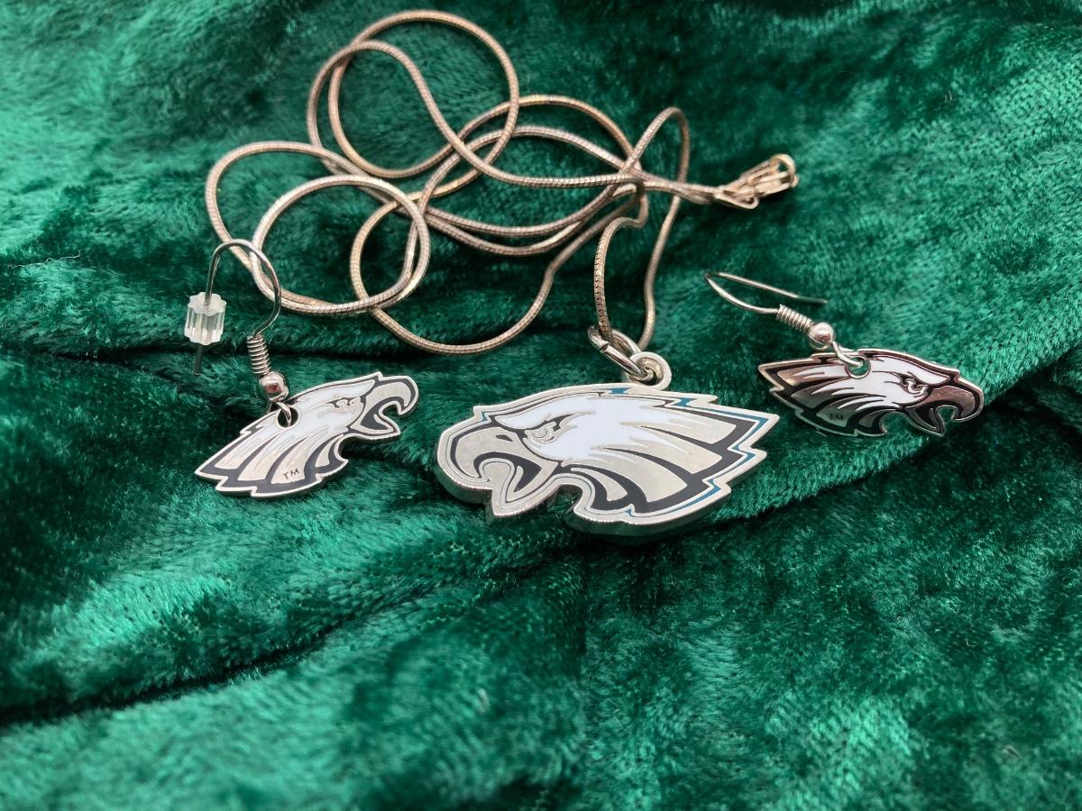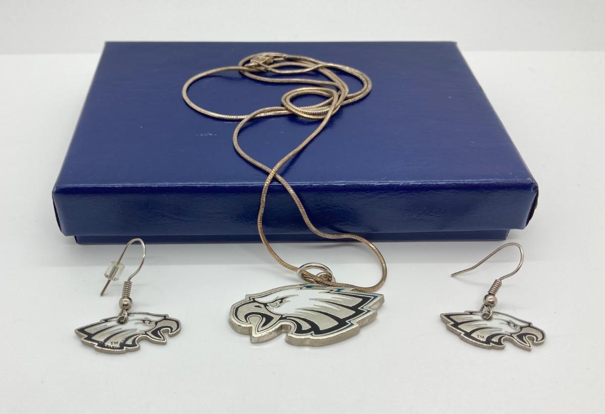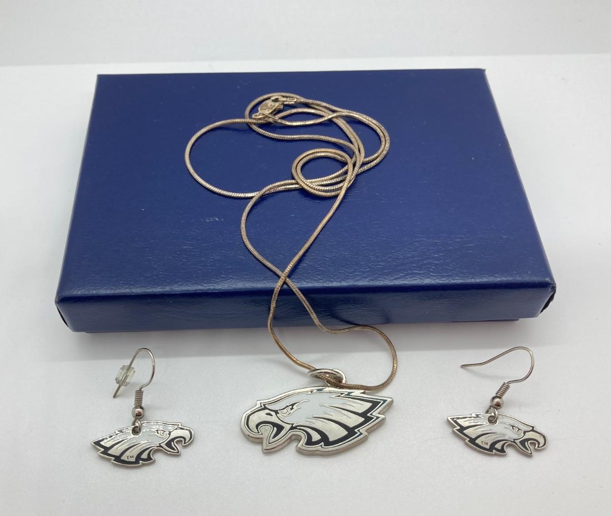 LOT 109: Sterling Silver - Philadelphia Eagles Necklace and Earrings