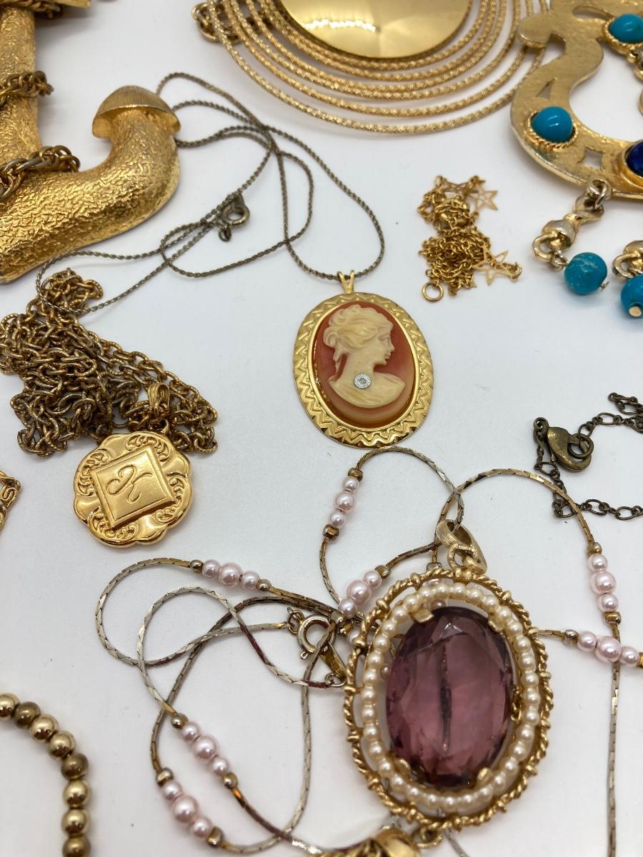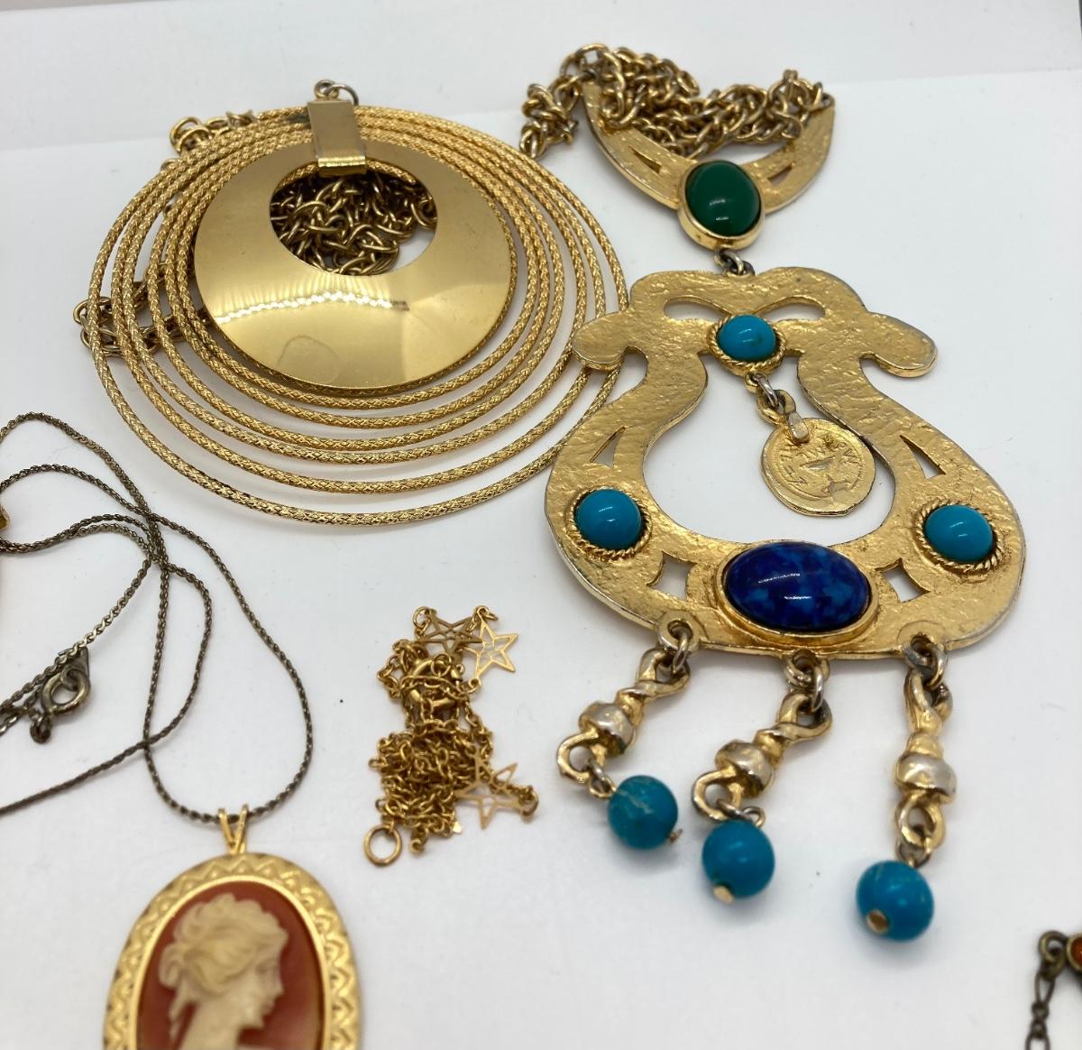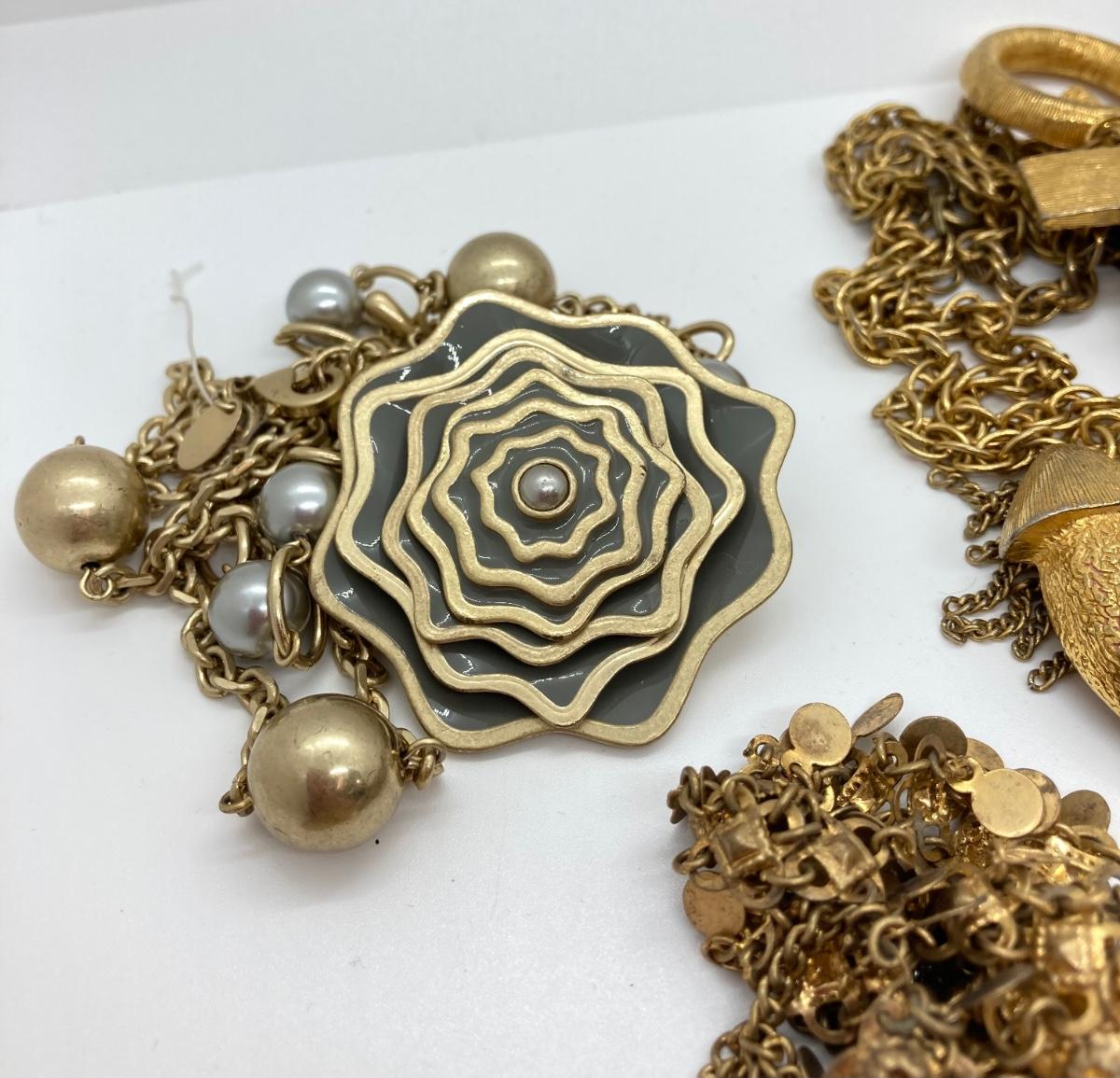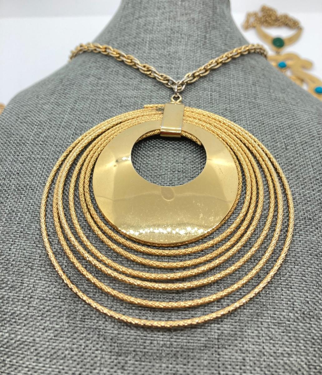 LOT 120: Gold Tone Necklace Collection - 3 Large Pendants and More