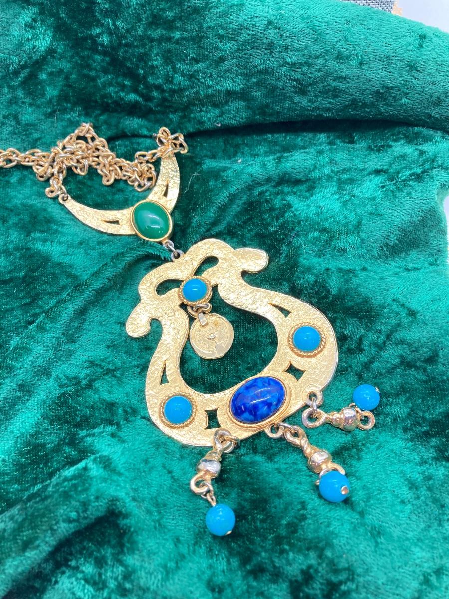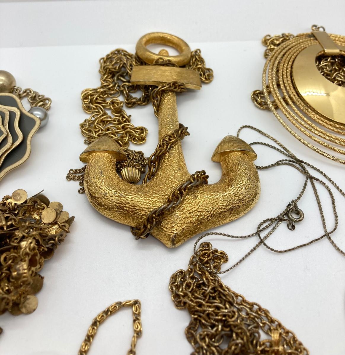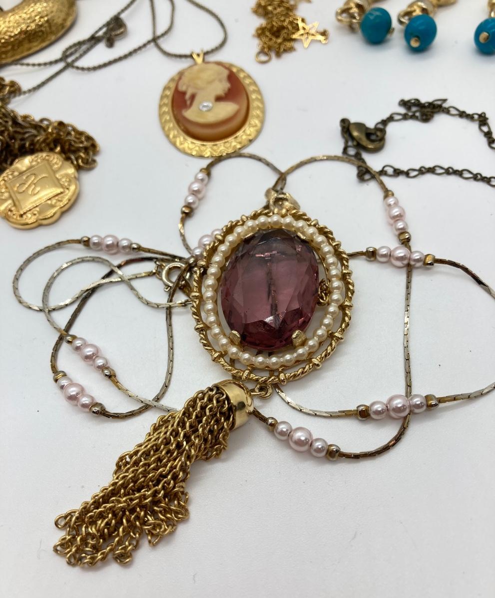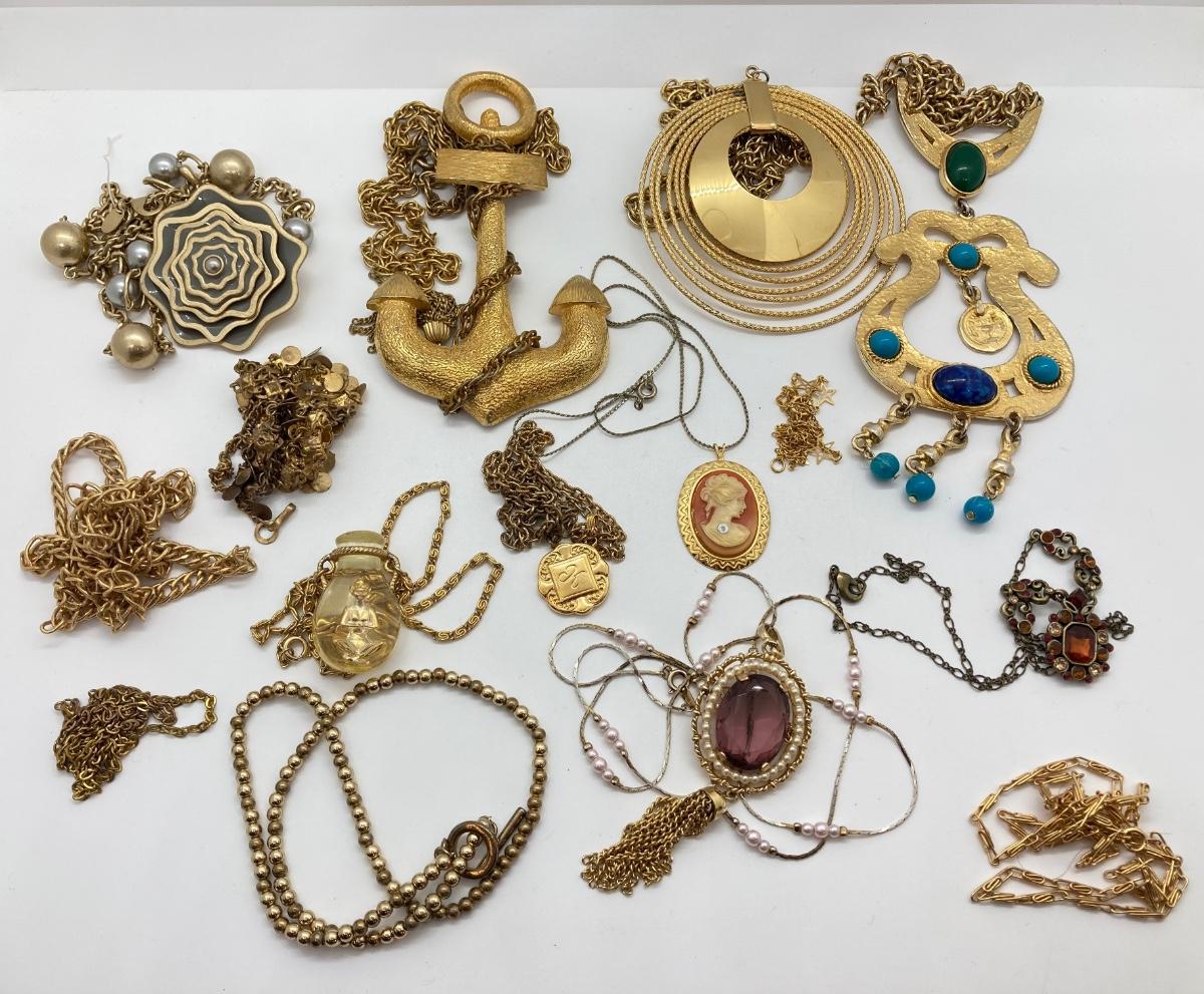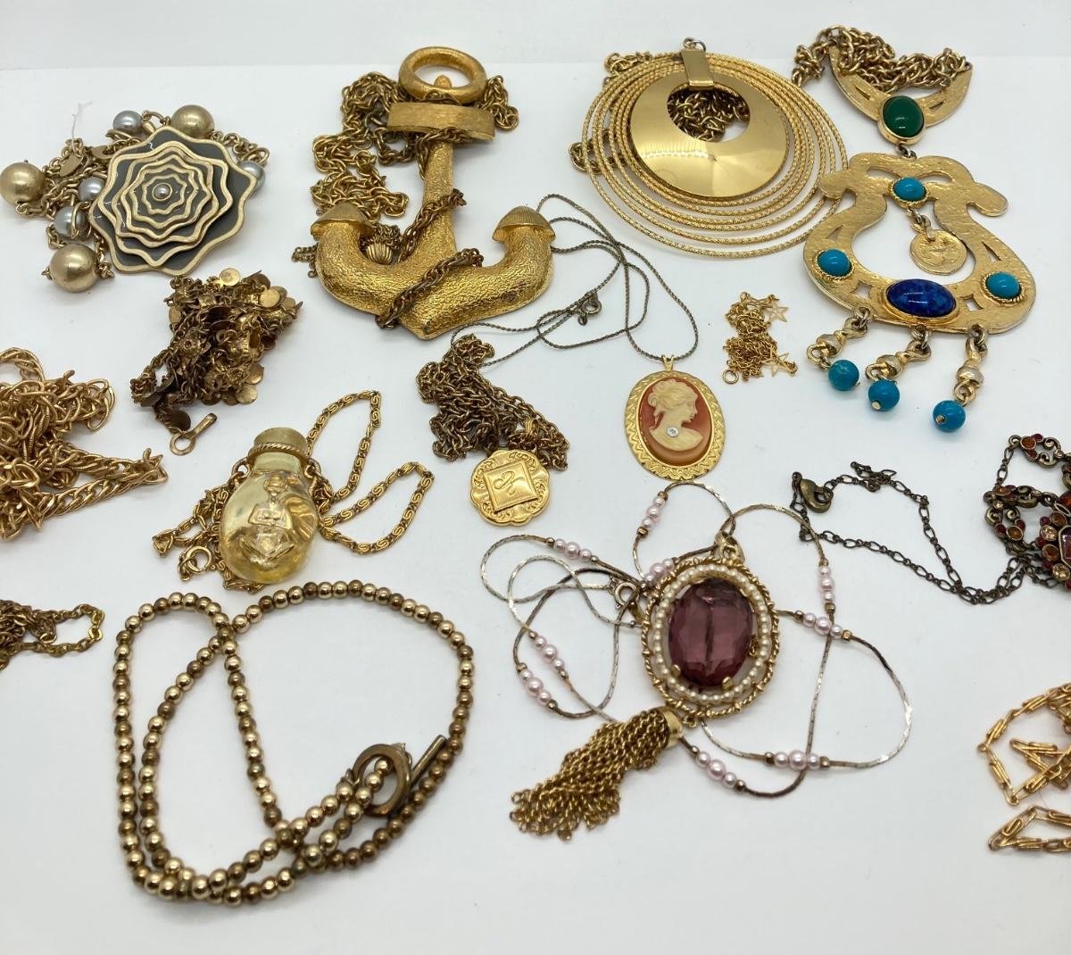 LOT 120: Gold Tone Necklace Collection - 3 Large Pendants and More