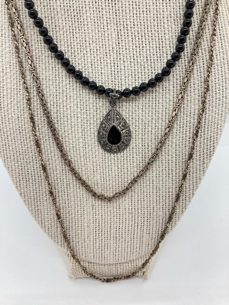 LOT 127: Sterling Silver Necklaces - Marcasite and Black Onyx