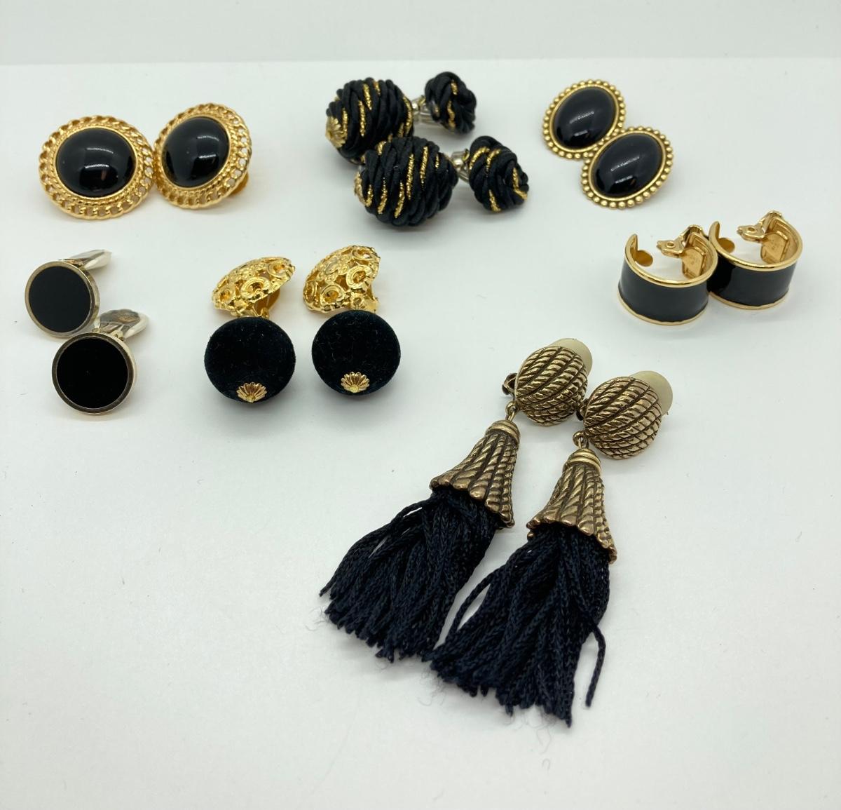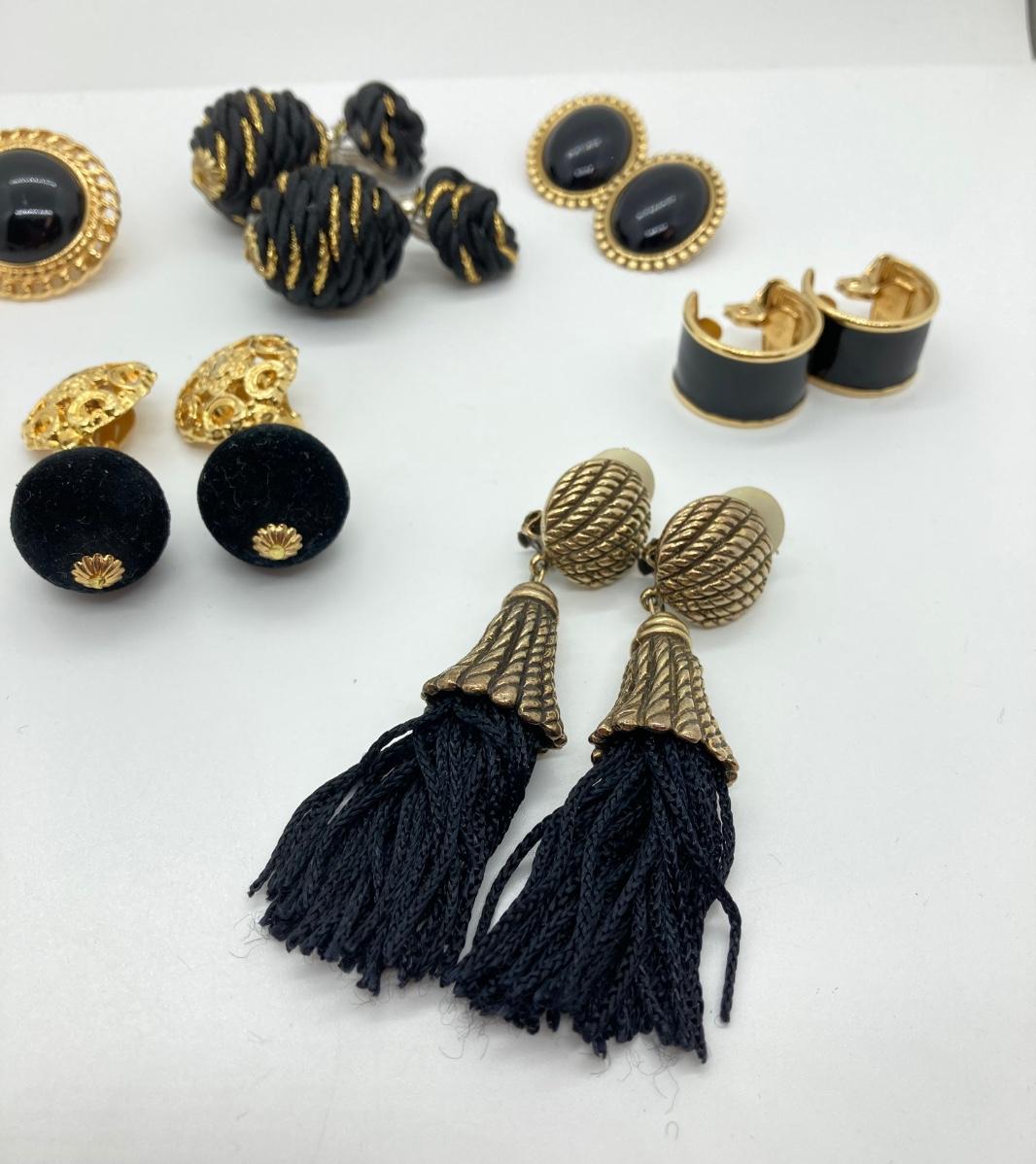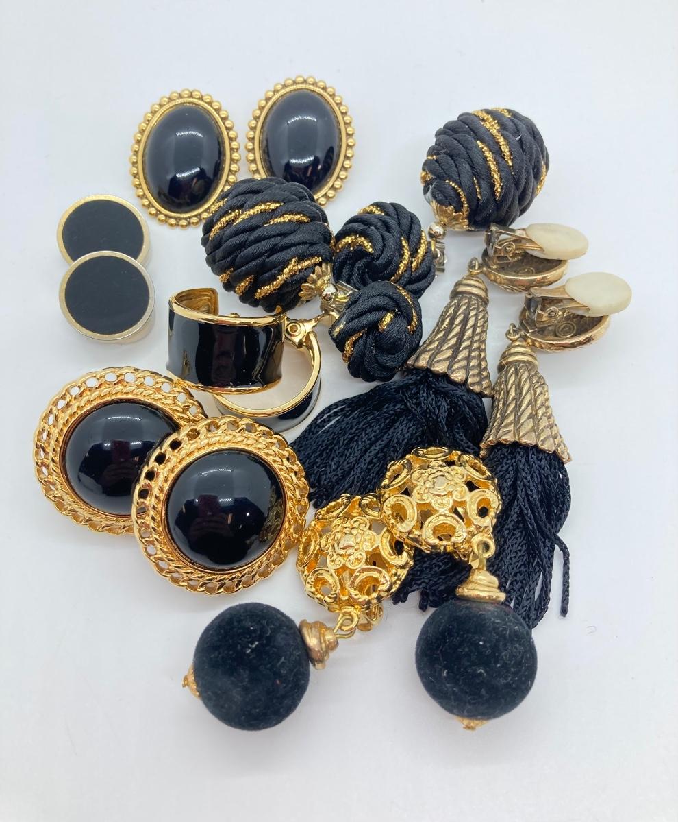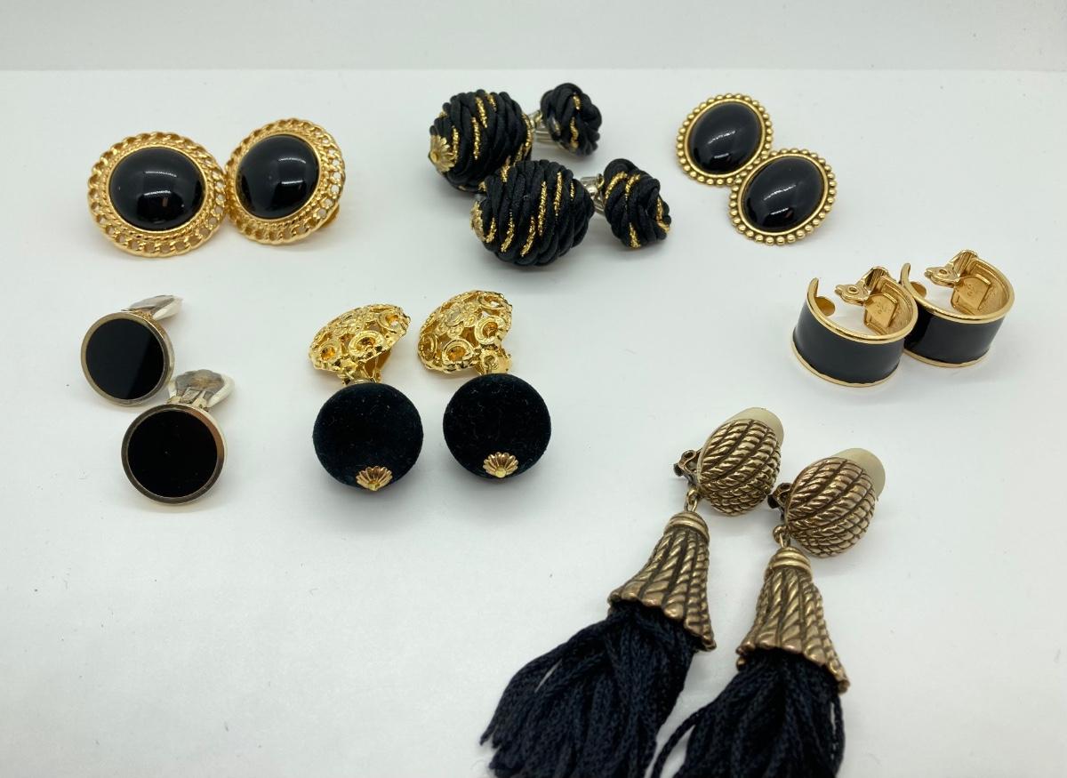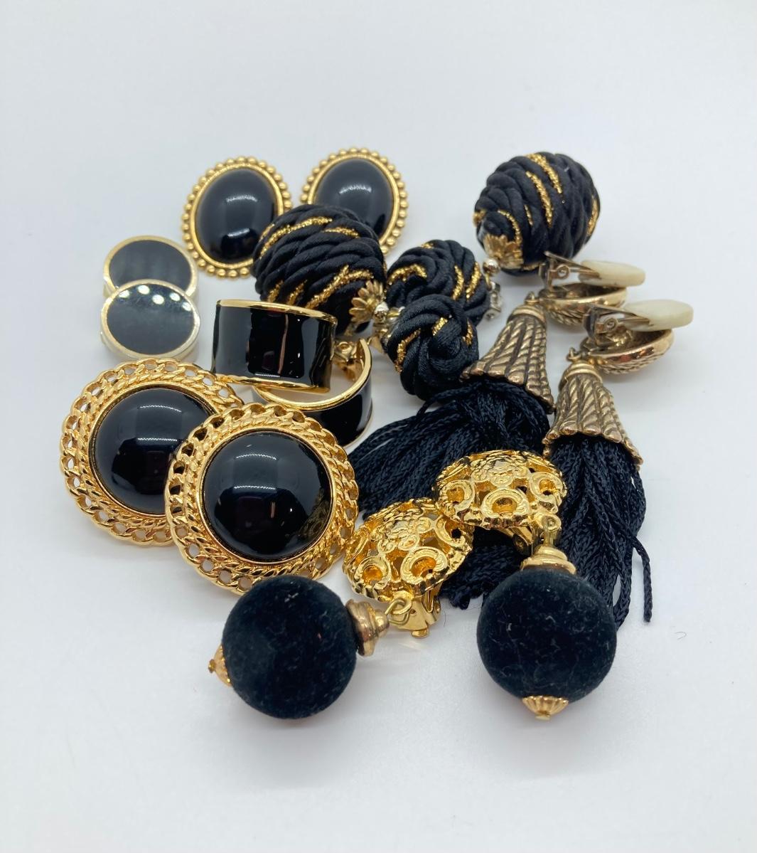 LOT 129: Black and Gold Tone Earring Collection - Monet and More