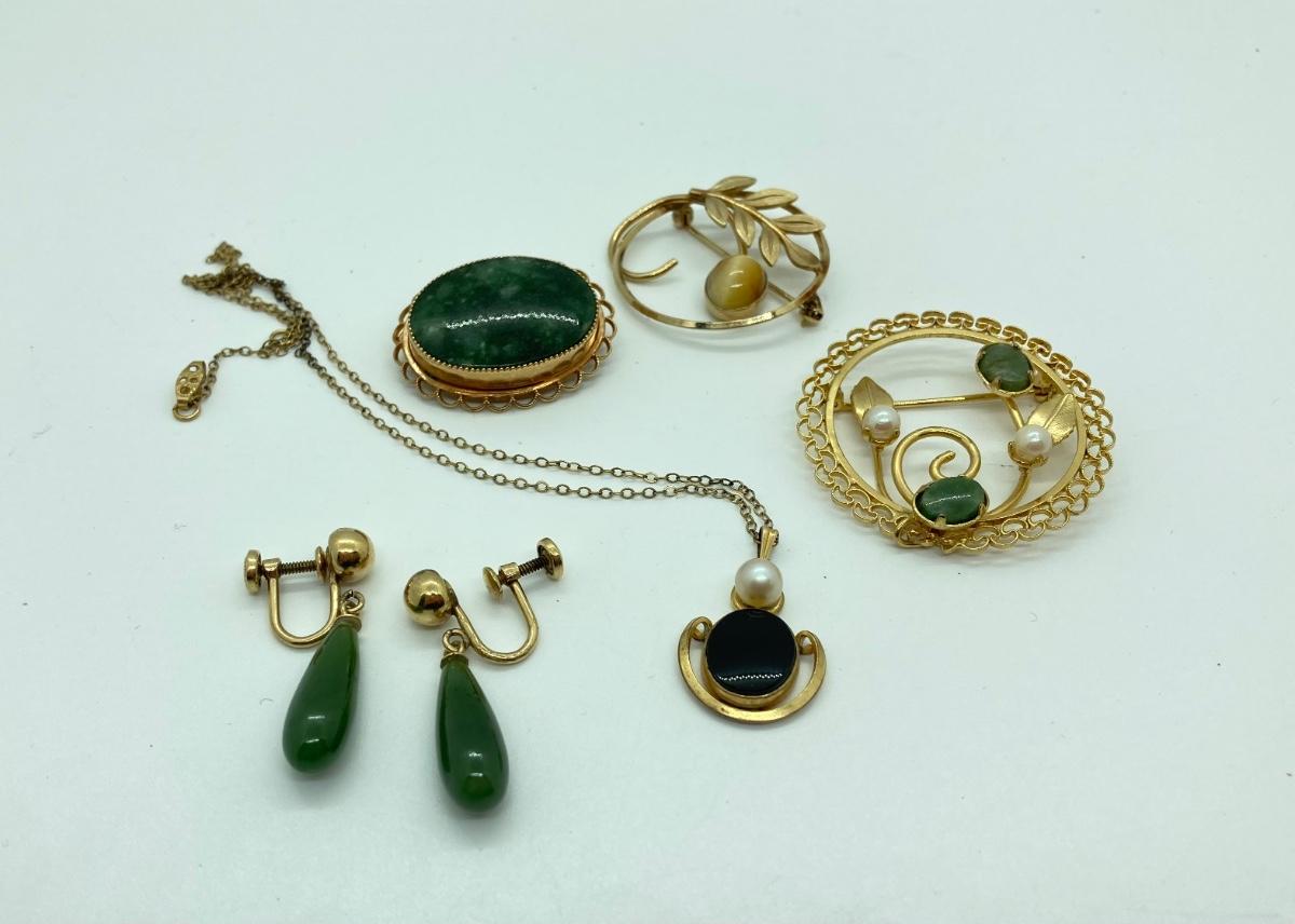 LOT 142: Gold Filled Jewel Collection - Jade and More