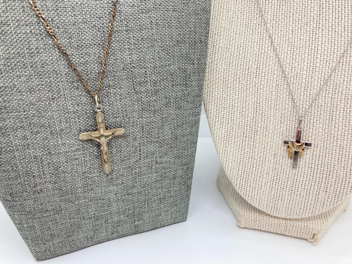 LOT 144: Vintage Sterling Silver Crucifix Cross Necklaces