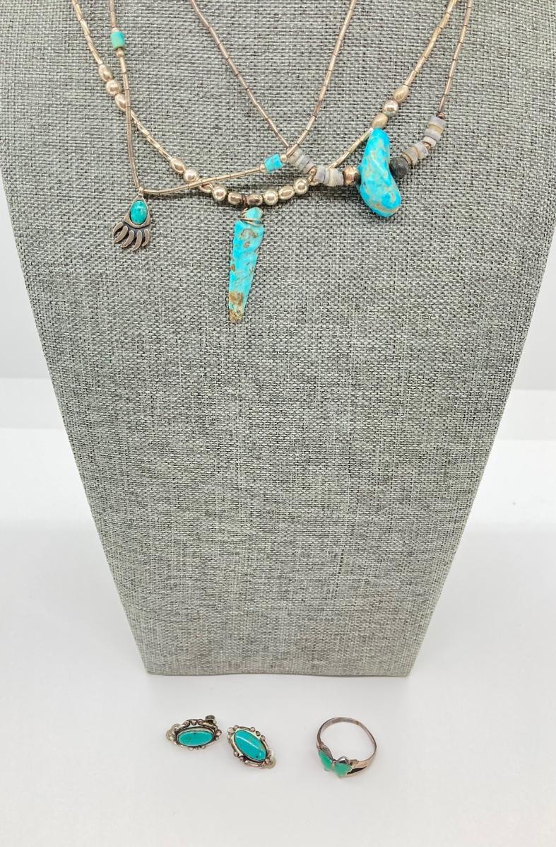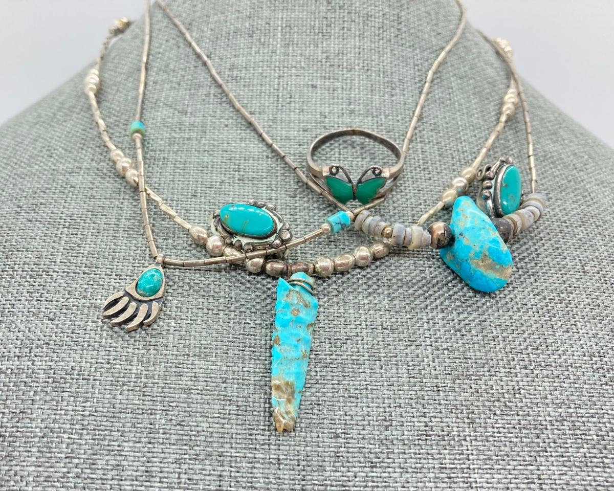 LOT 150: Sterling Silver Turquoise Necklaces Earrings and More