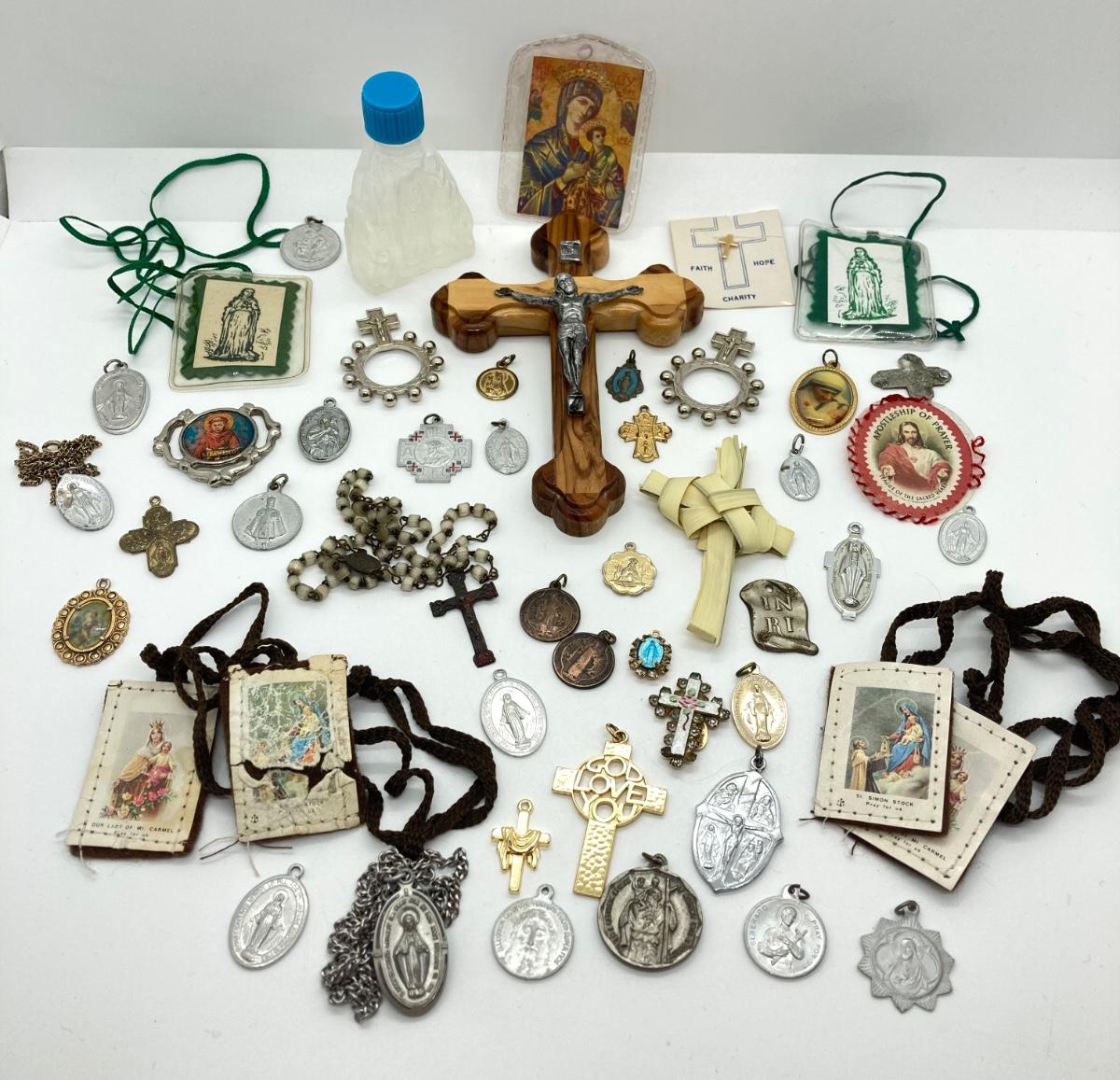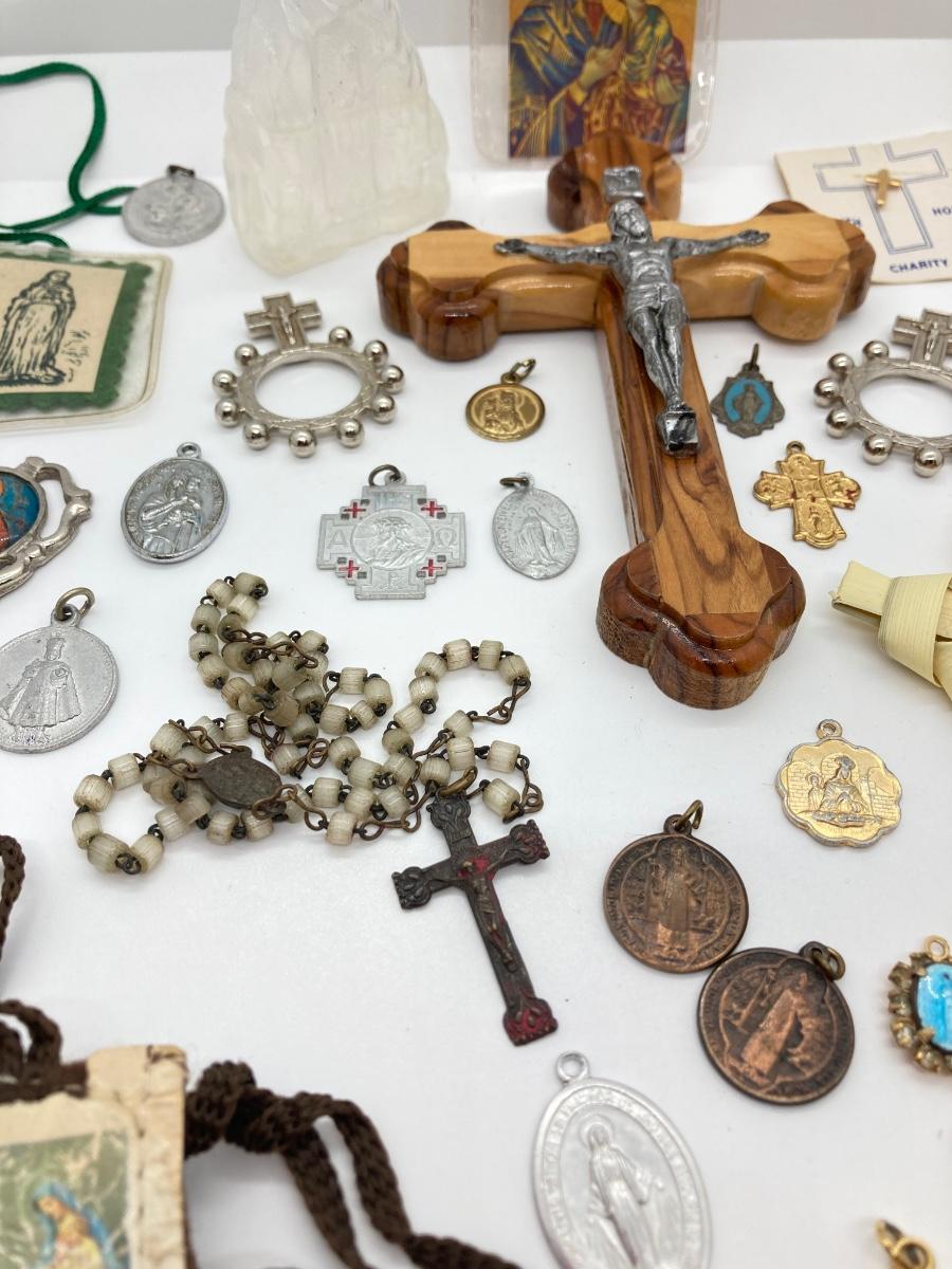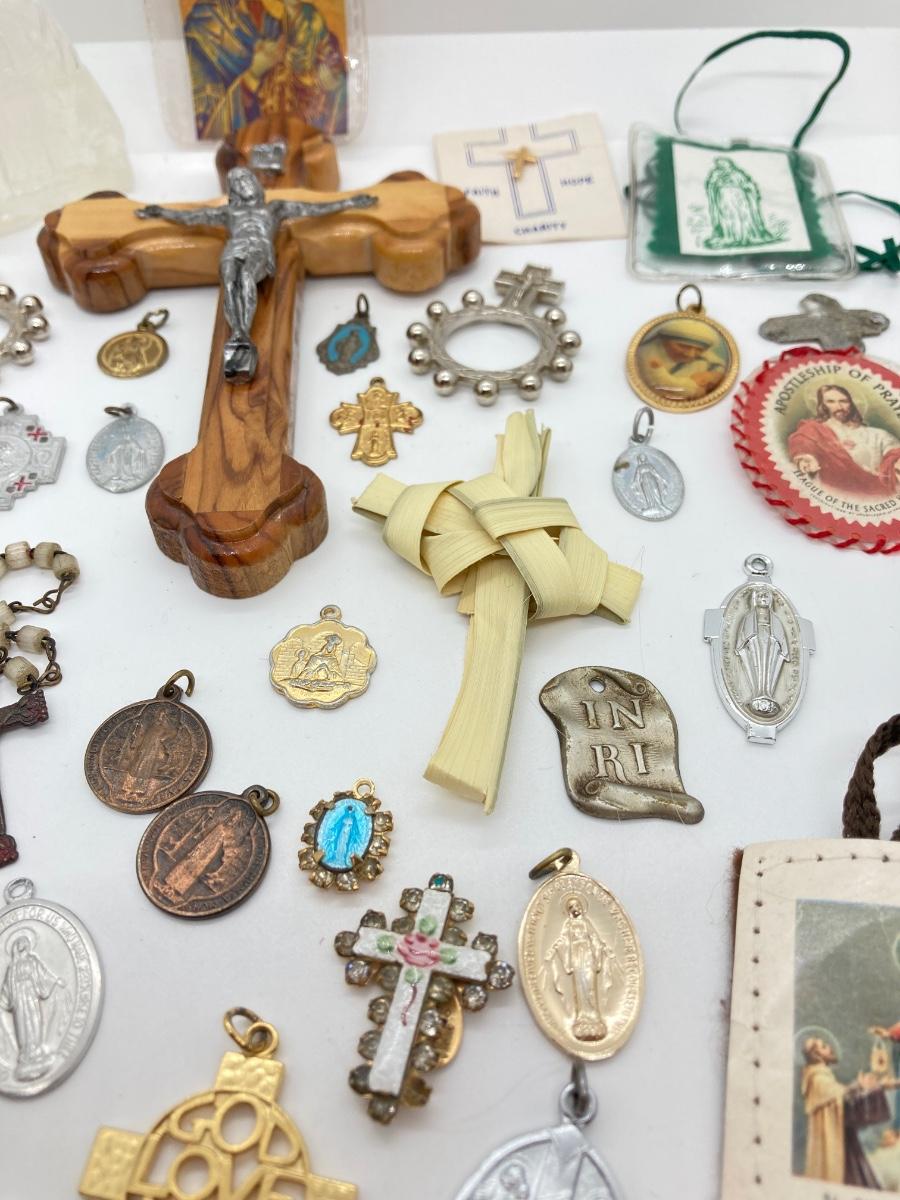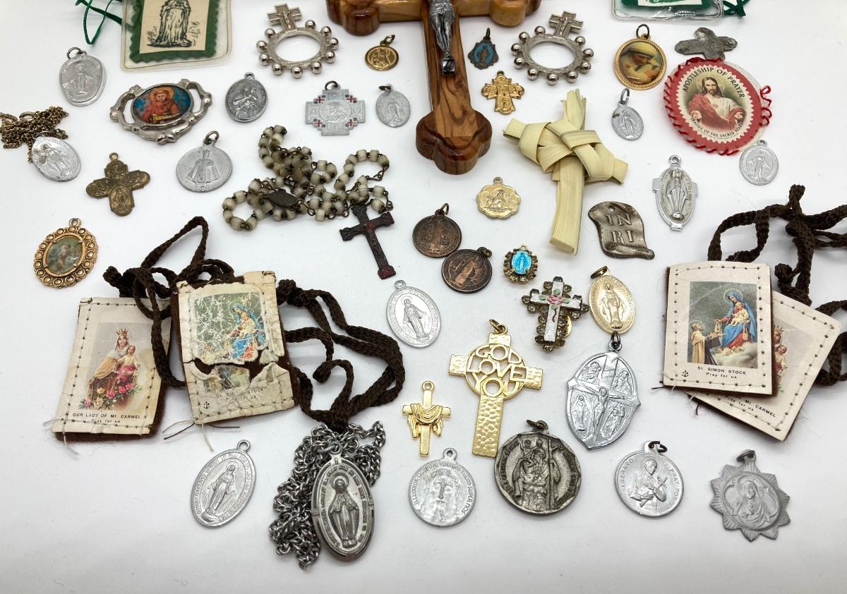 LOT 161: Large Vintage Religious Lot - Medals, Crosses and More