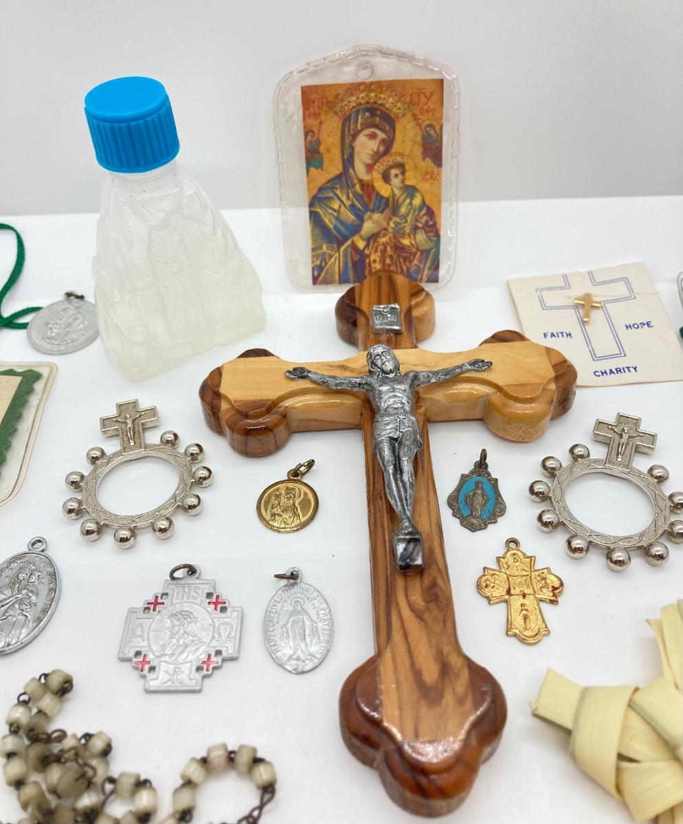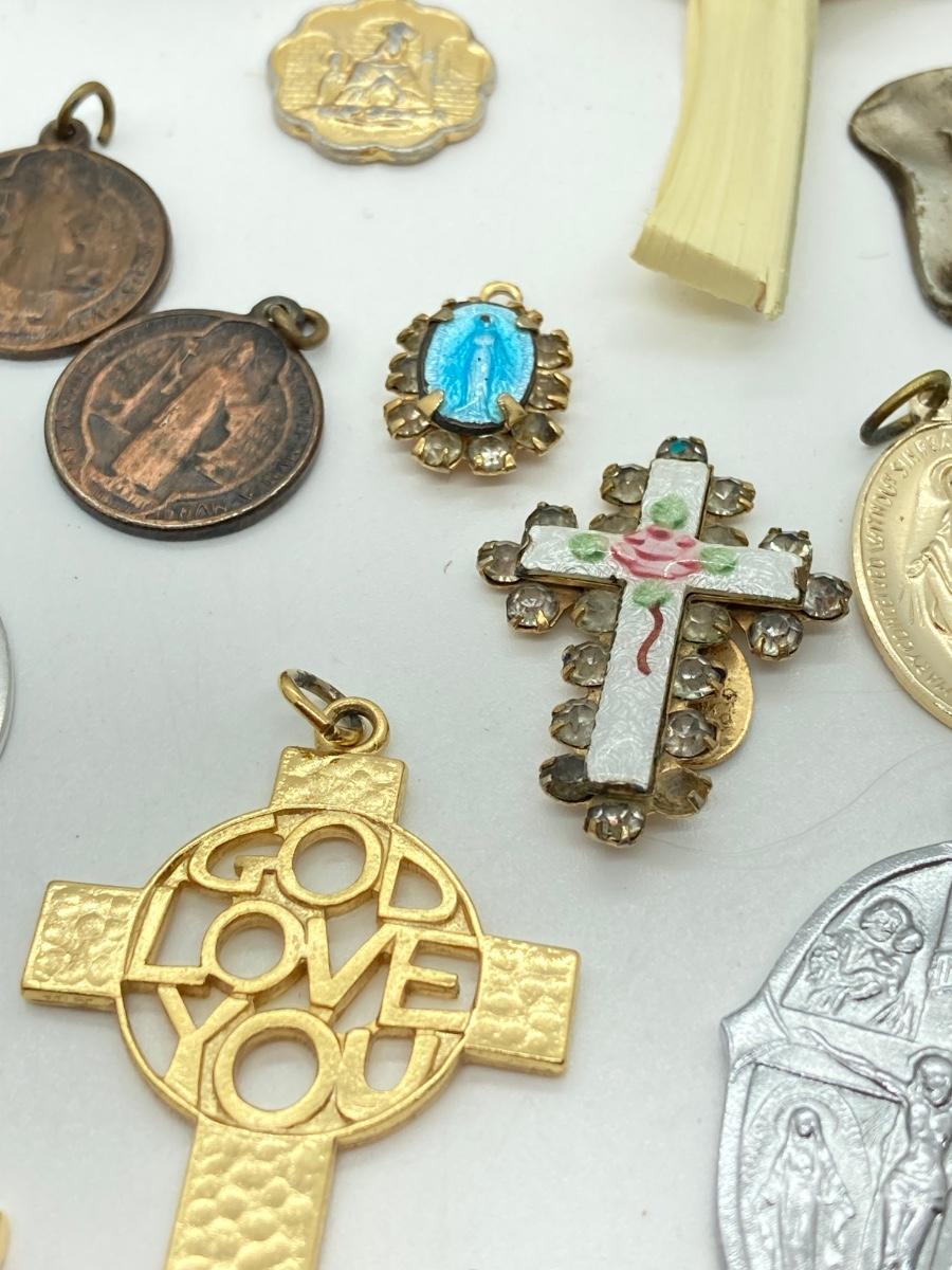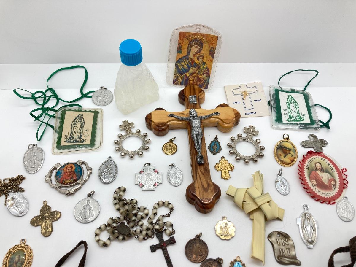 LOT 161: Large Vintage Religious Lot - Medals, Crosses and More