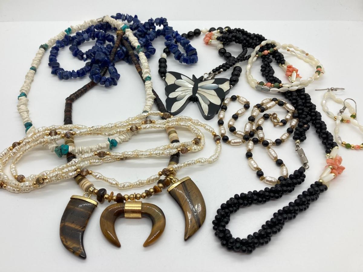 LOT 162: Necklaces - Tiger's Eye, Lapis, Onyx, Coral and More