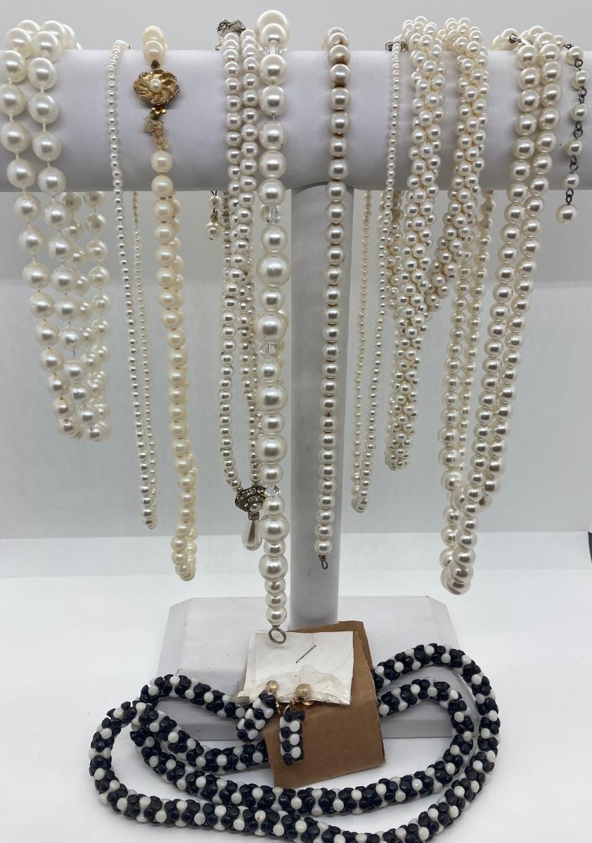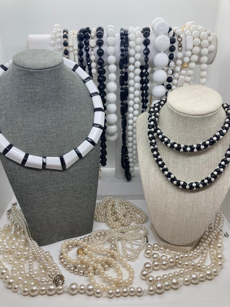 LOT 169: Black, White and Pearl Beaded Necklaces