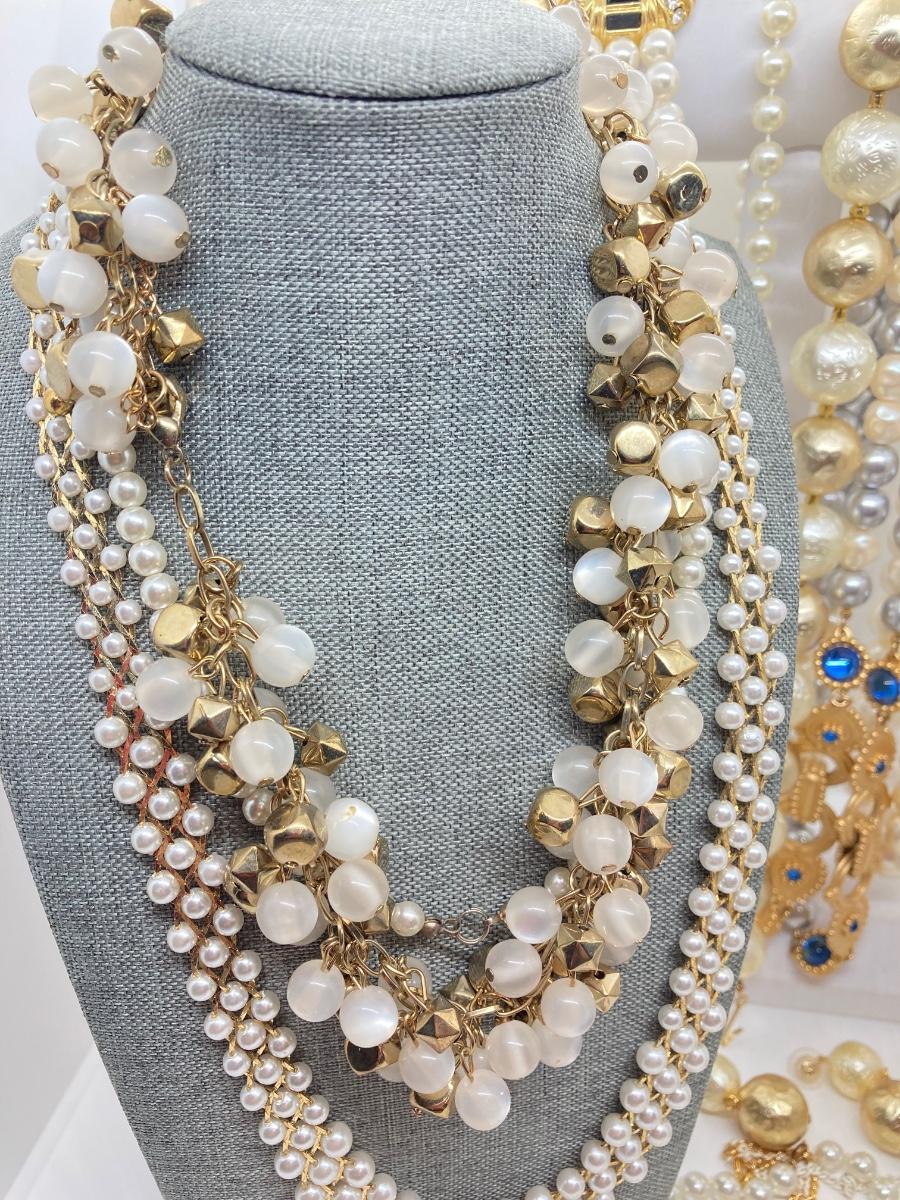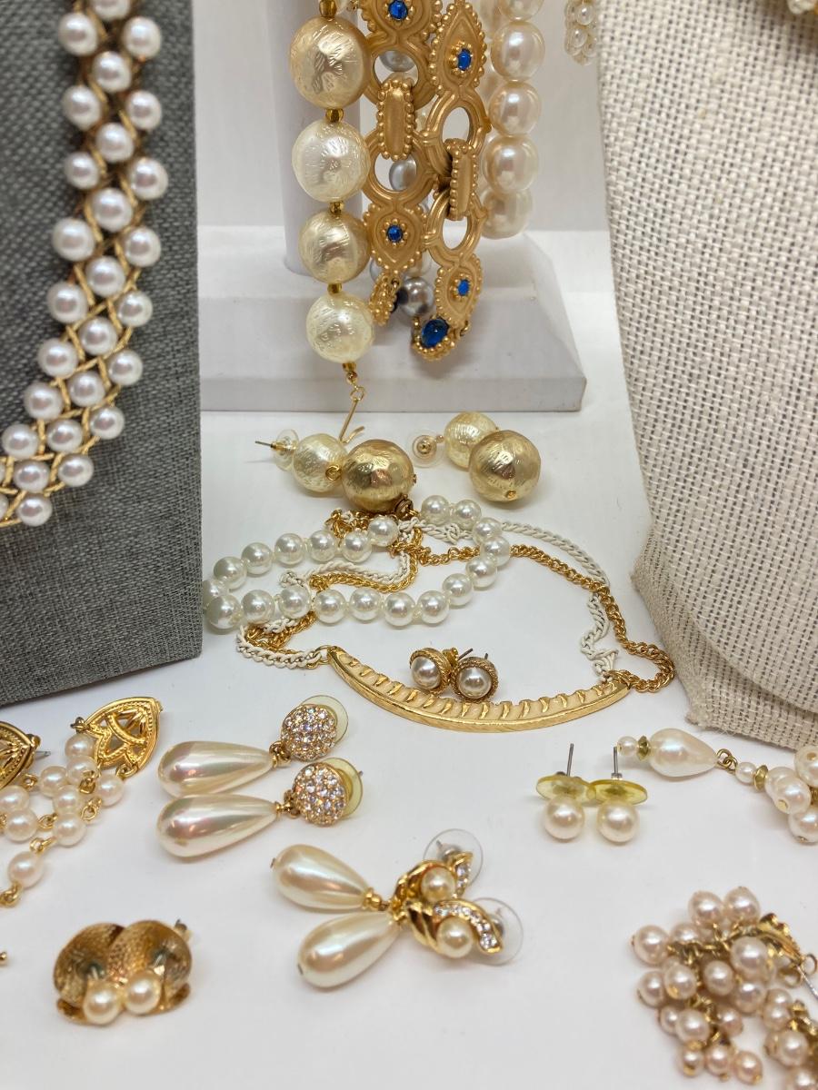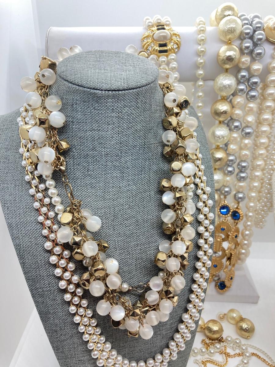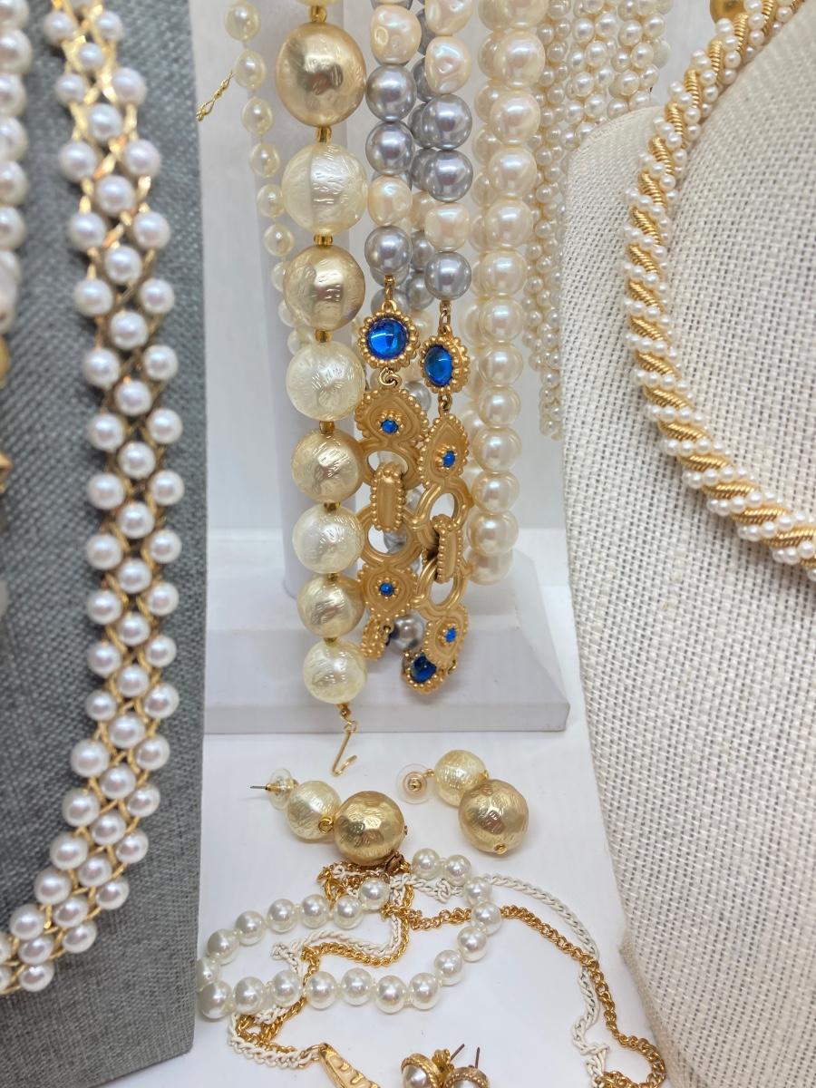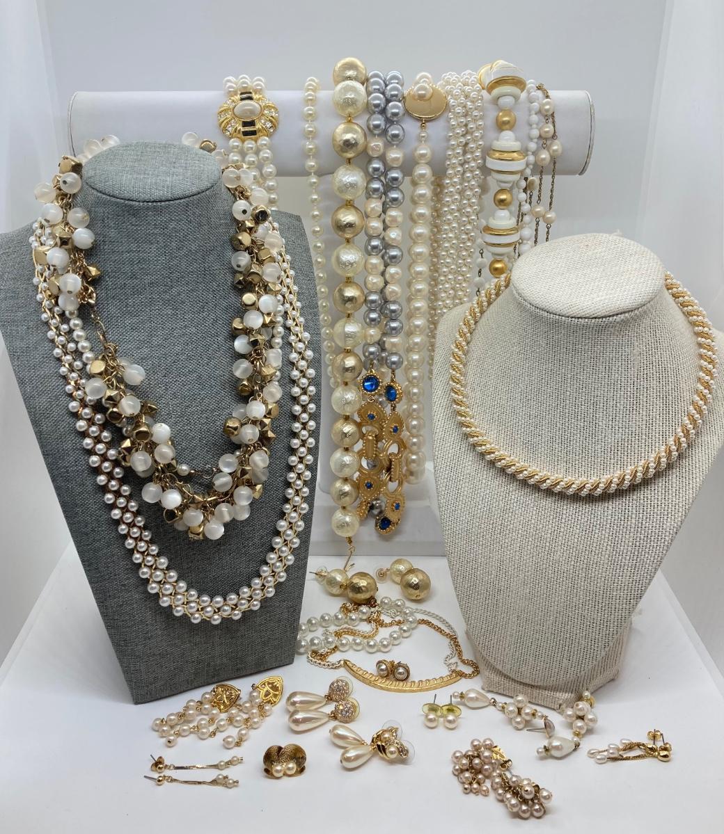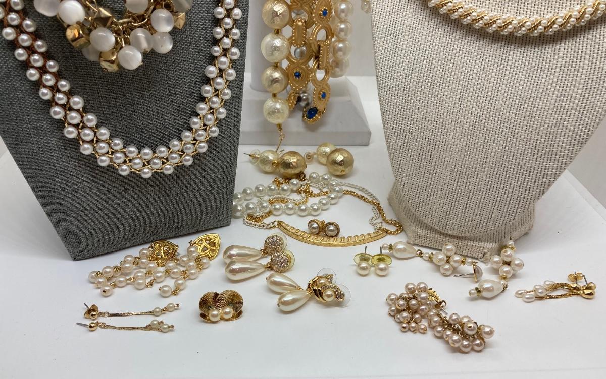 LOT 174: Gold Tone and Pearl Collection of Necklaces and Earrings