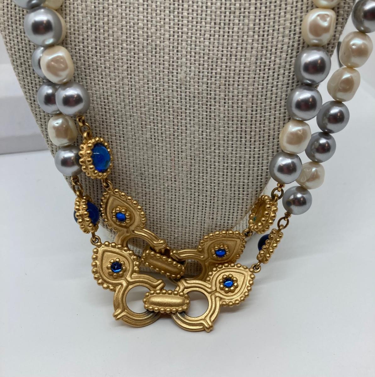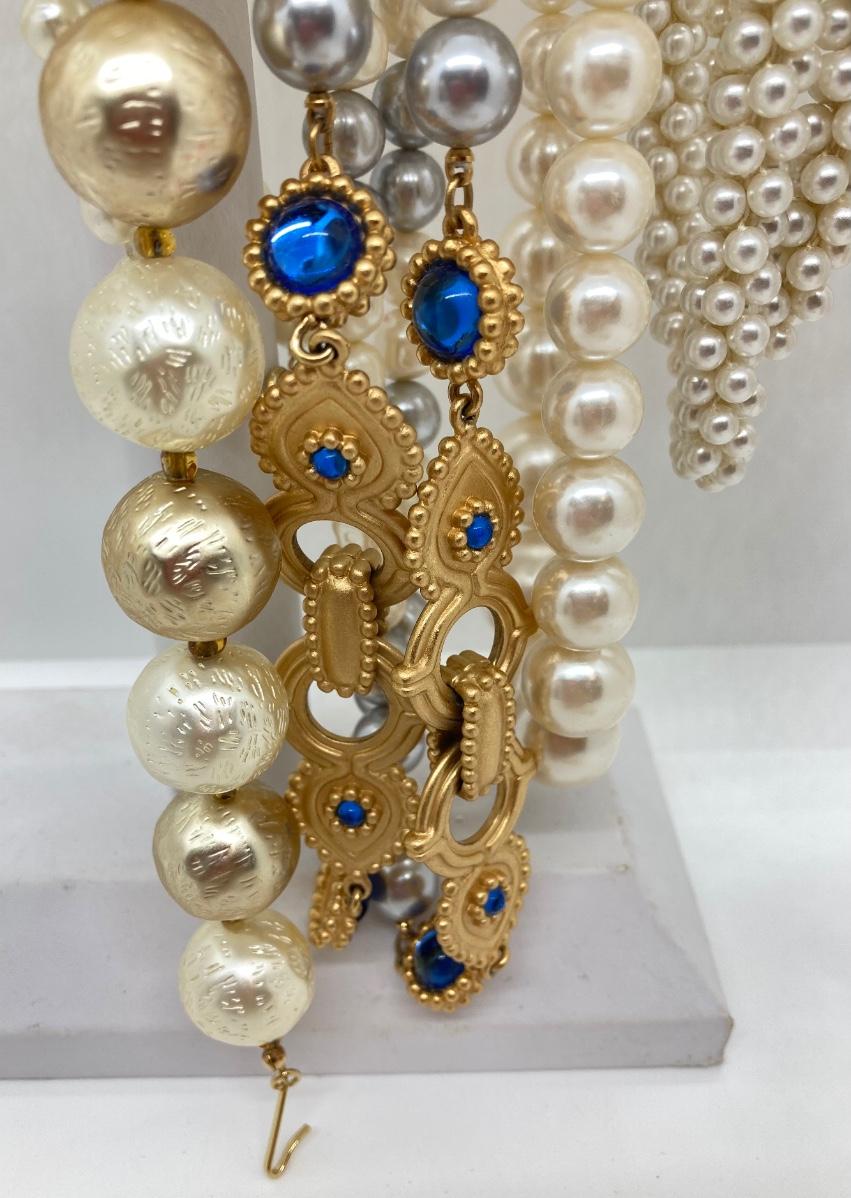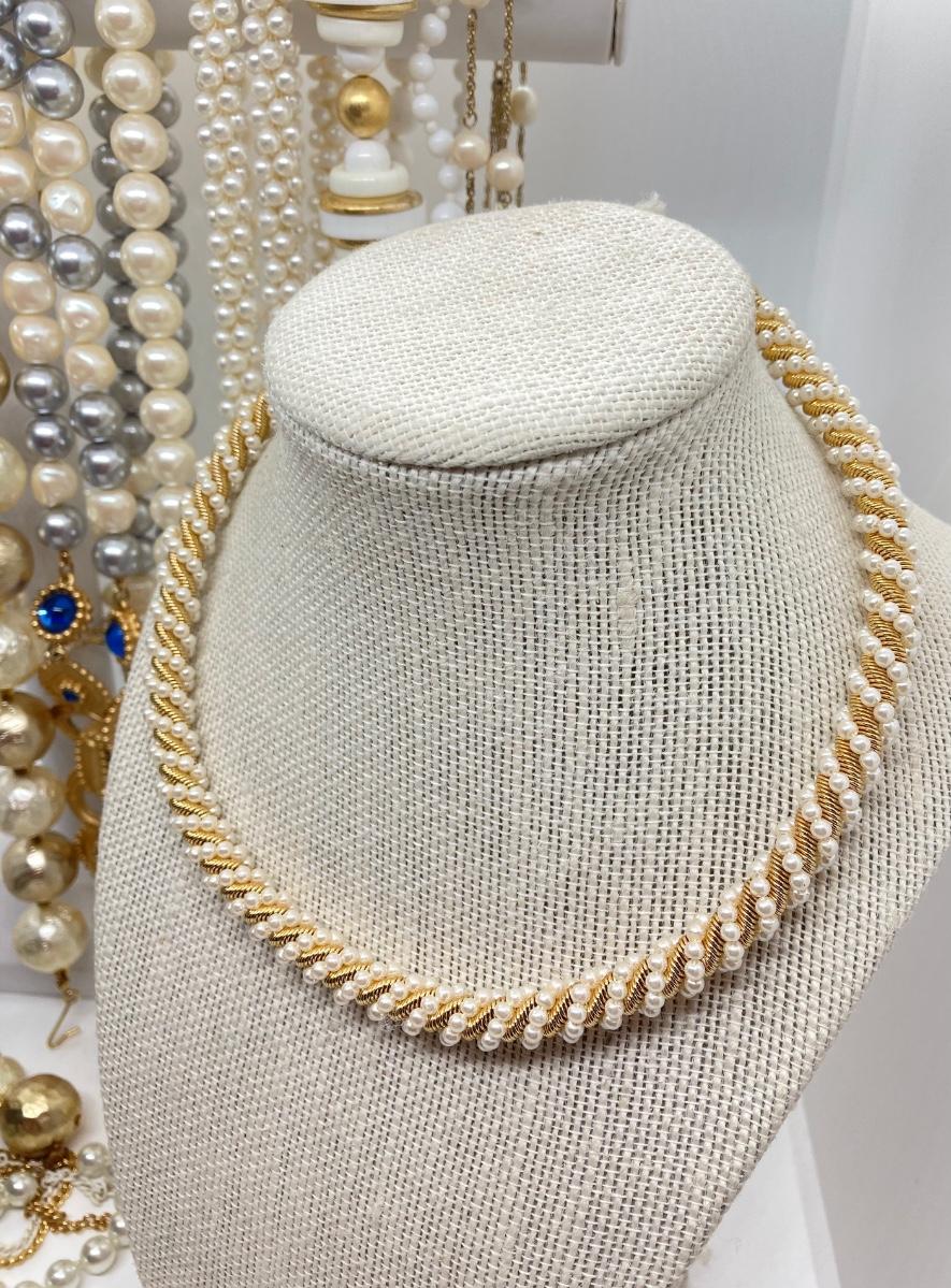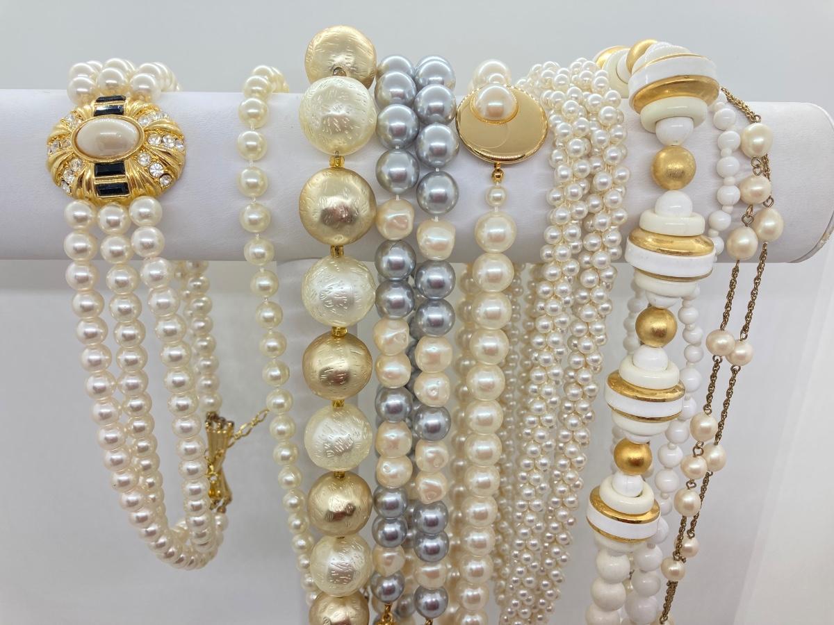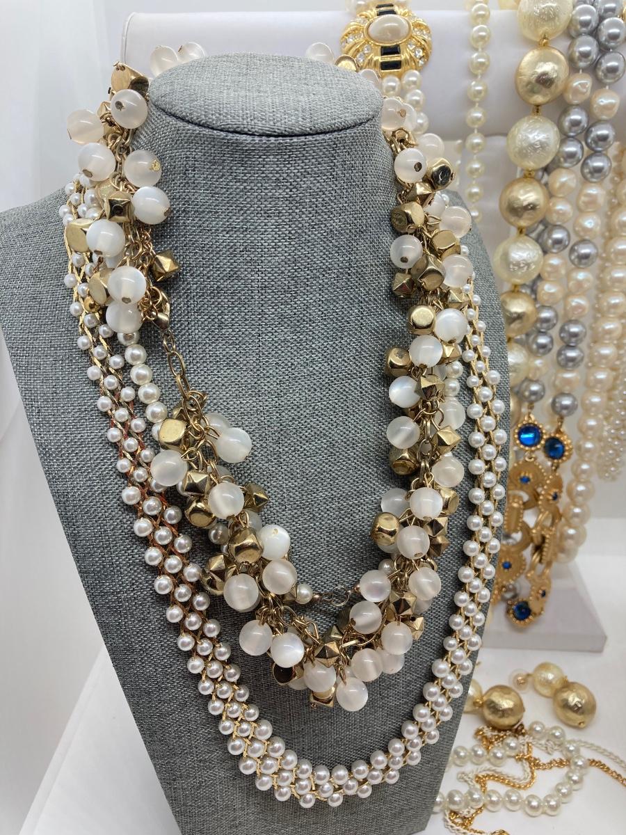 LOT 174: Gold Tone and Pearl Collection of Necklaces and Earrings