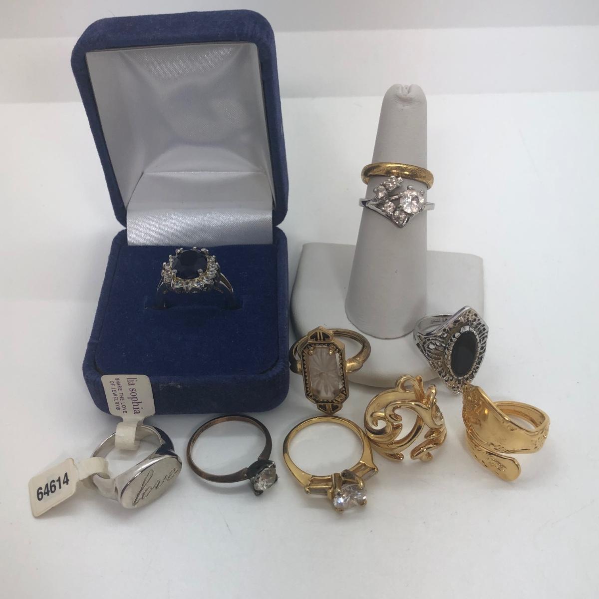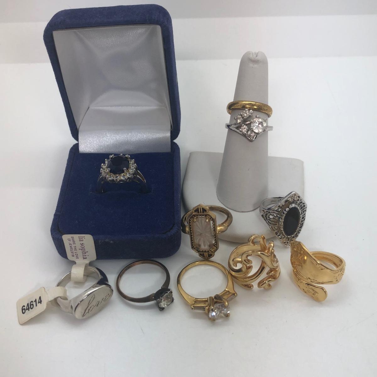 LOT 184: Replica Princess Diana Ring, Lia Sophia Ring, WM Rogers Utensil Handle Ring & More