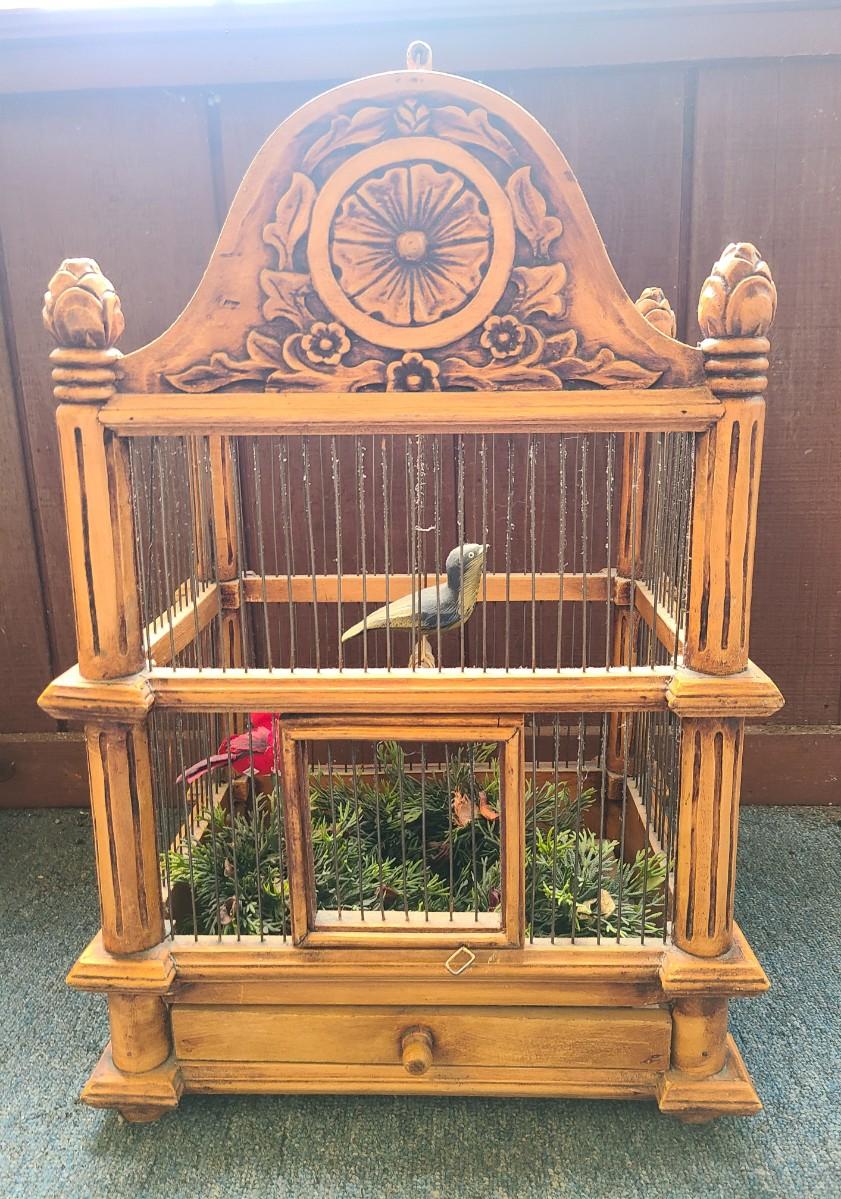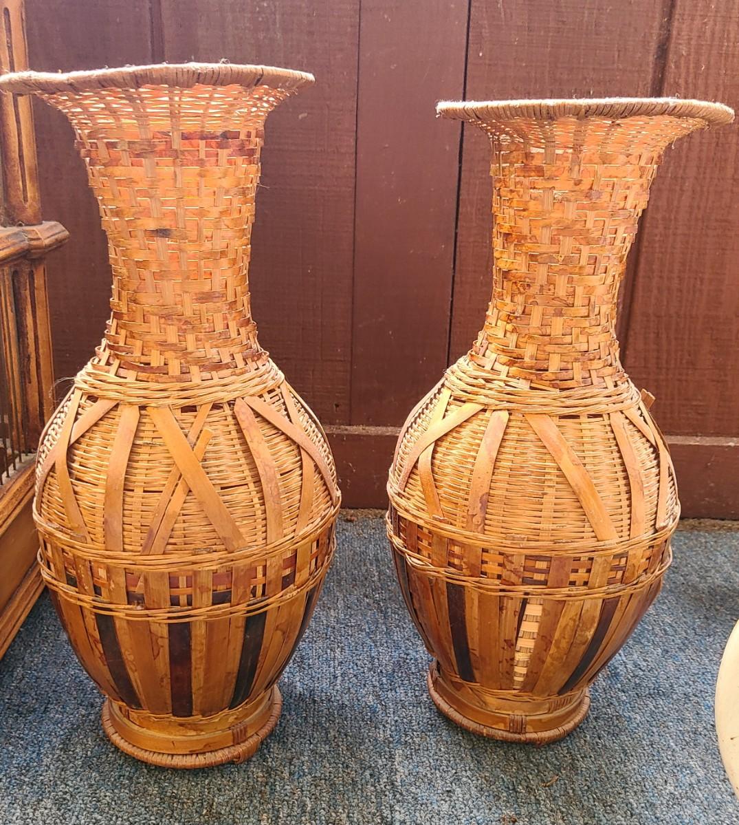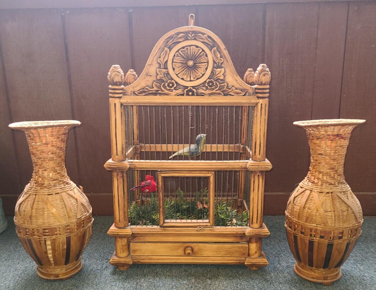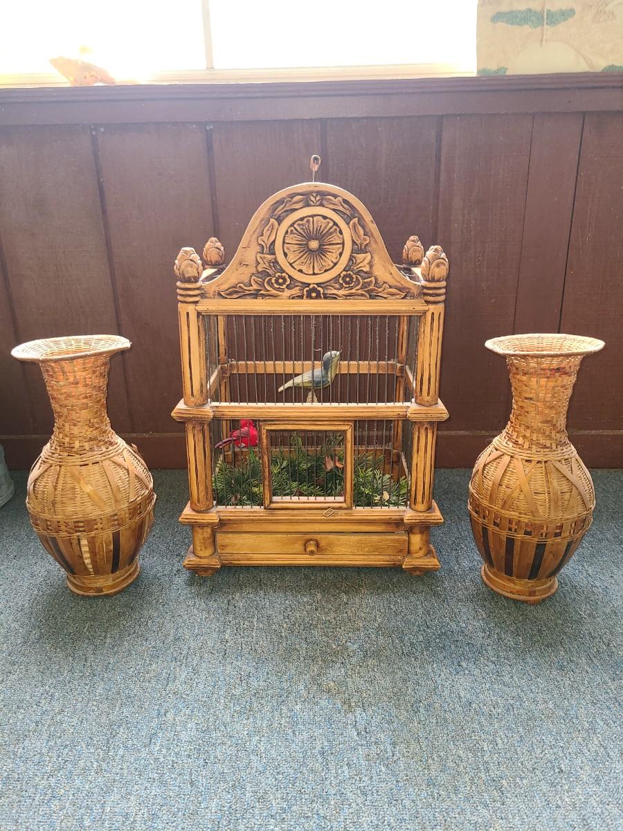 LOT 5 Wooden Bird Cage & Wicker Vases