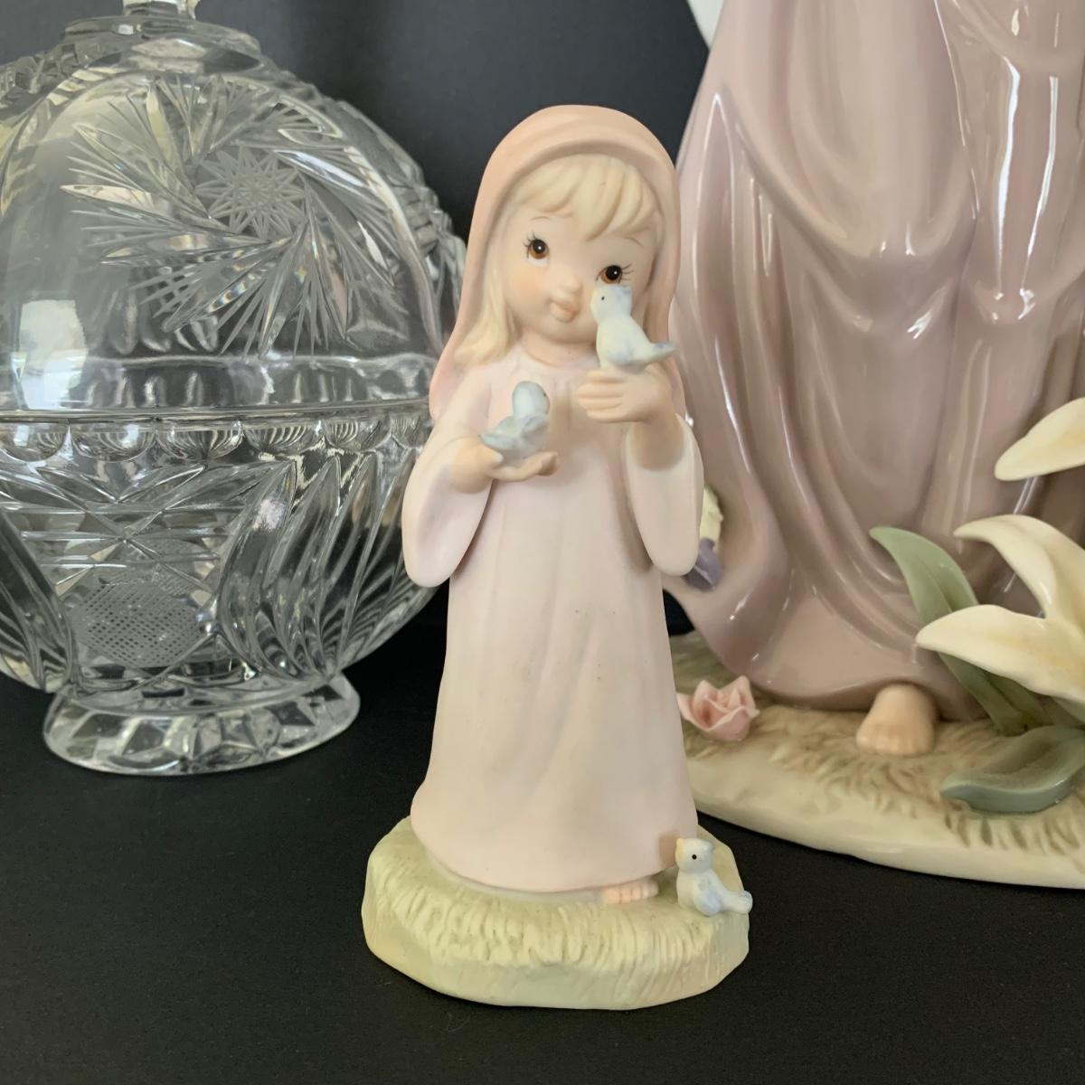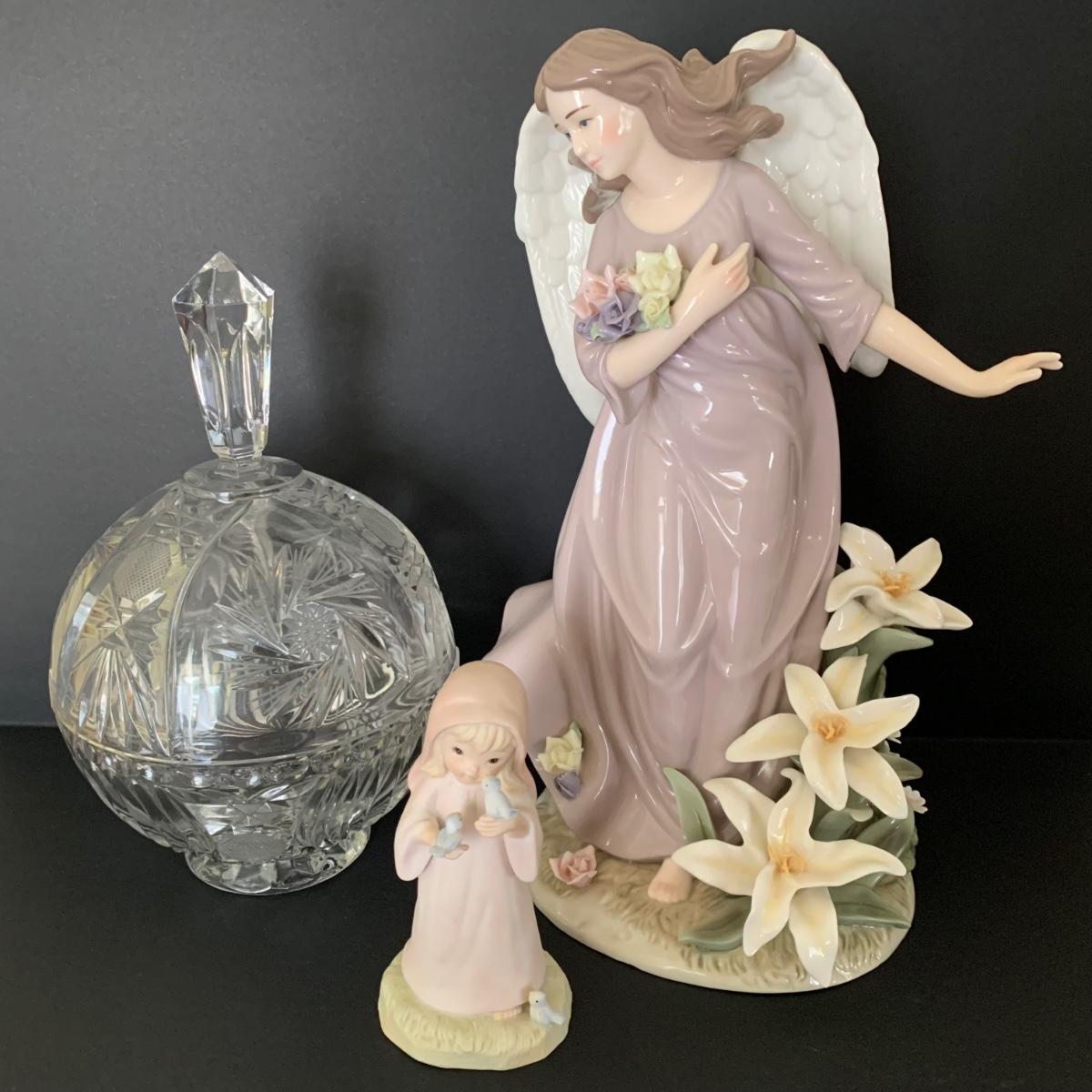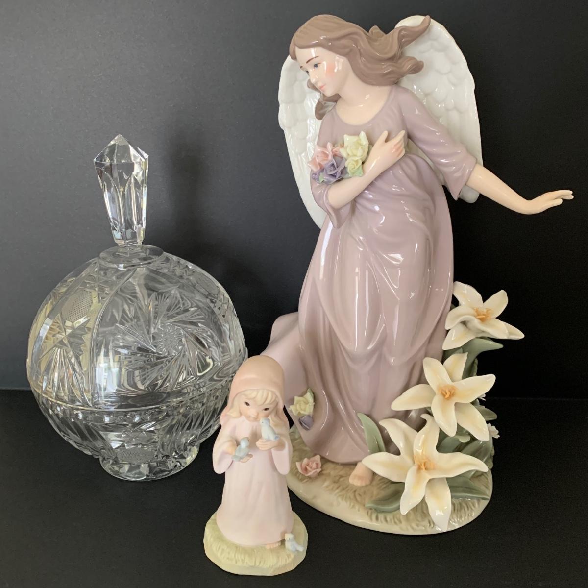 LOT 39R: Lefton Figure, Cut Crystal Candy Bowl & Handy Paint Angel