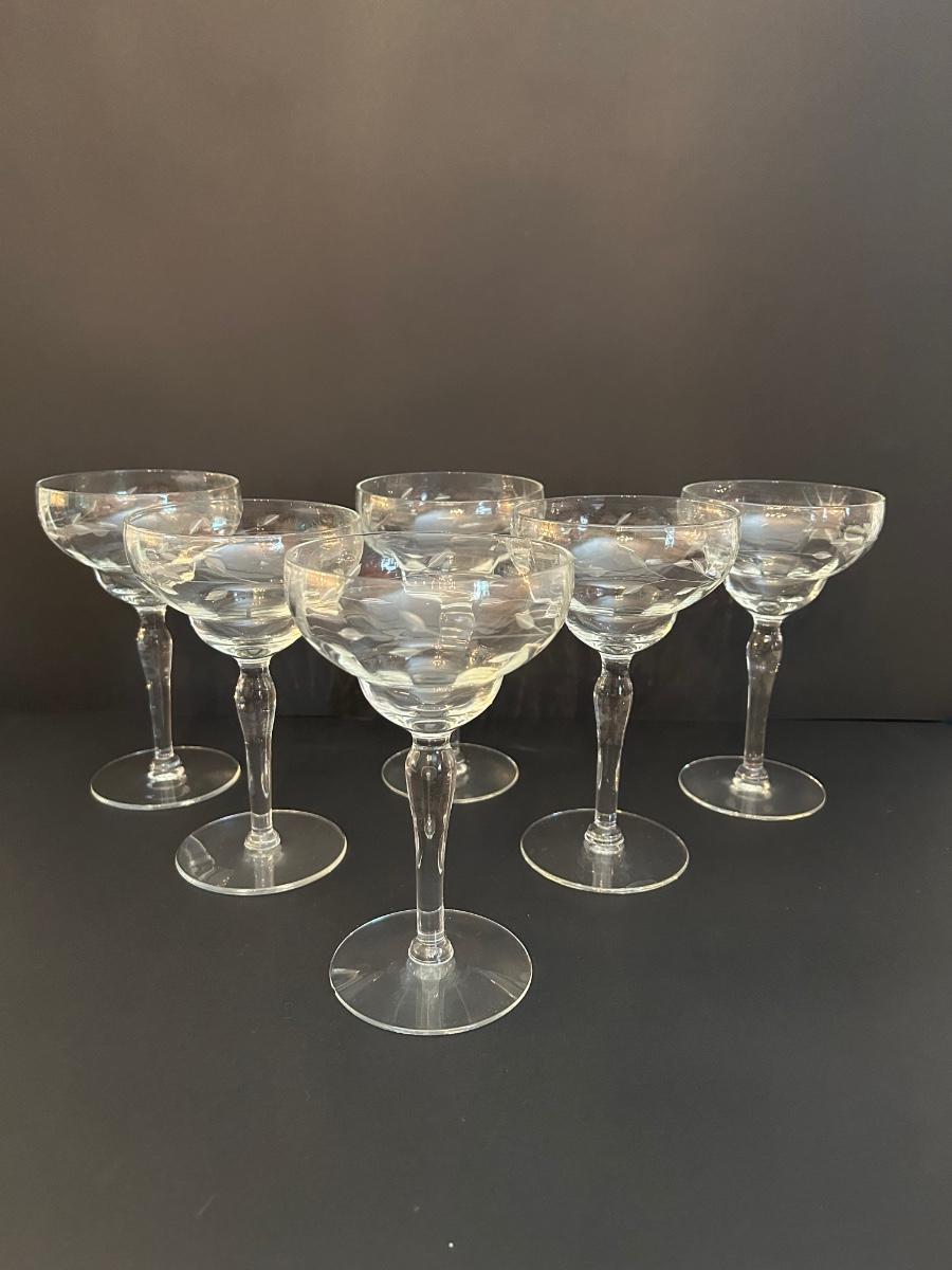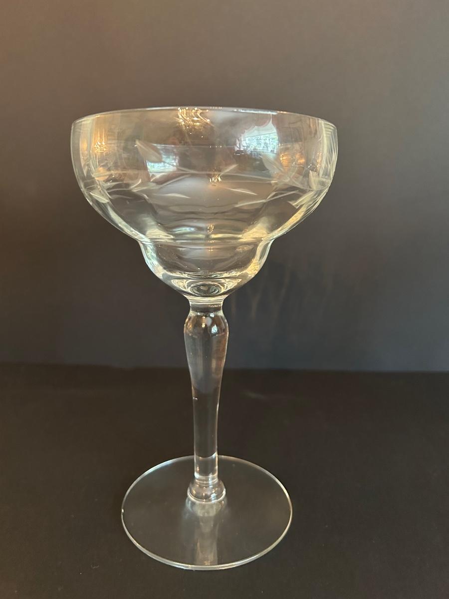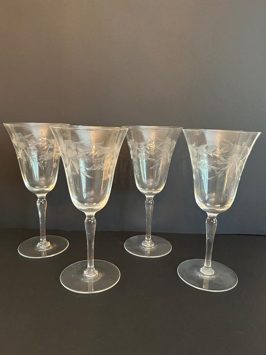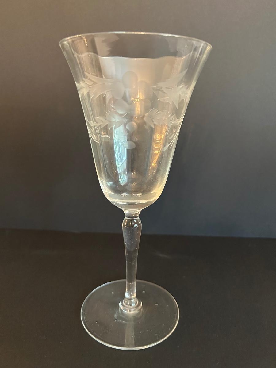 Clear etched glasses. Two sizes, set of 10.