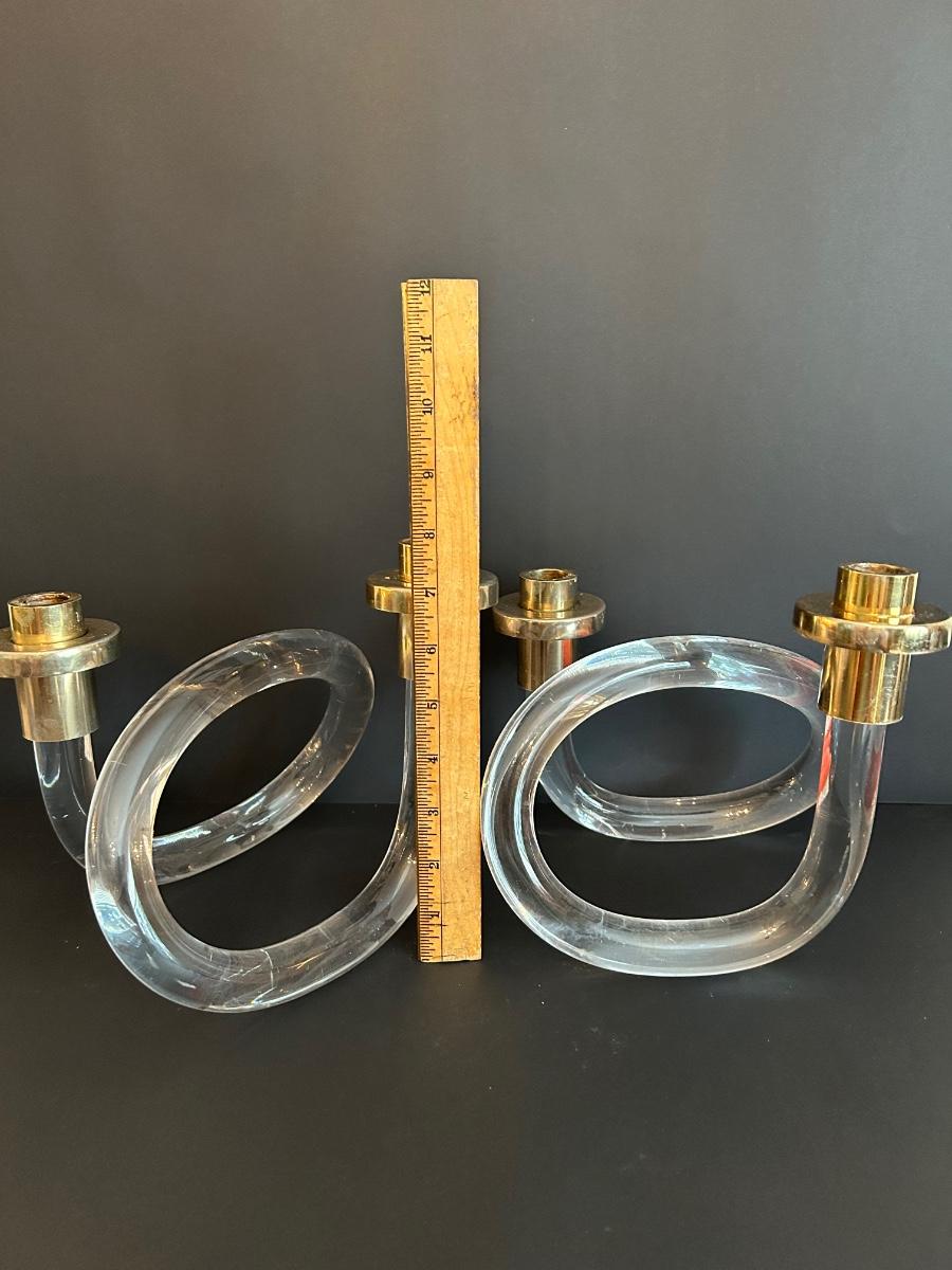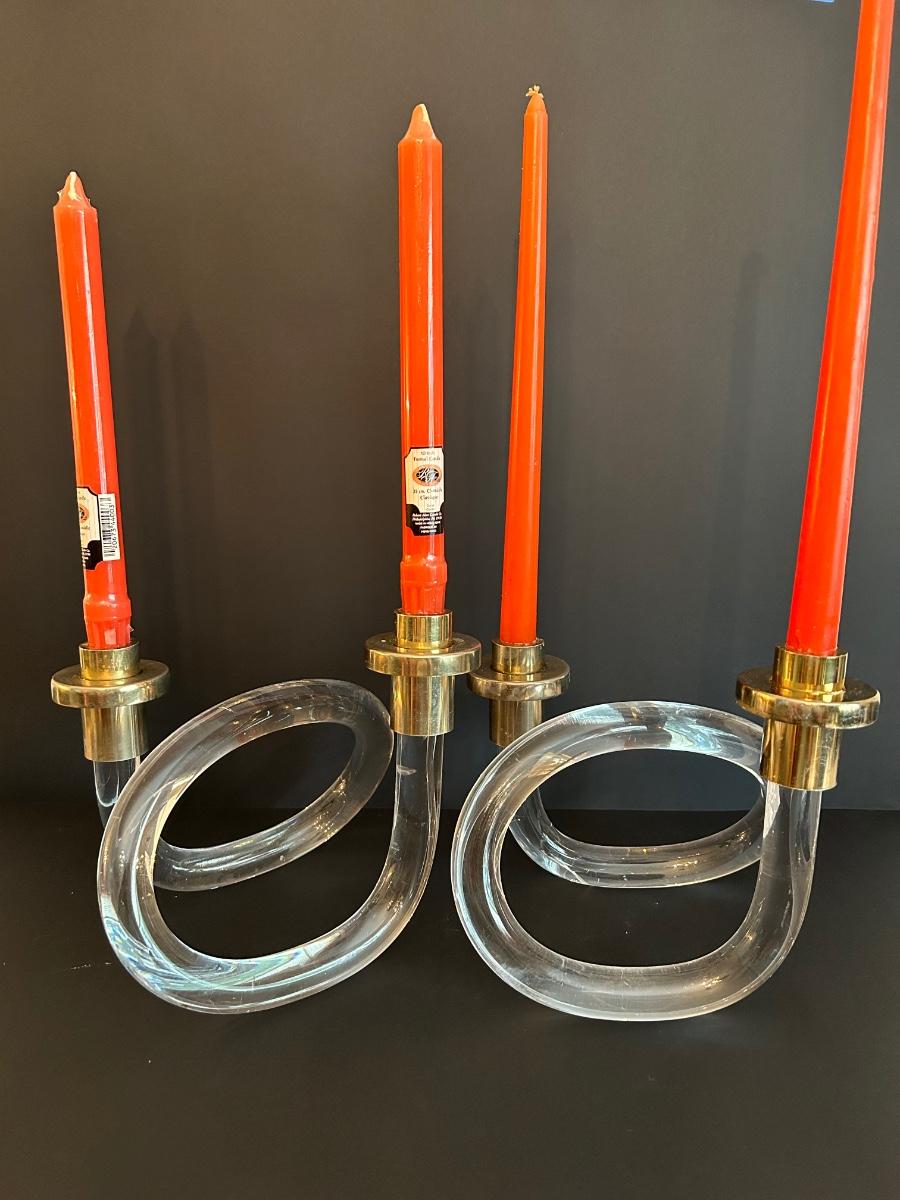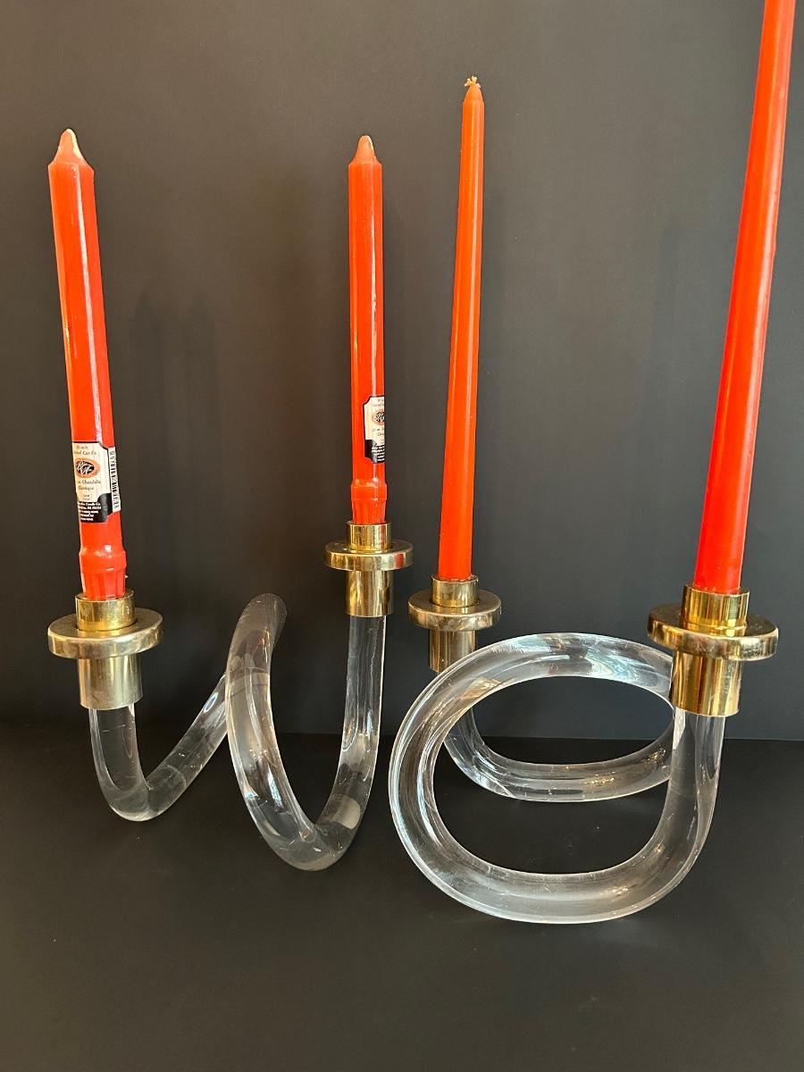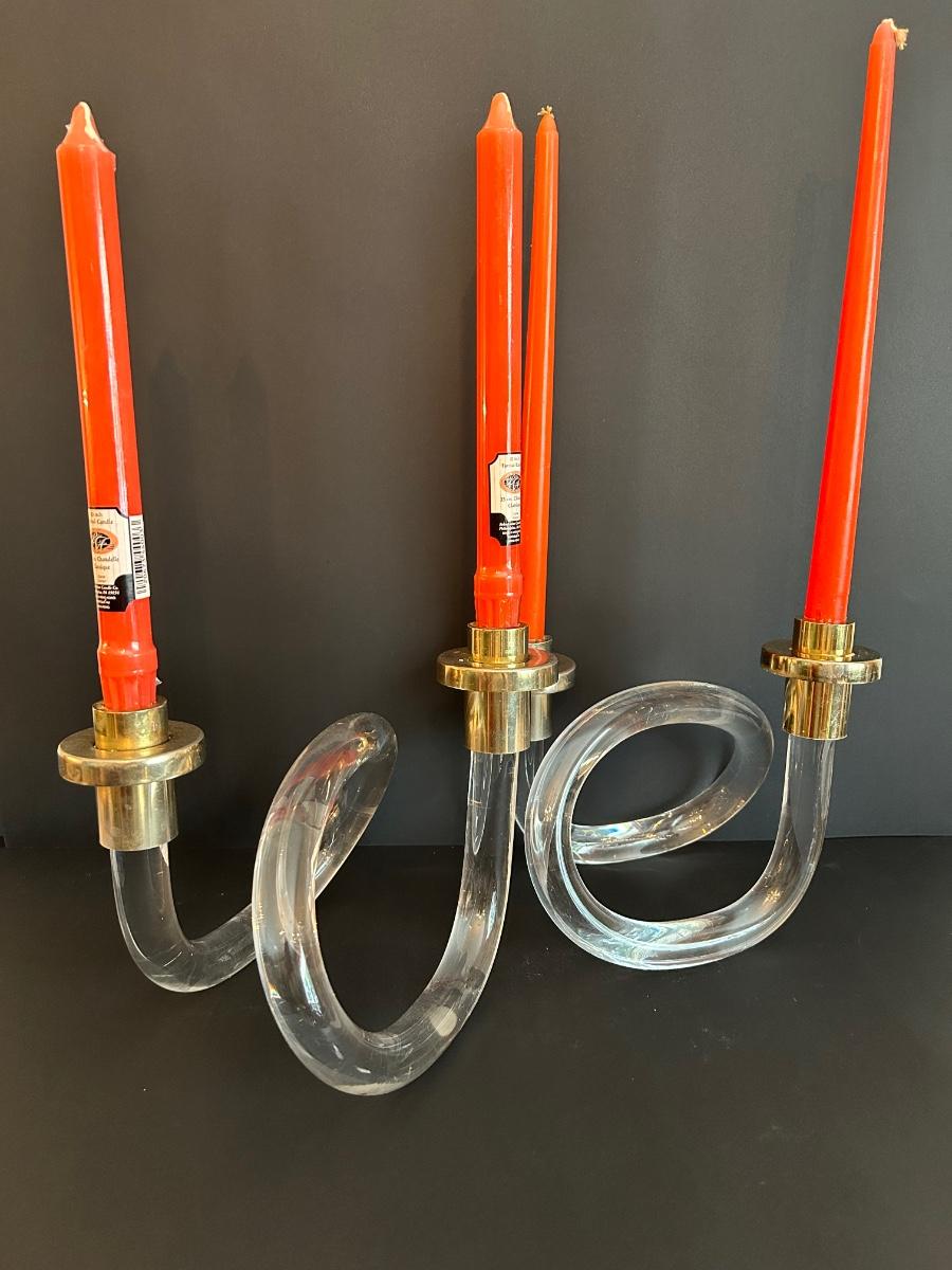 MCM Vintage Dorthy Thorpe Lucite pretzel twist double candlesticks.