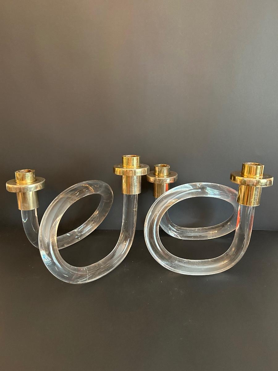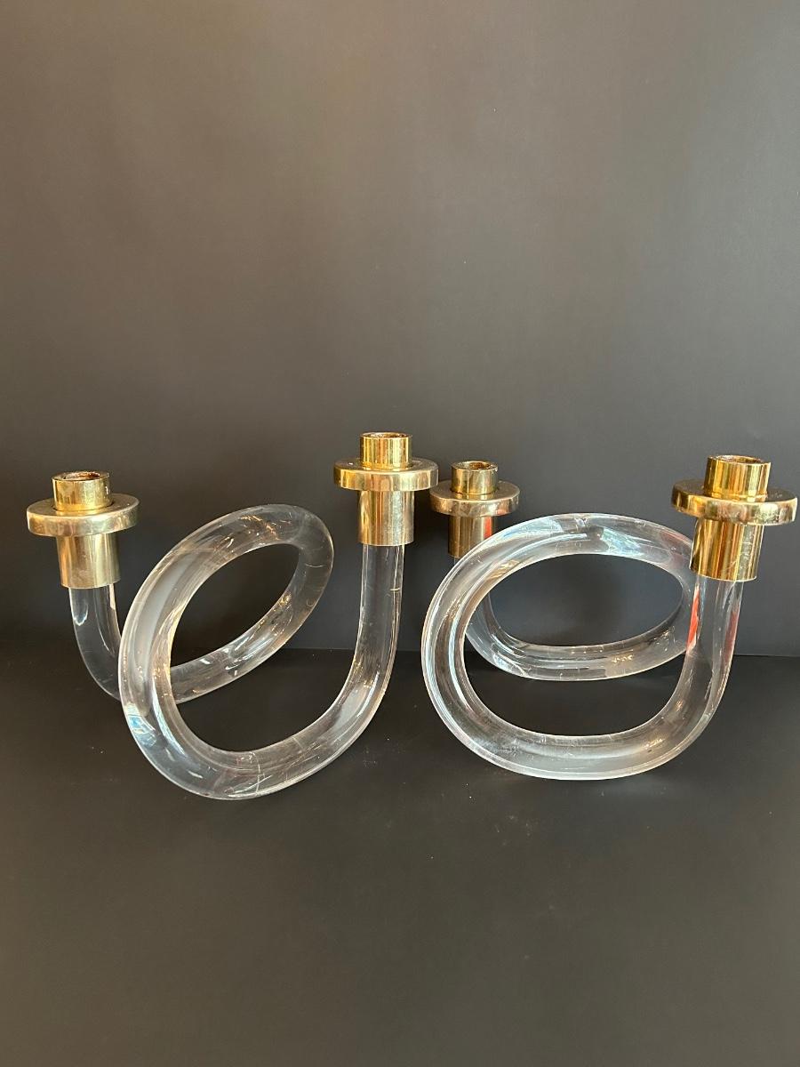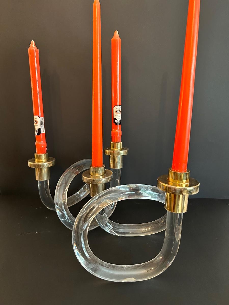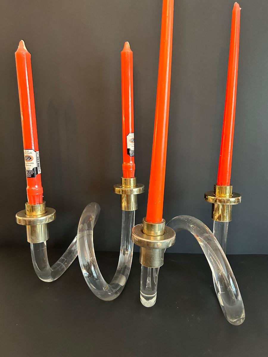 MCM Vintage Dorthy Thorpe Lucite pretzel twist double candlesticks.