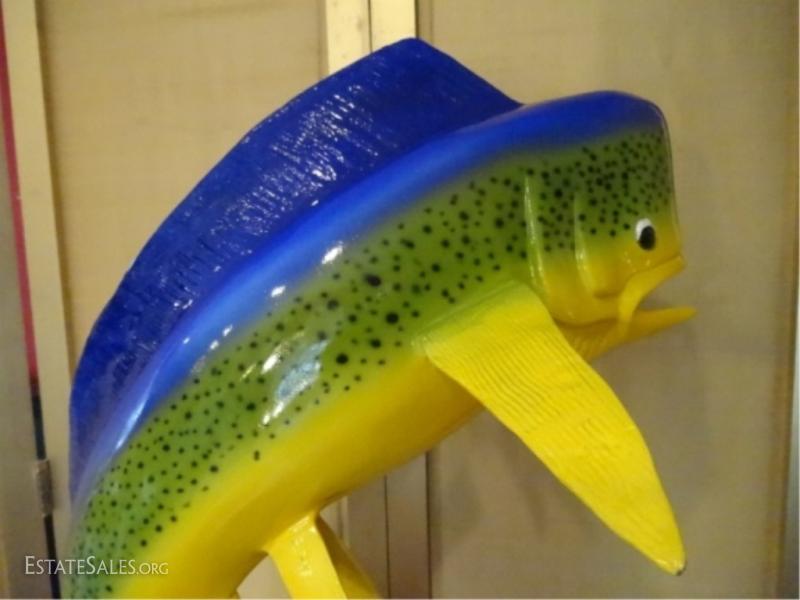 LOT 89B: LARGE PATINATED BRONZE SCULPTURE, MAHI MAHI ON MARBLE BASE