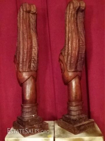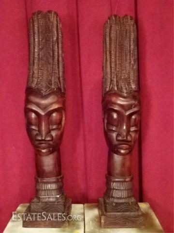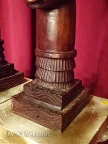 LOT 89C: PAIR AFRICAN HAND CARVED WOOD BUSTS, VERY GOOD CONDITION, 30"H X 6"W X 7"D, SKU318.03
