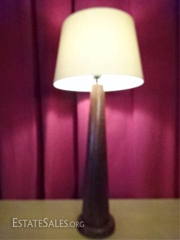 LOT 89D: TALL MID CENTURY MODERN WOOD LAMP, VERY GOOD VINTAGE CONDITION, 38"H, SKU355.62