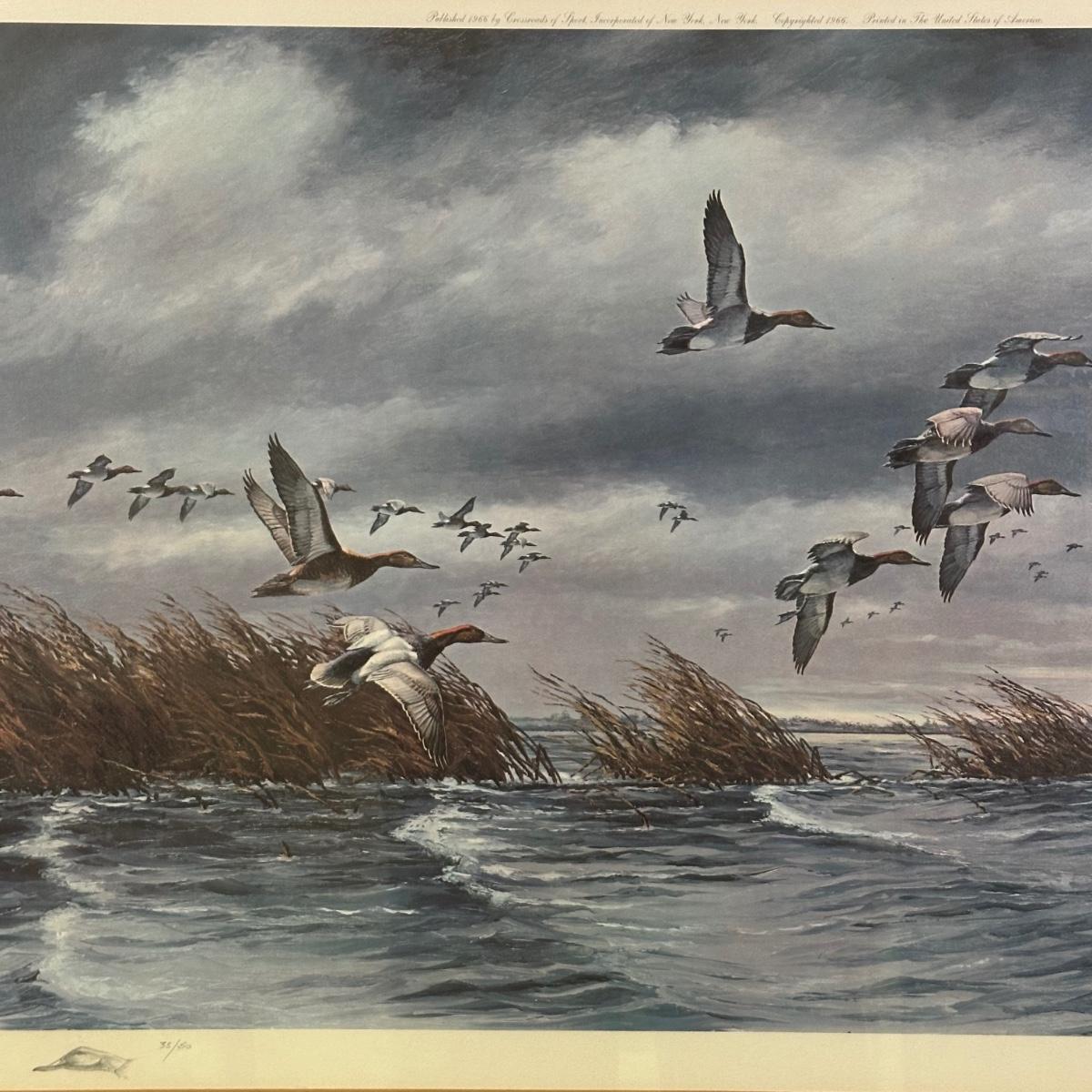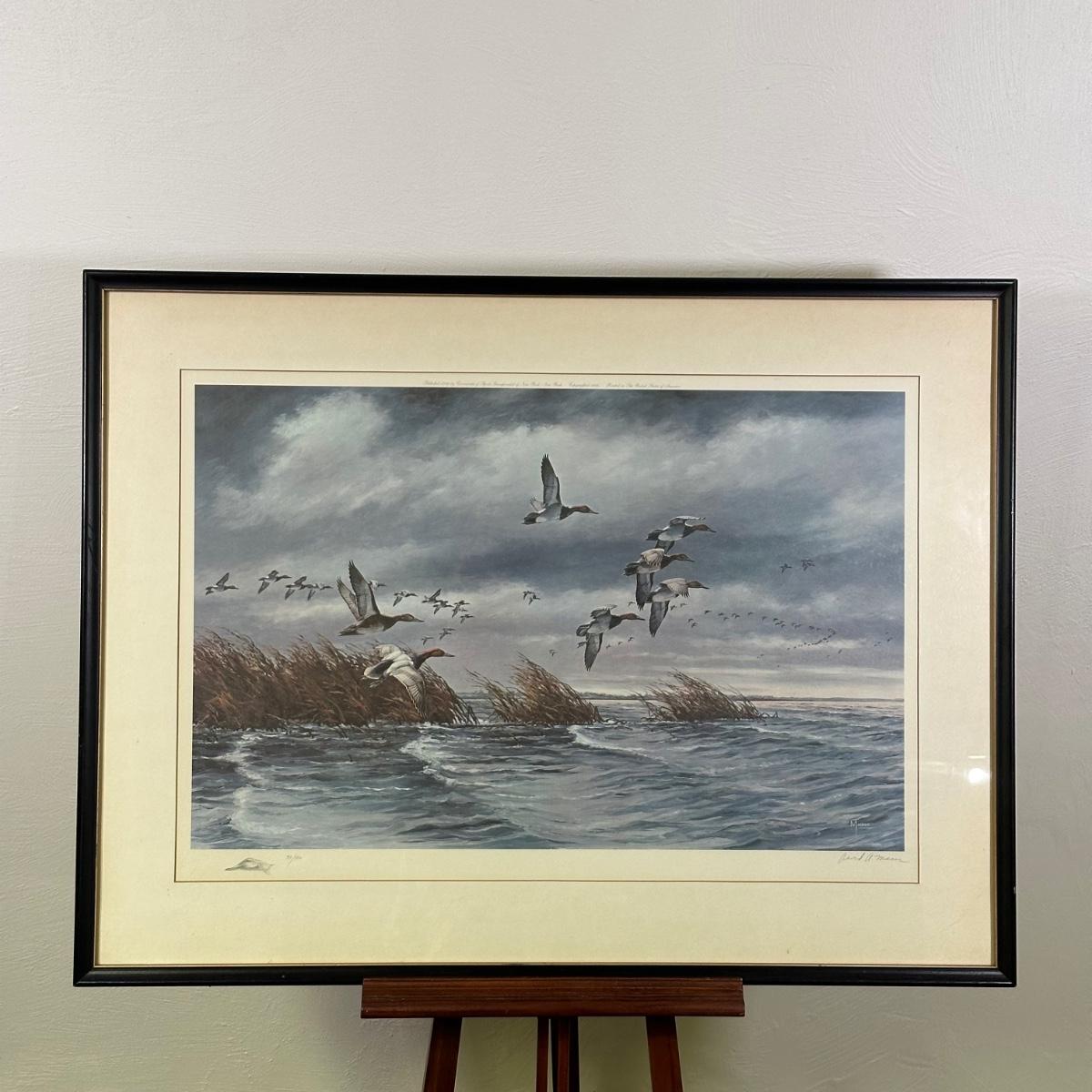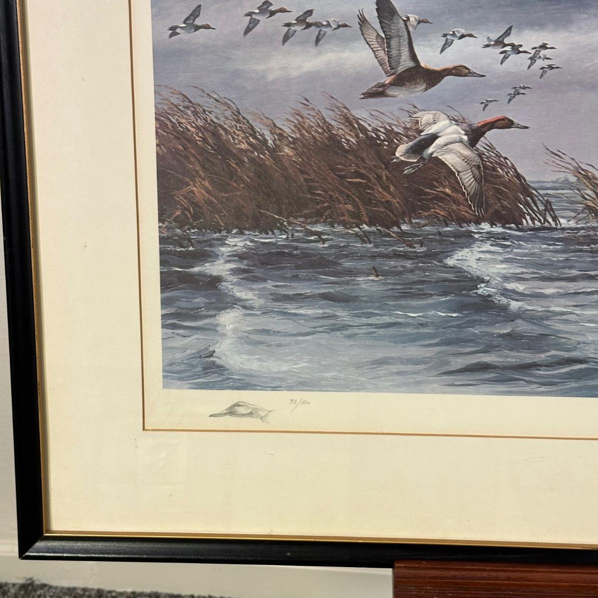 LOT 8B: Red Head Bay Ducks Signed Lithograph By David Maass Framed 35/50 1966