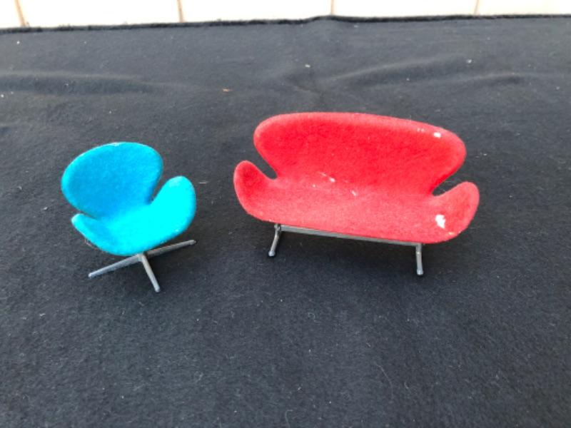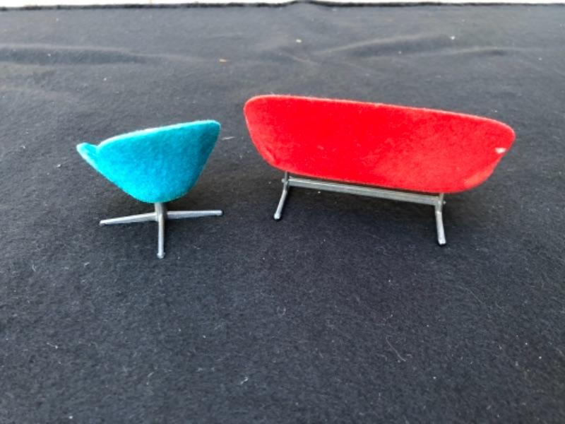 Lot 8DM. Midcentury Doll Furniture, Felt Sofa and Swivel Chair “” $50
