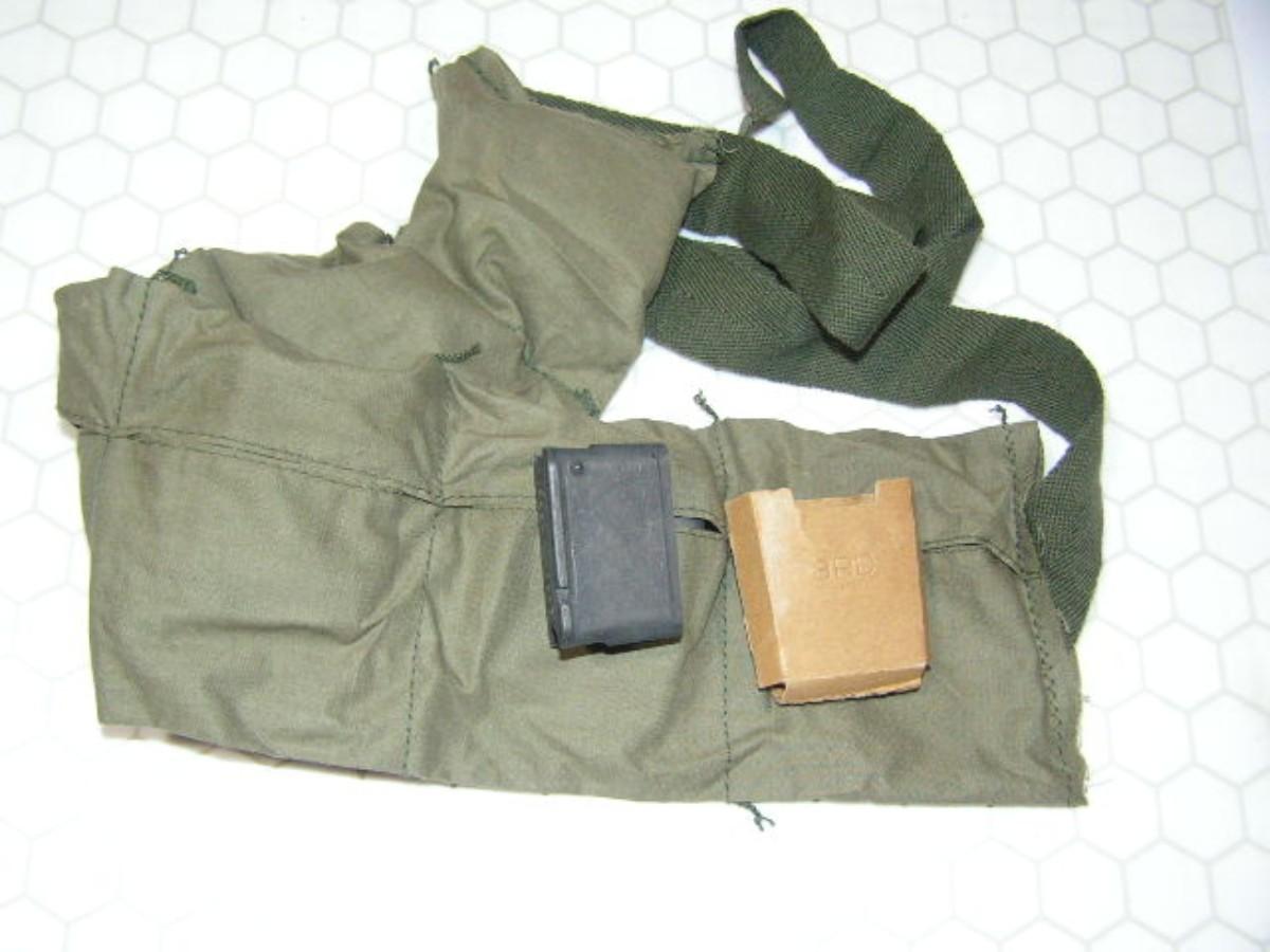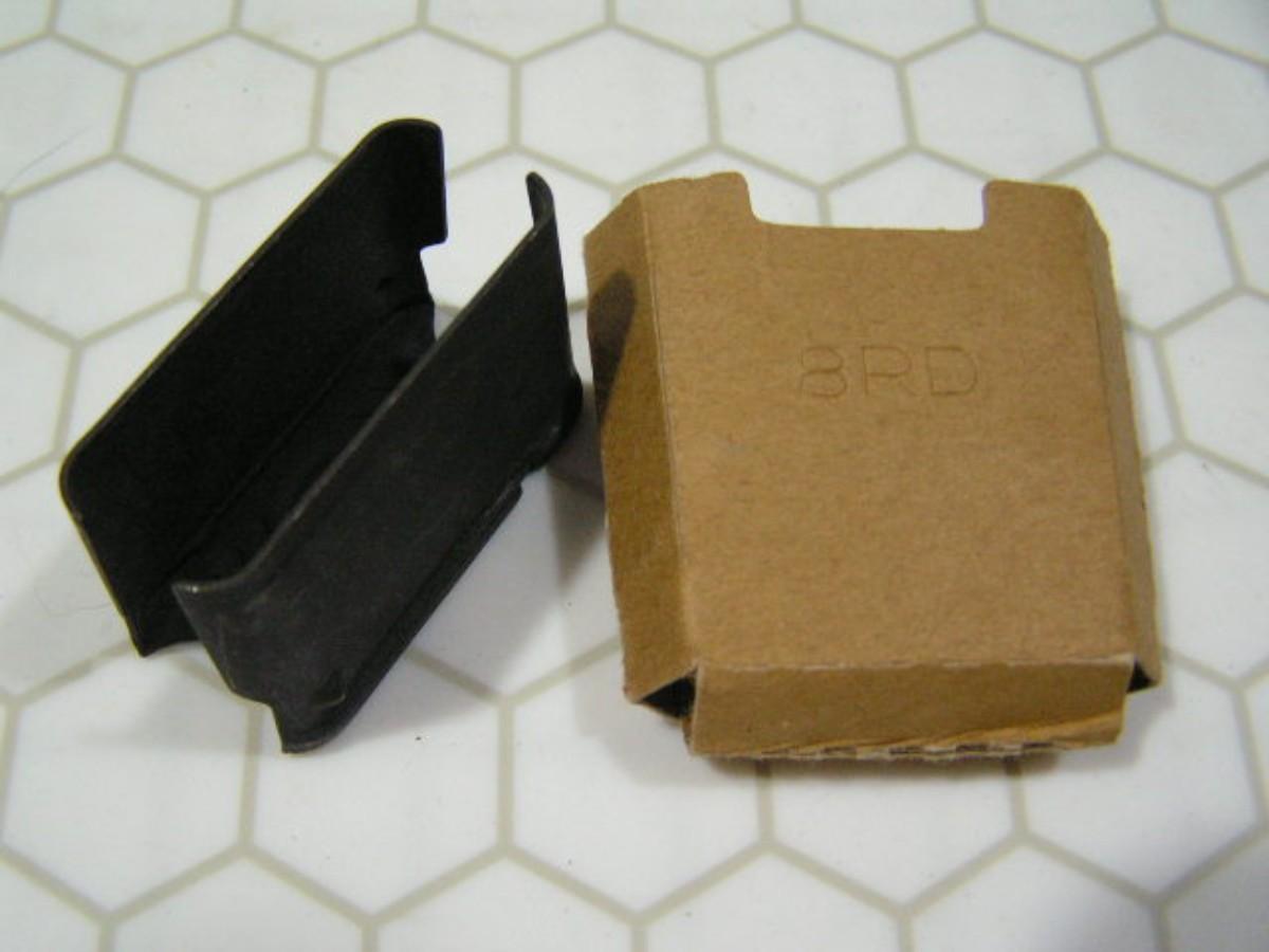 (lot 8of8) Incomplete kit! M1 Garand NOTE!: This one is missing one of the paper nose guards! 6 en bloc (empty) clips w/5 paper nose guards and 1 bandoleer. From 70s/80s Civilian Marksmanship Program (CMP) government surplus ammo. Excellent used condition.