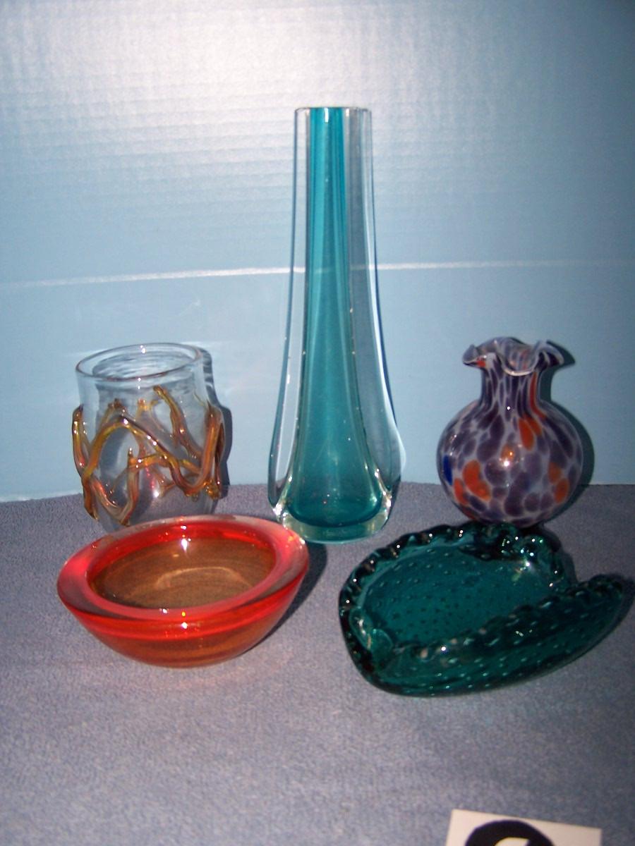 LOT 9 GREAT VINTAGE MCM COLORFUL ART GLASS