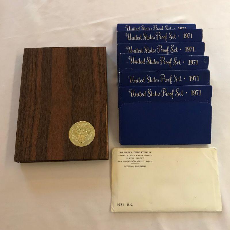 One 1971 Mint Set, One 1971 Brown Ike Proof, Six 1971 Proof Sets